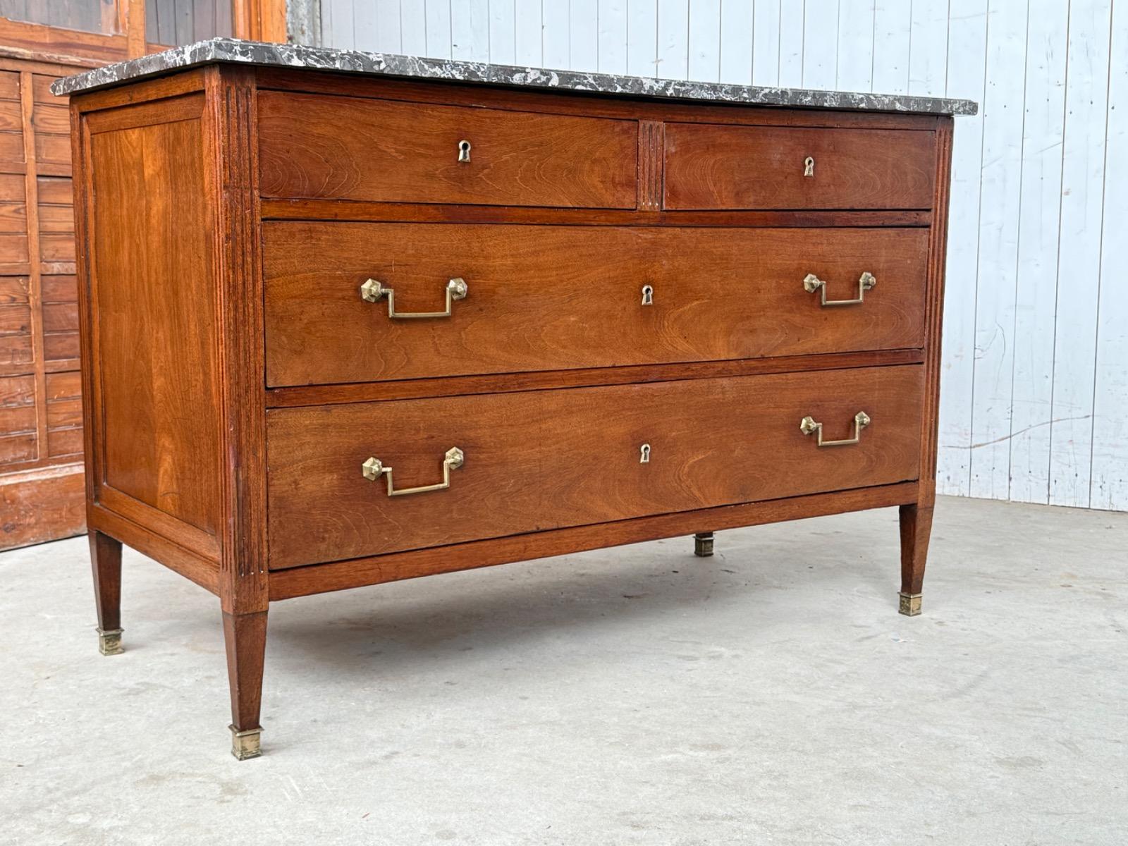 Louis XVI / Directoire noten 2 over 2 commode, ladekast. messing beslag en verfraaiingen.