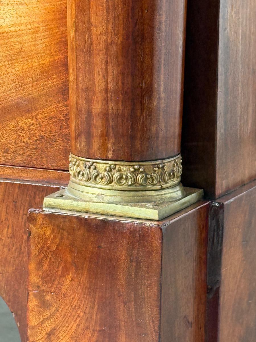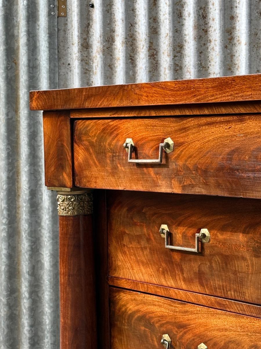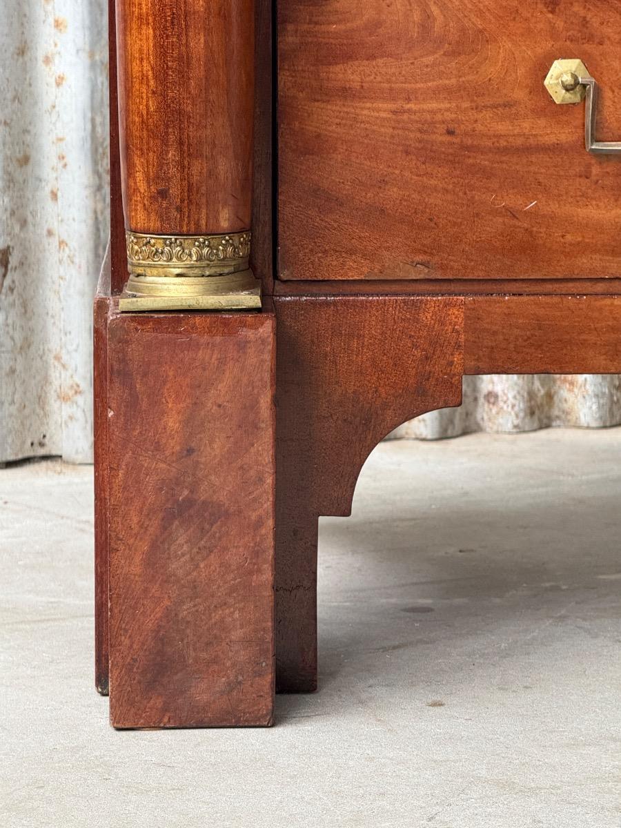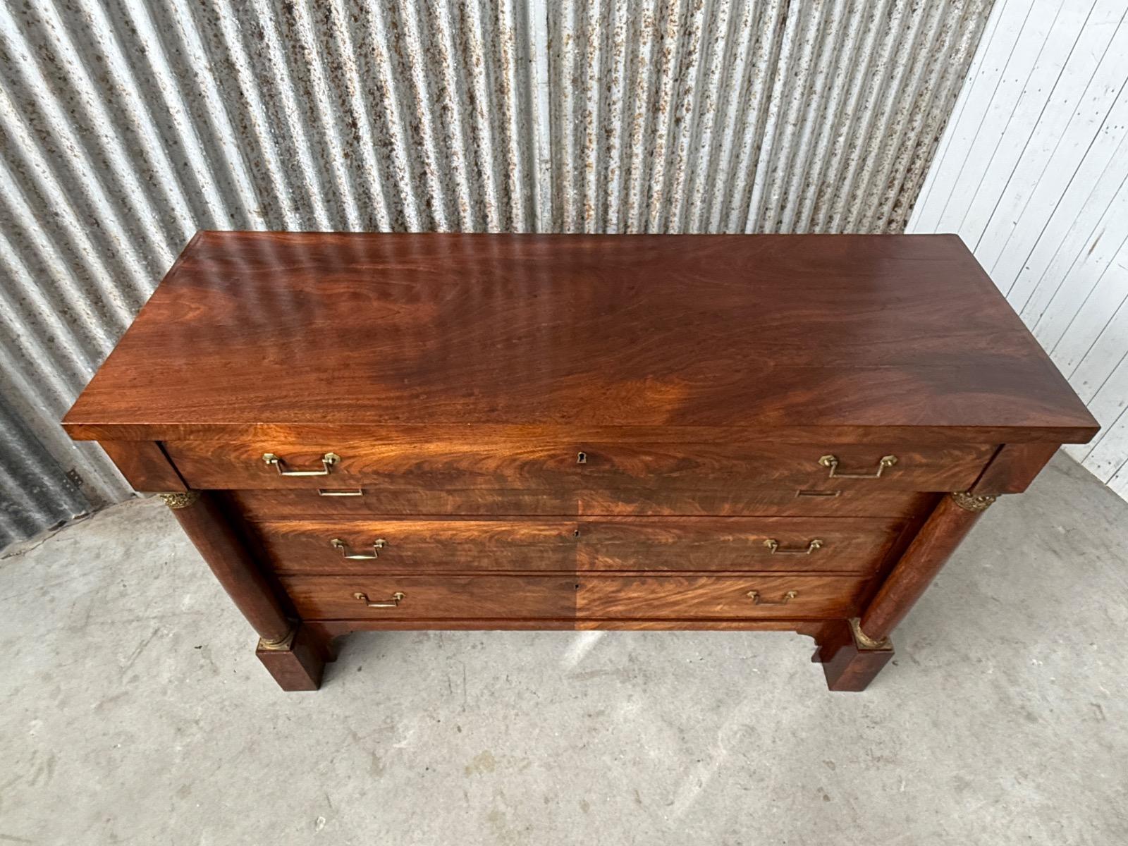 Mahonie Directoire 4 laads ladekast of commode met (al) volle pilaren, gegoten messing beslag.