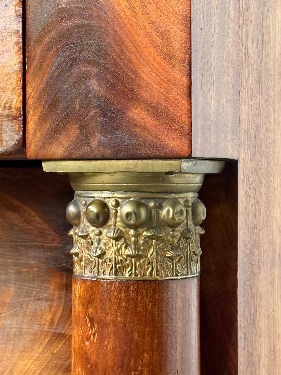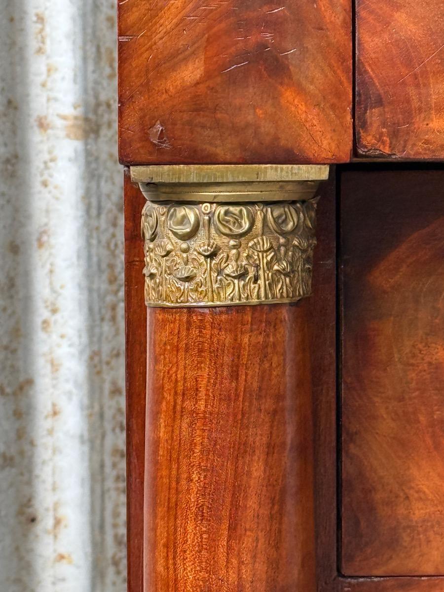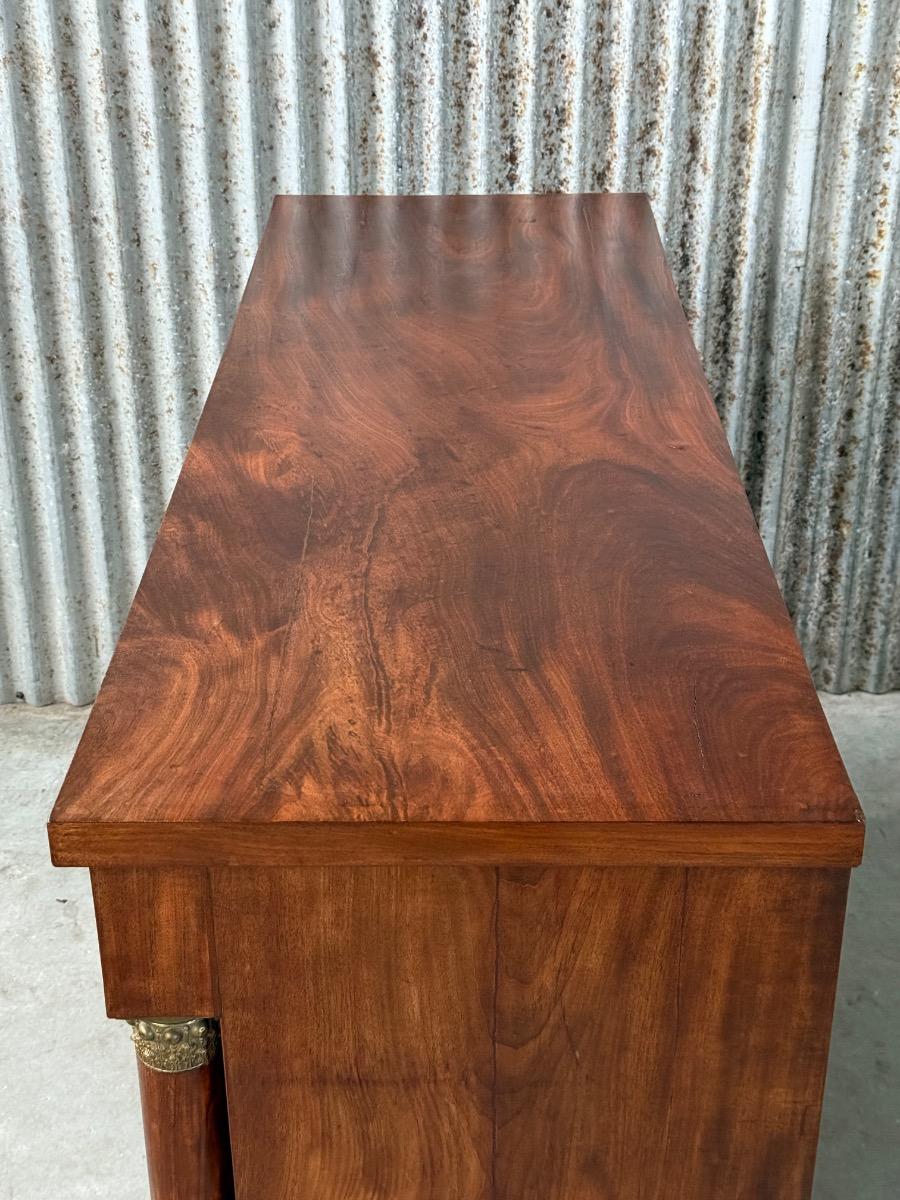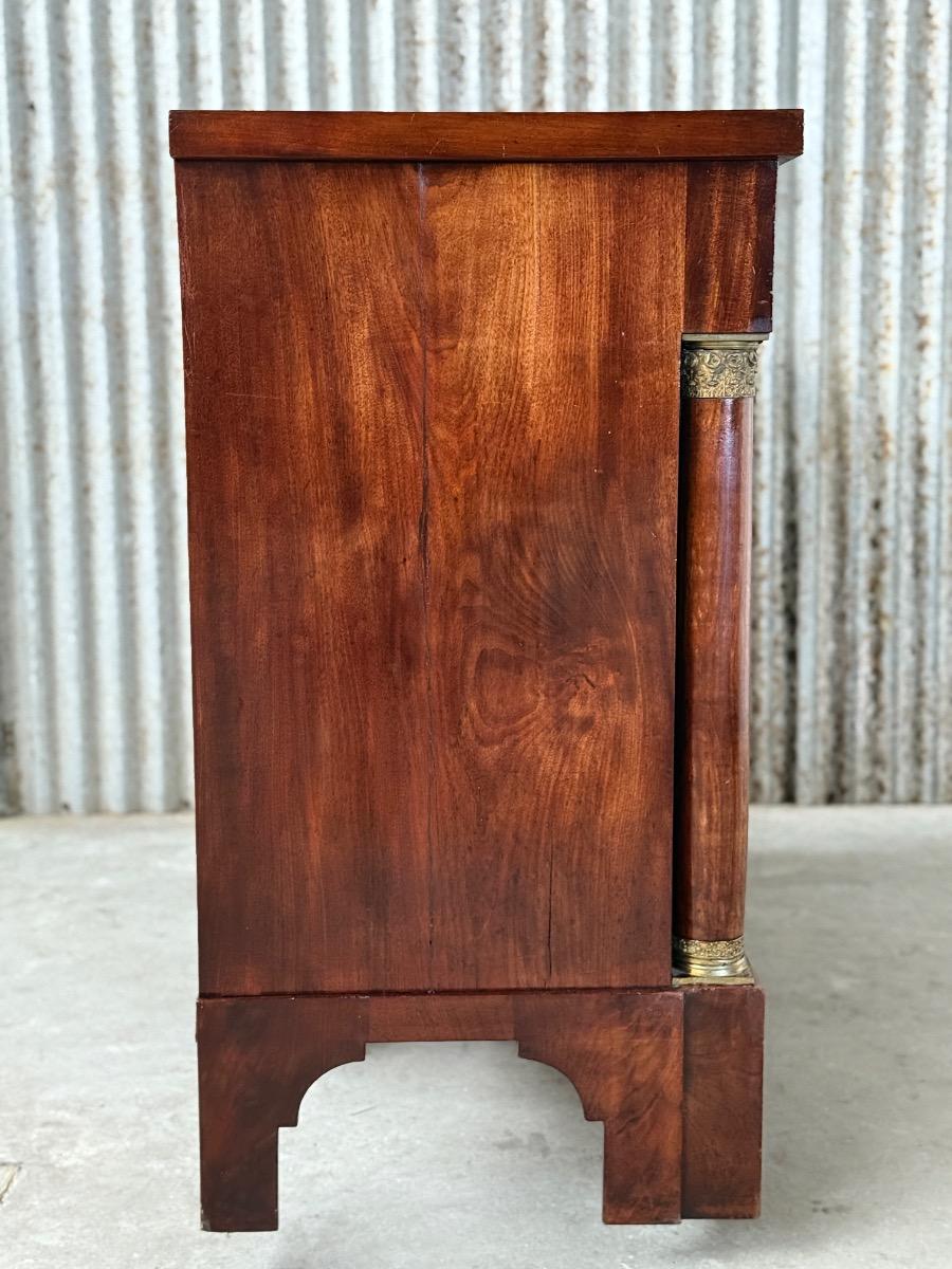 Mahonie Directoire 4 laads ladekast of commode met (al) volle pilaren, gegoten messing beslag.