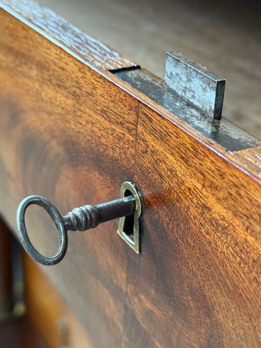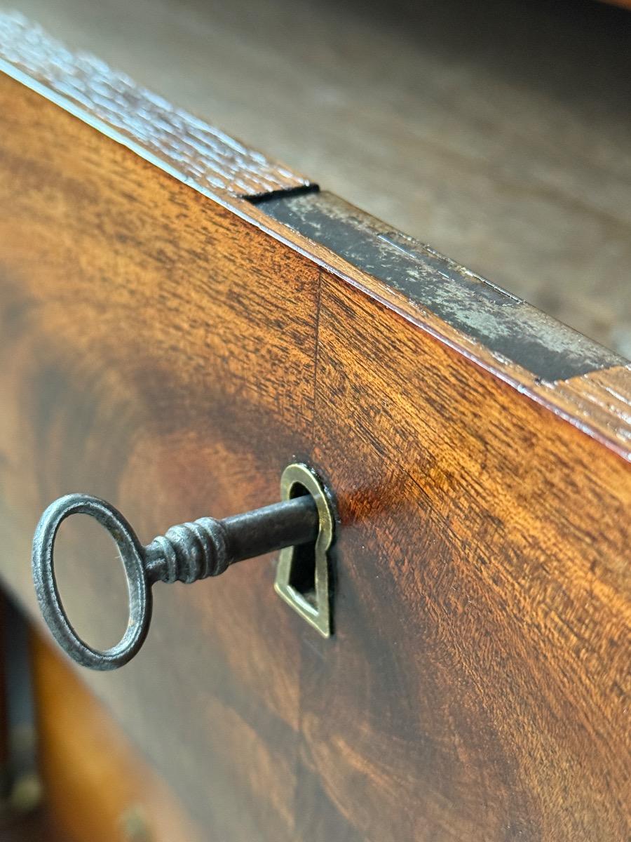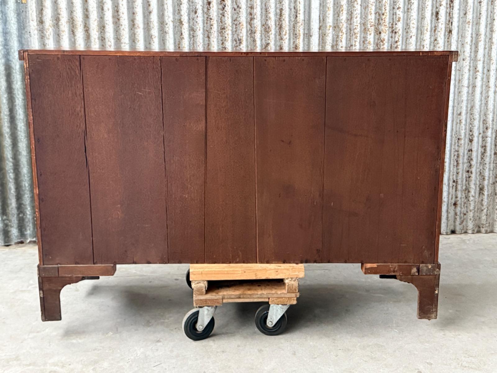 Cuba bloem mahonie gefineerd op eiken. Vol eiken rug en binnenladen. In aardige en direct te gebruiken staat. Maar kan wel een restauratie gebruiken.