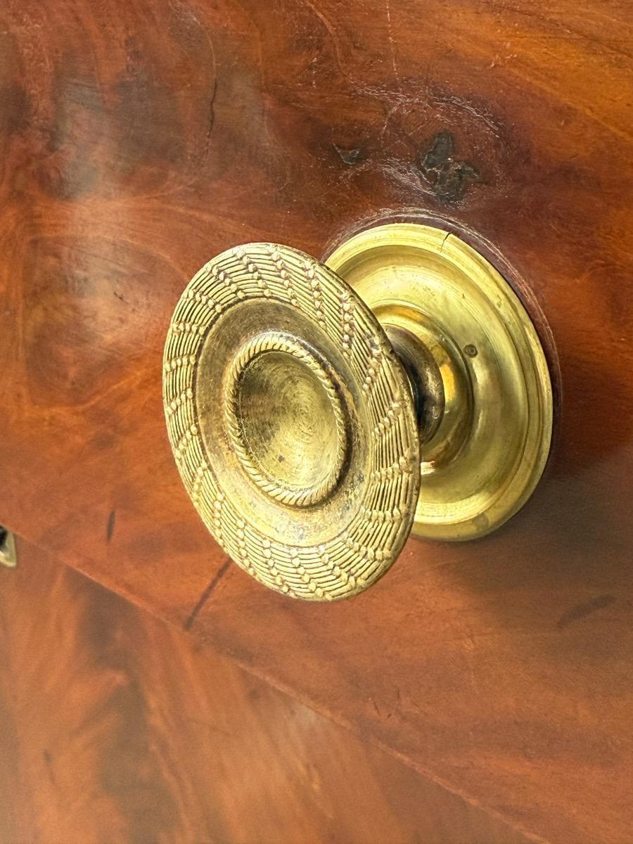 Het interieur vol met laden, oorspronkelijk vuur vergulde lade trekkertjes. De onderkast, achter de twee deuren een eiken plank.