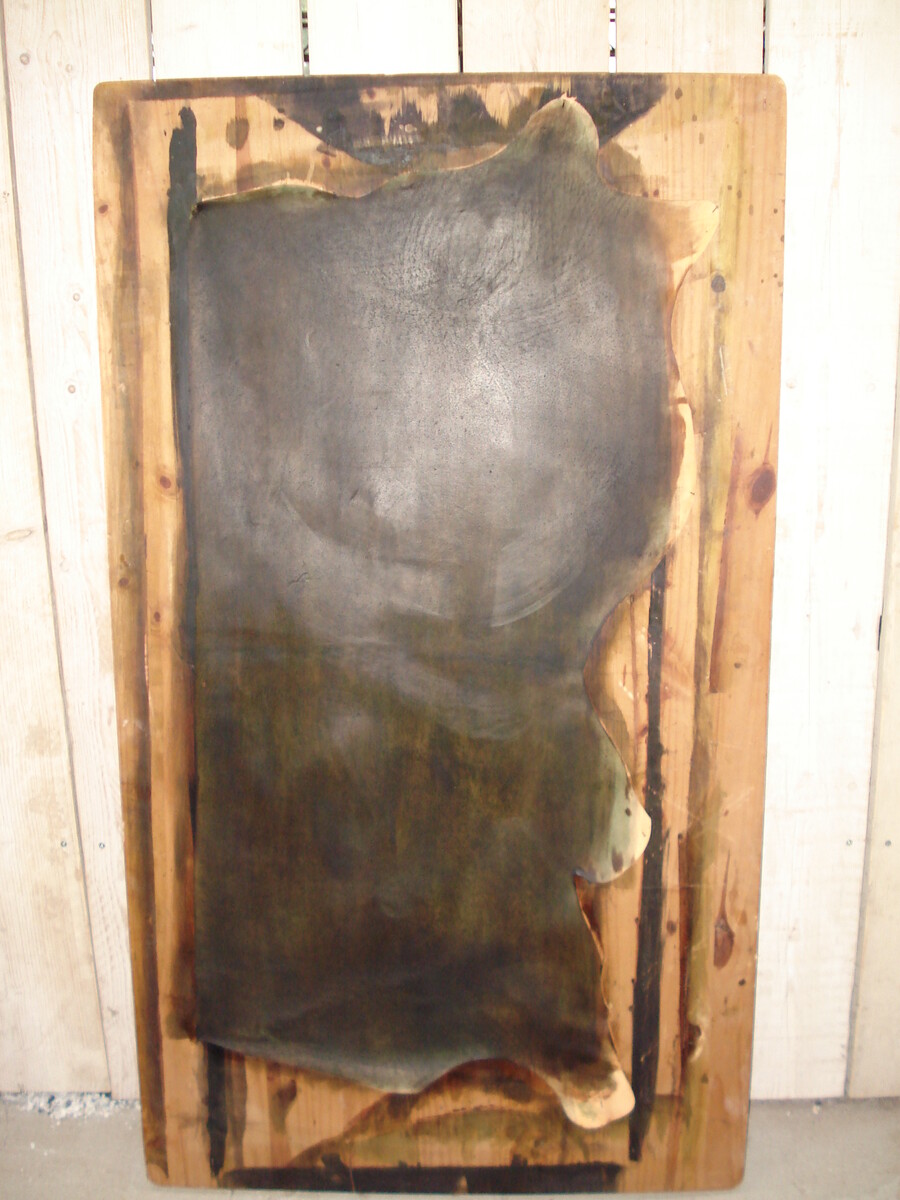 Het enige dat nog mist is de "patine". De afwerking, die het leder beschermd en net het laatste effect geeft is de toplaag.
