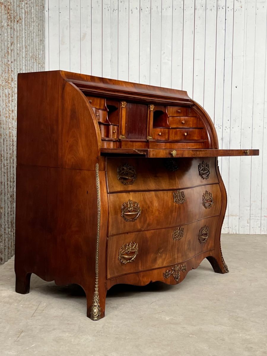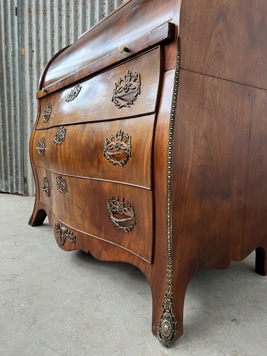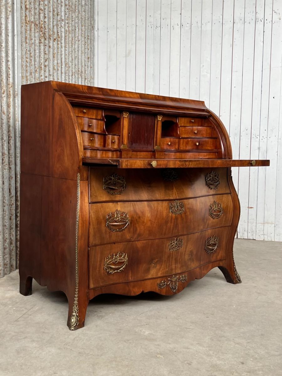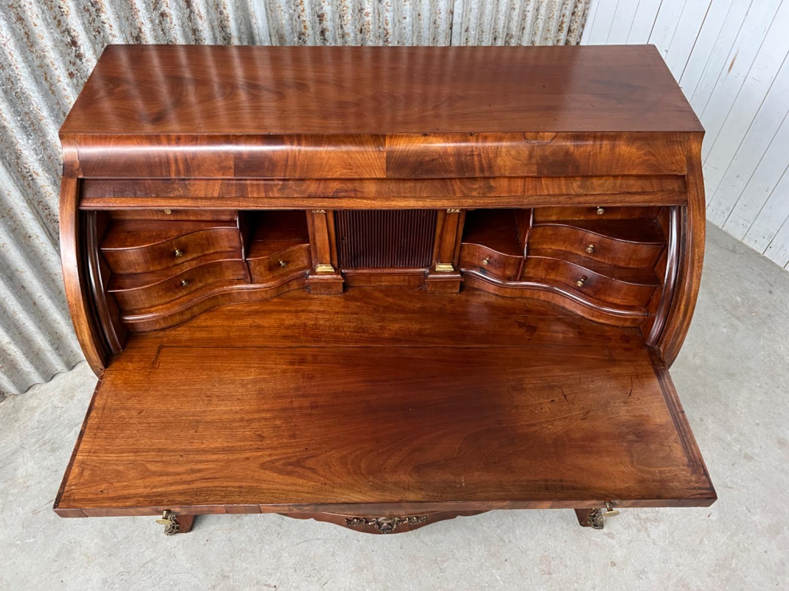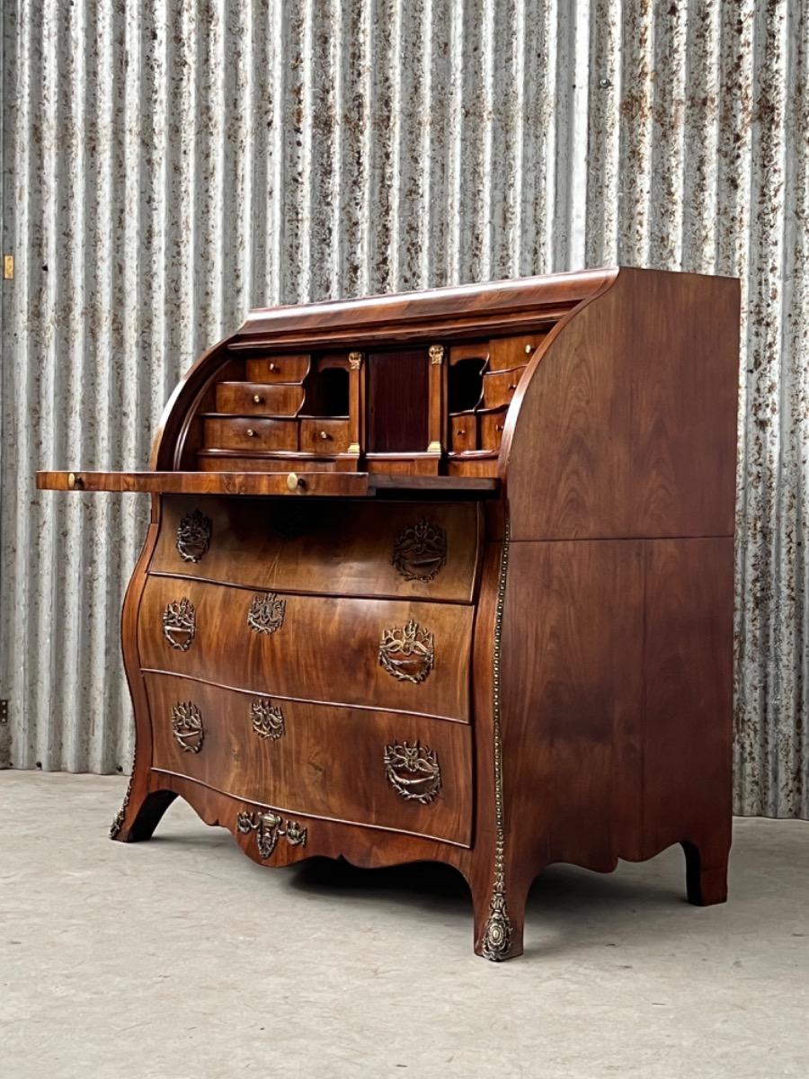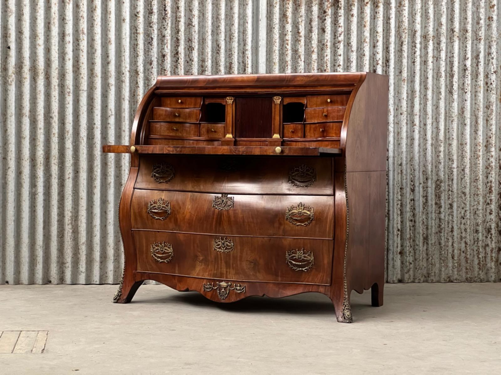 Transition gebombeerd cilinder bureau, fraai boek bloemmahonie gefineerd.