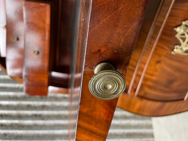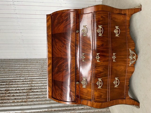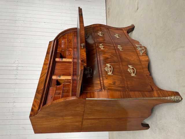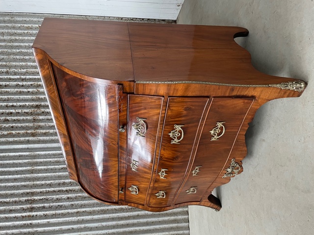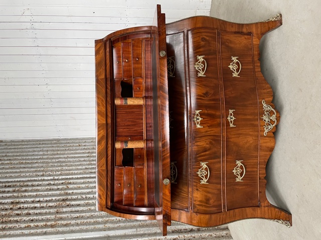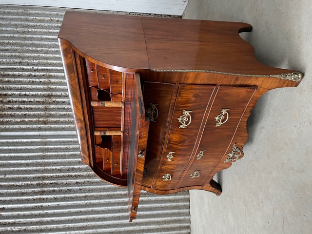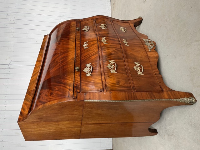 Transition gebombeerd cilinder bureau, fraai boek bloemmahonie gefineerd.