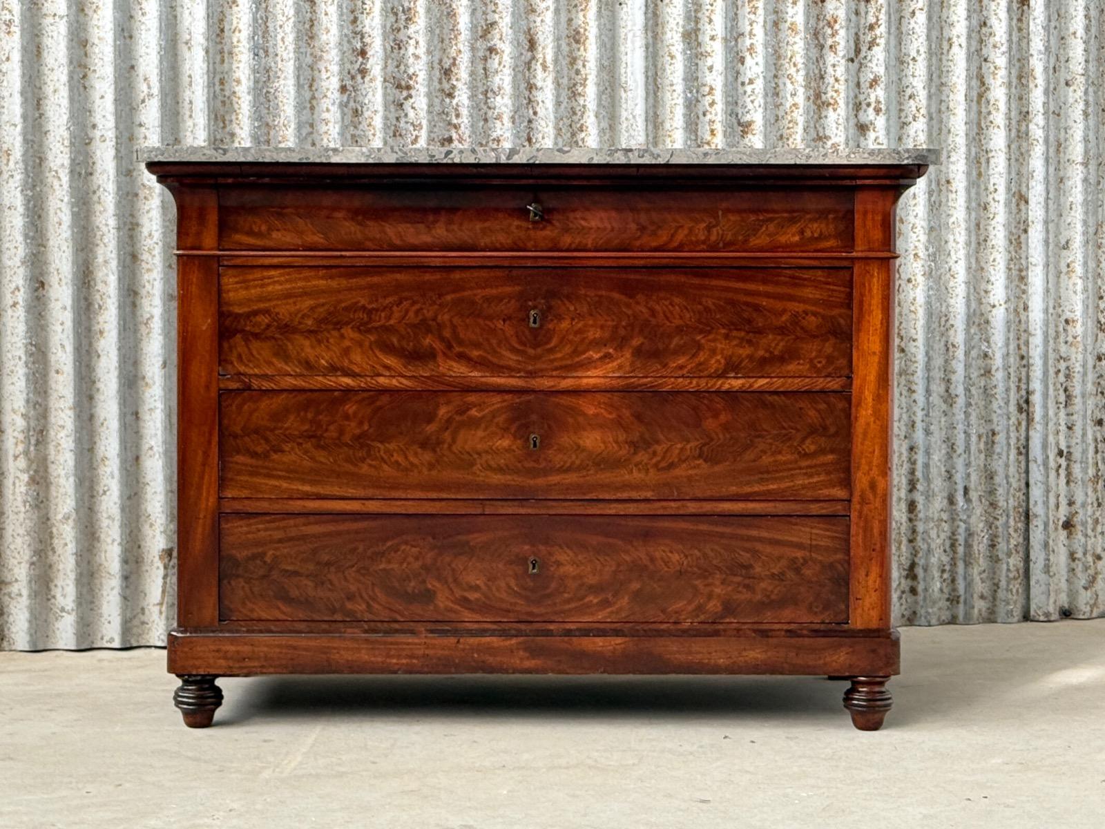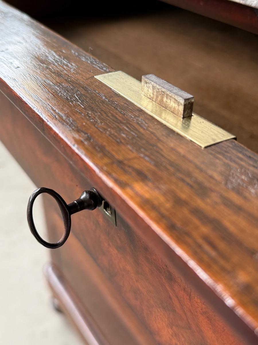 Commode met 4 laden waarvan 1 lade in de kap. Midden 19e eeuw met messing entré beslag, alle (oorspronkelijke) sloten aanwezig en werkend met een sleutel.
