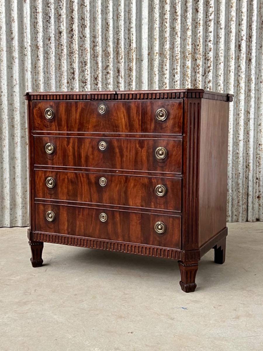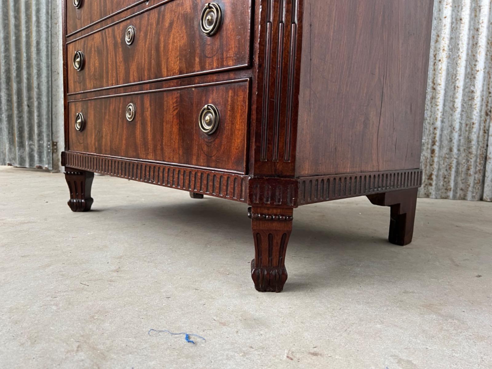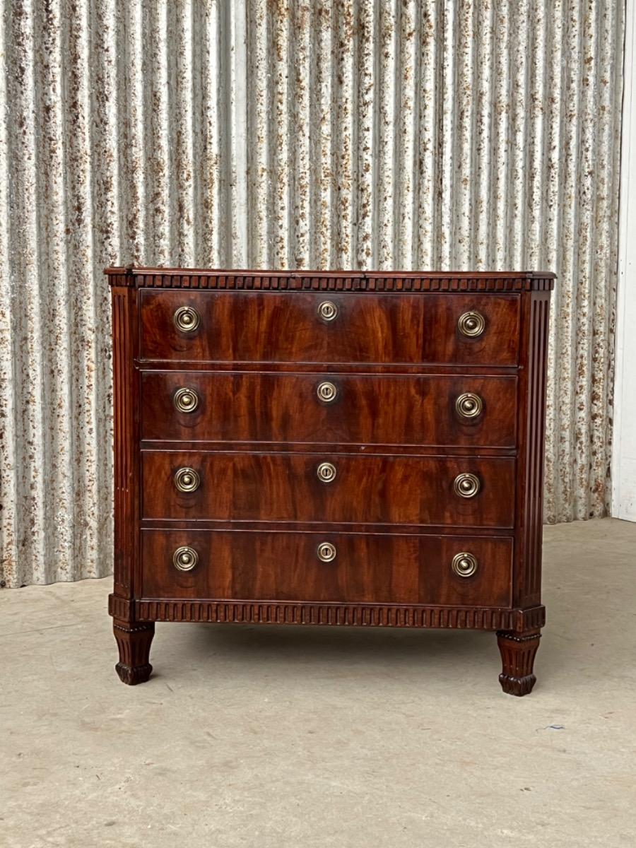 Cuba mahonie gefineerde louis XVI ladekast of vier laads commode.