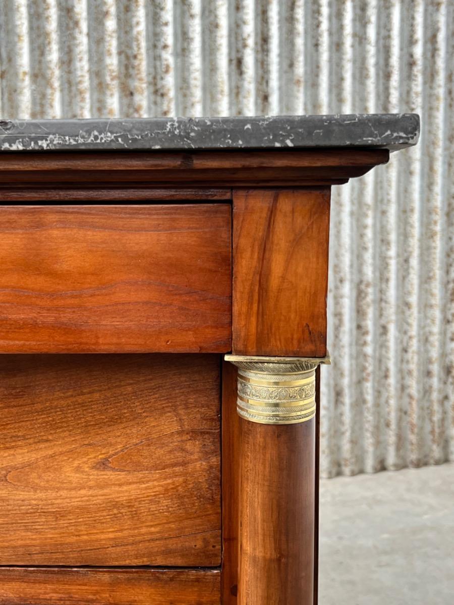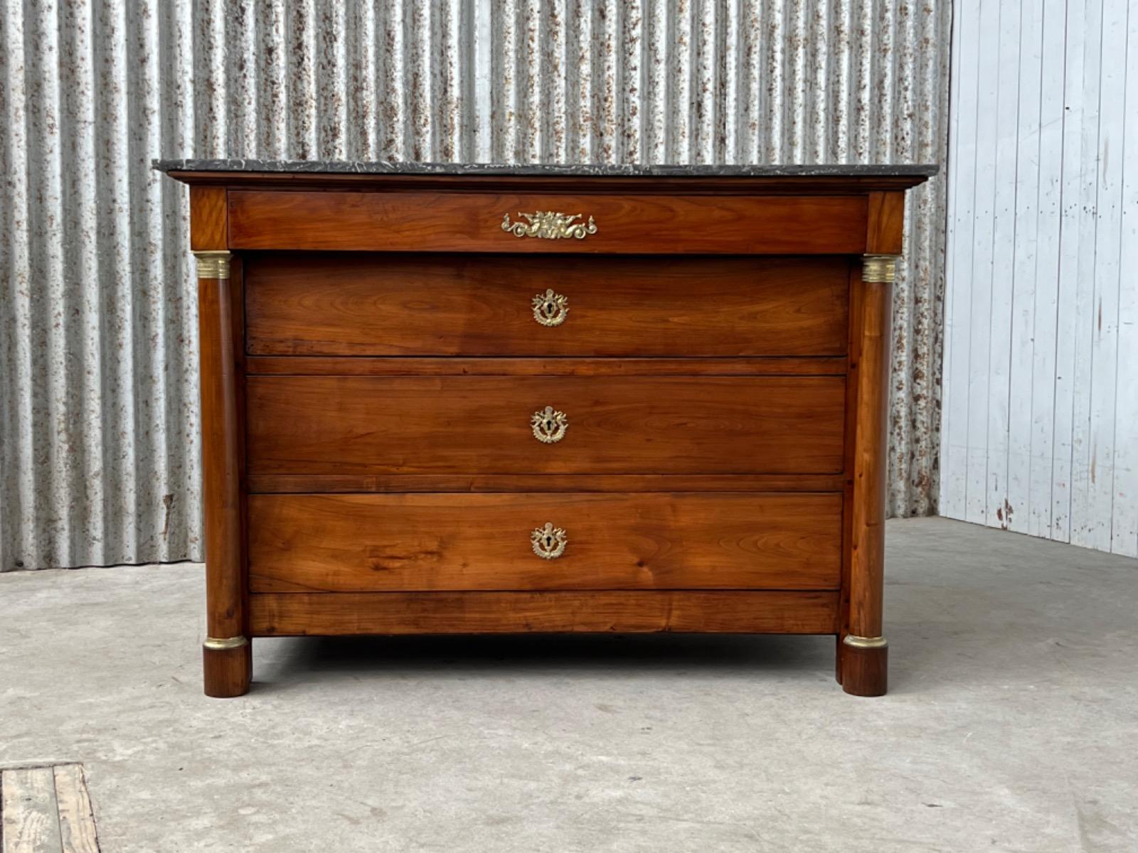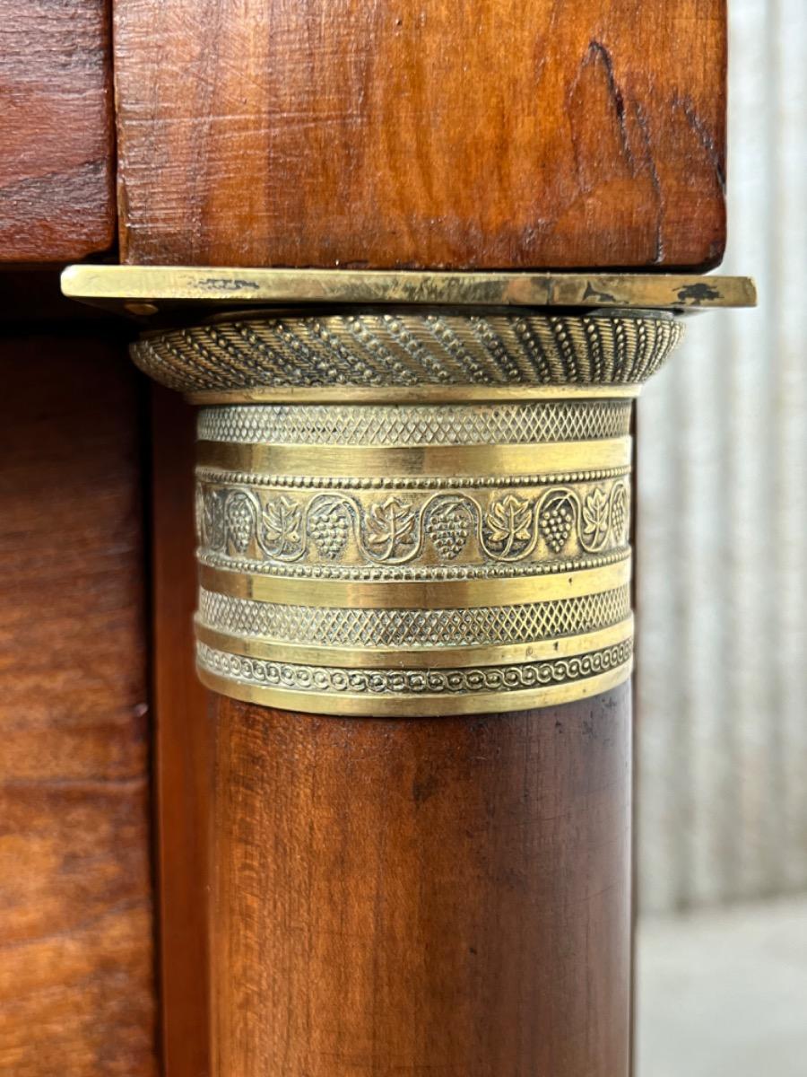 Franse kersenhouten empire ladekast, volle kersenhouten pilaren met oorspronkelijke vuurverguld messing kapitelen.
