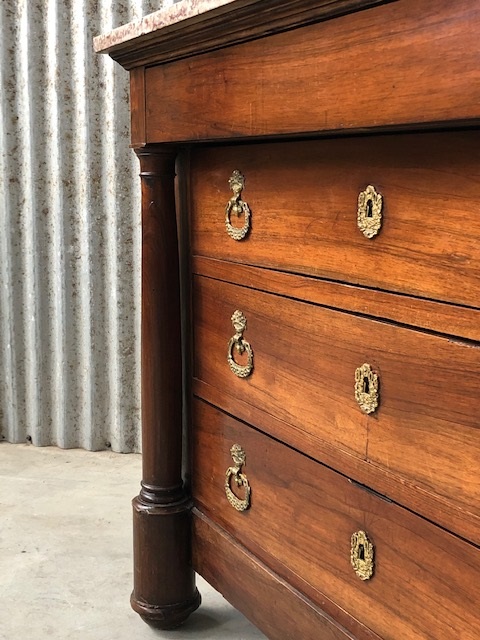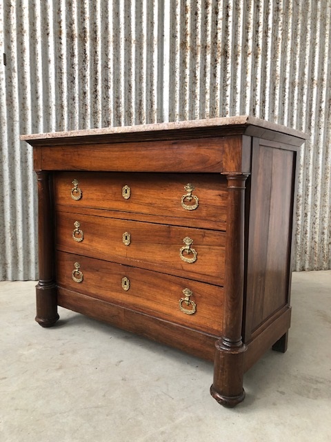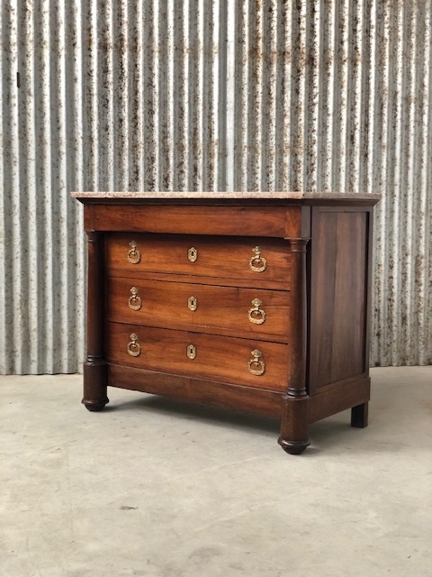 Empire Franse commode, notenhout, met Rozalia marmer.