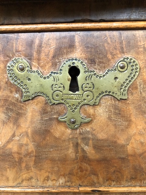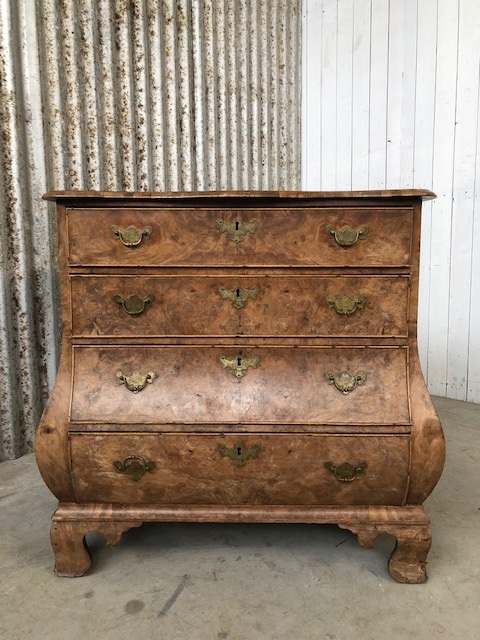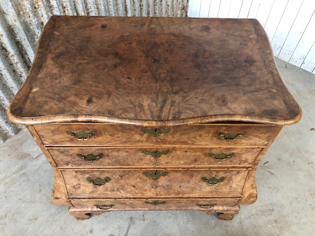 Wortelnoten commode Louis xv / xvi met messing beslag.