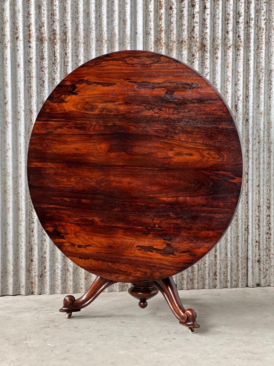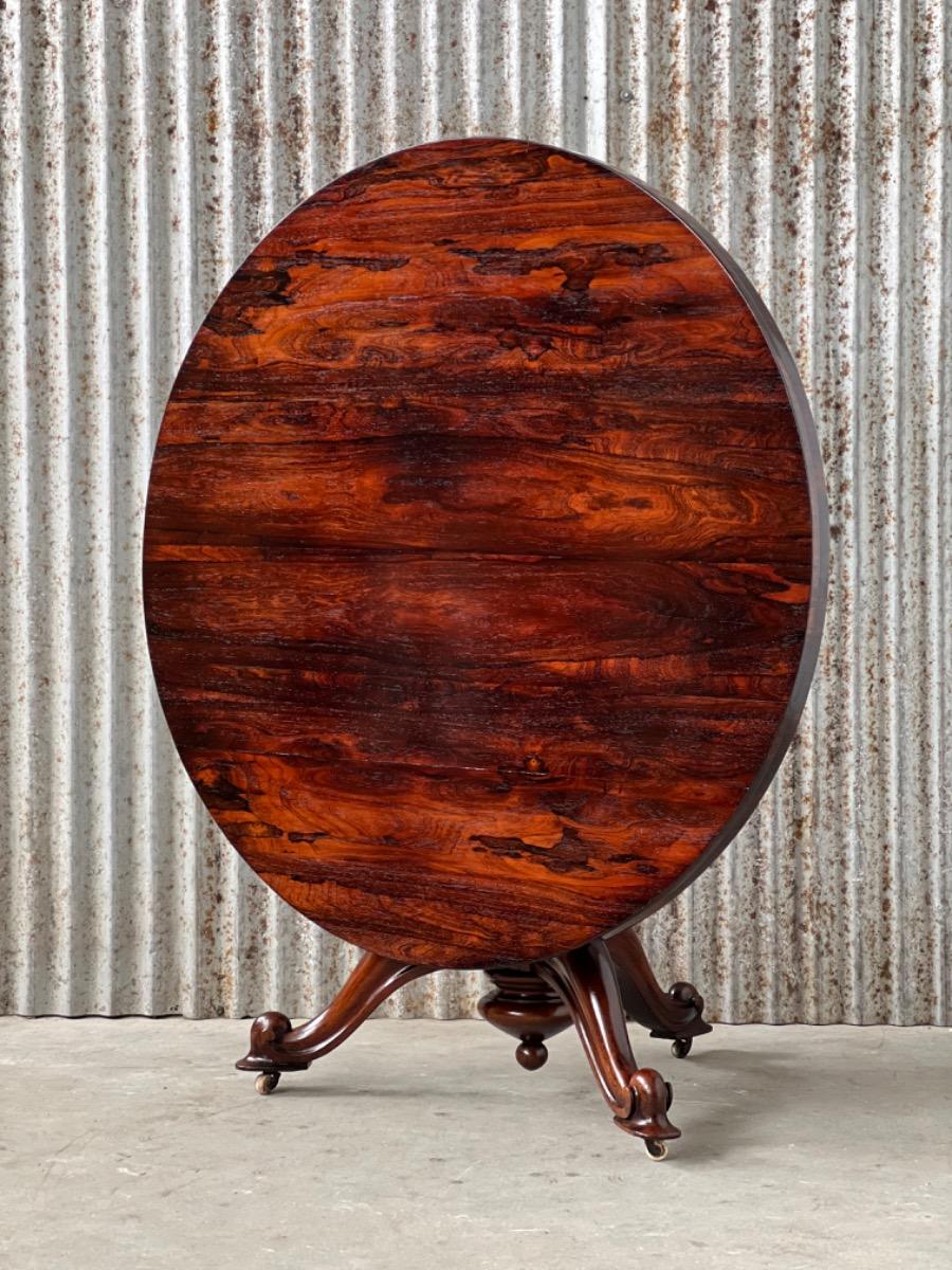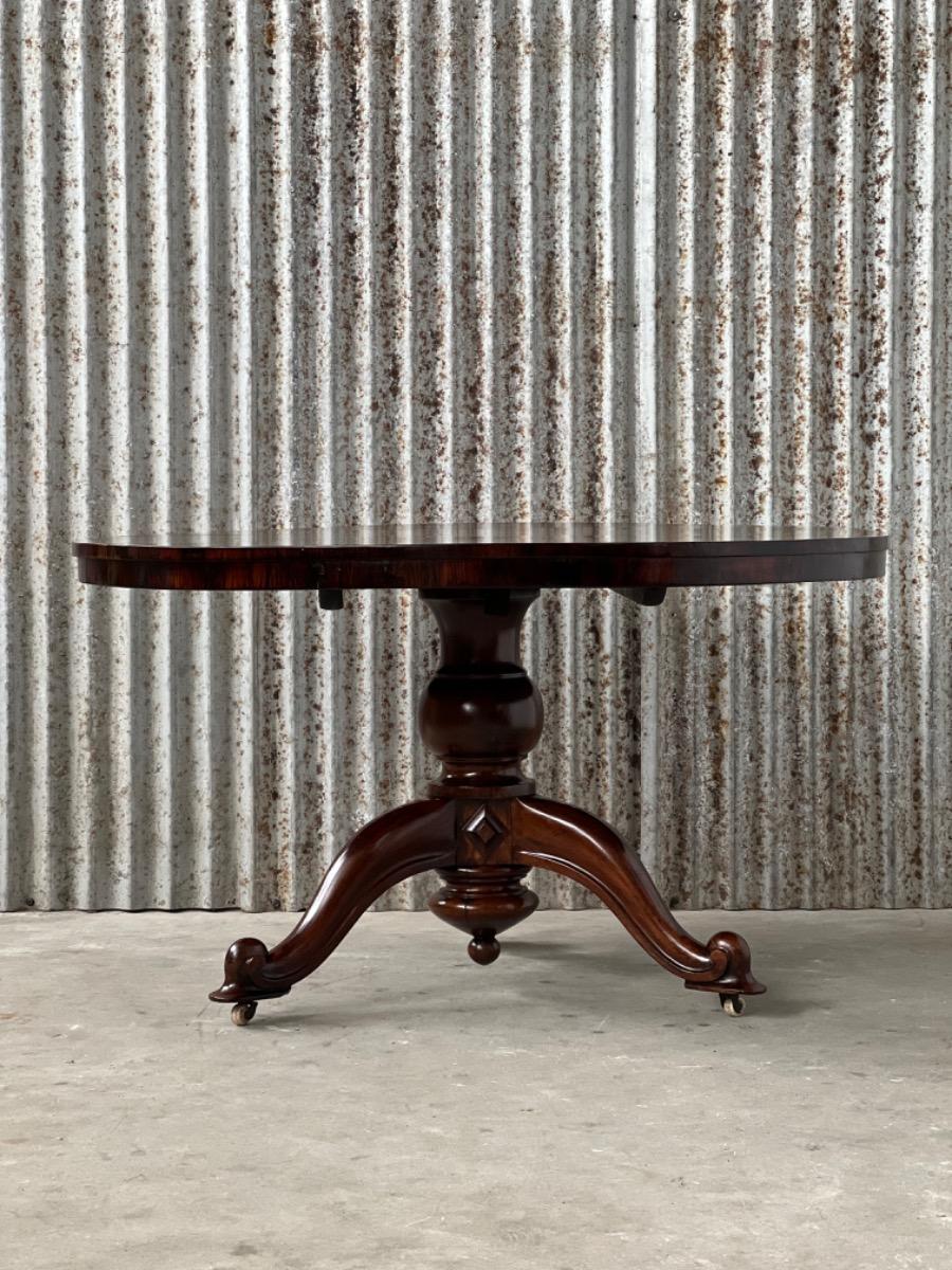 Engelse ‘tilttop’ table me groot palisander hout gefineerd blad.