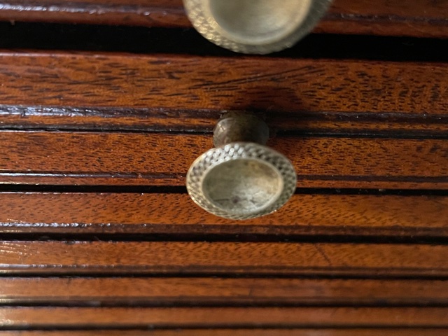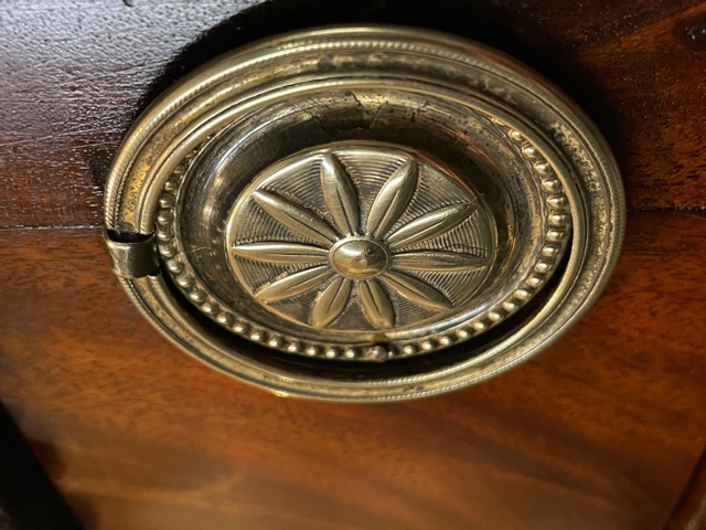 In heel goede conditie, oorspronkelijk vuurverguld ring beslag op de lade en knopjes op de jalousie deuren. ook de sloten zijn oorspronkelijk