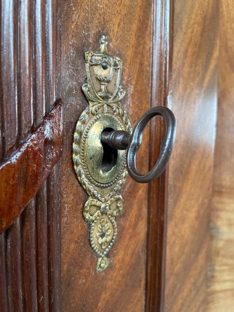 klein mahonie Louis XVI kabinet met oorspronkelijk beslag.
