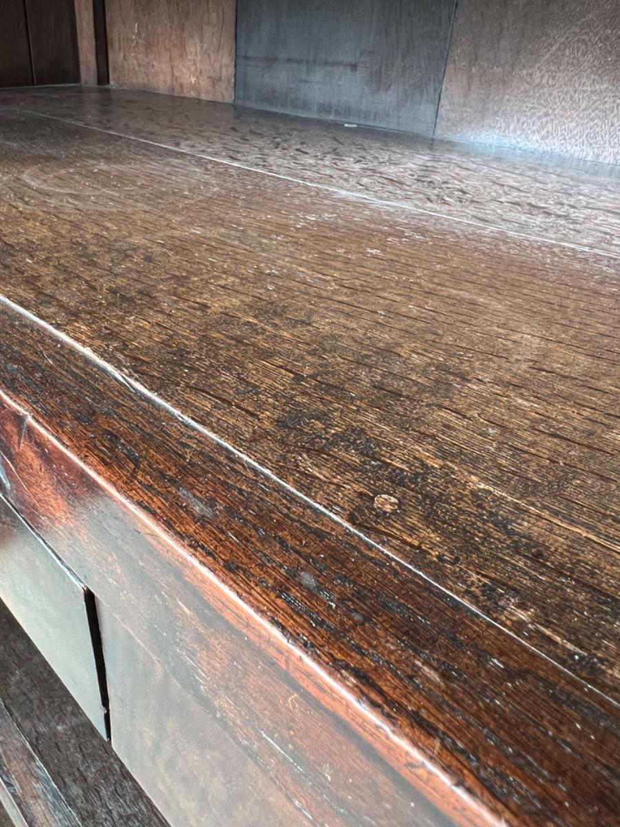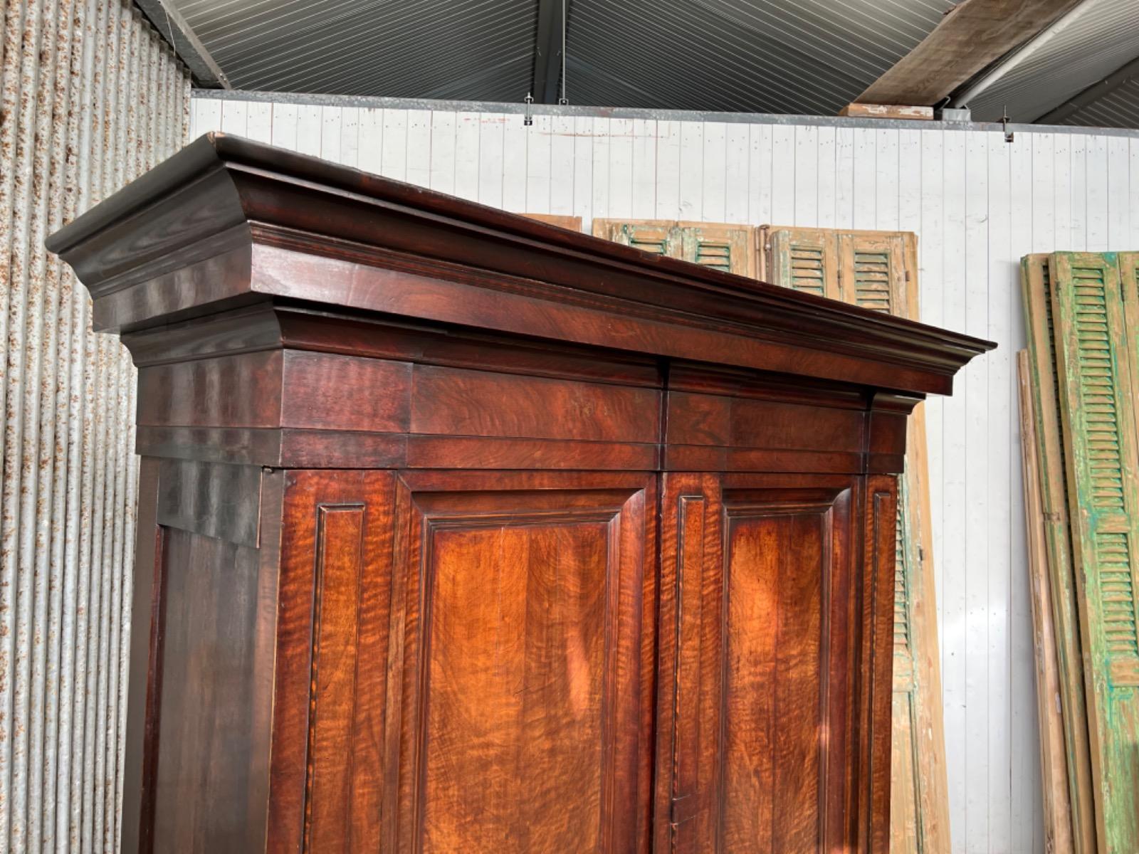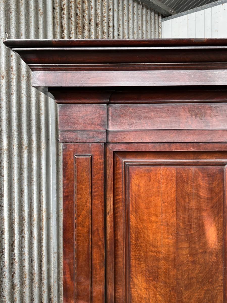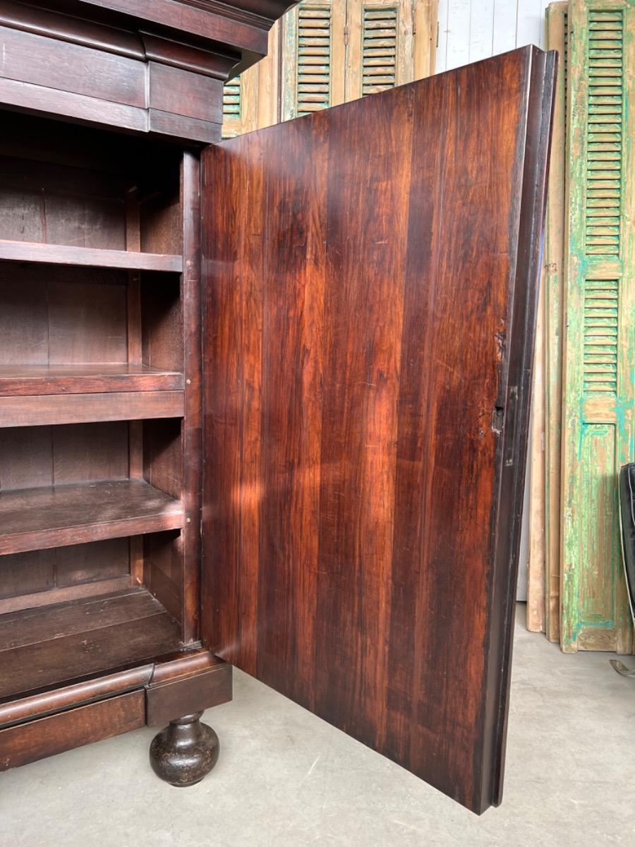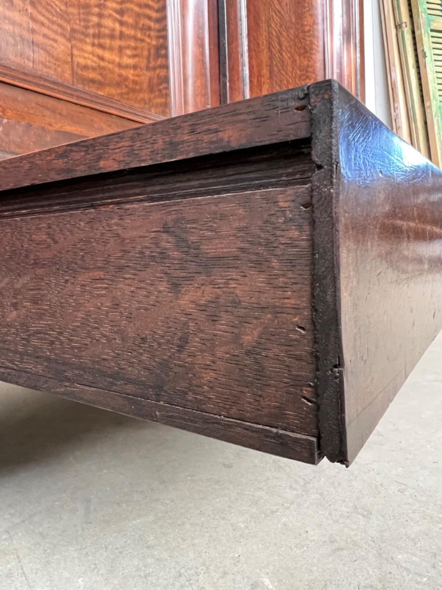 Notenhouten Notaris of Pastoors kast. 2e-3e kwart 18e eeuw. Grote overhangende en rijk geprofileerde kap met daaronder twee flinke deuren met evenals de zijden een panel.