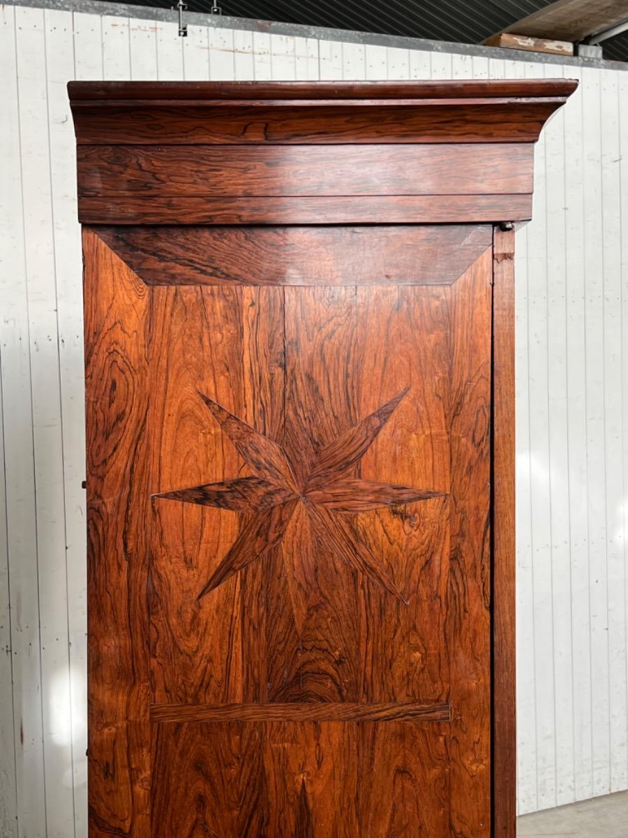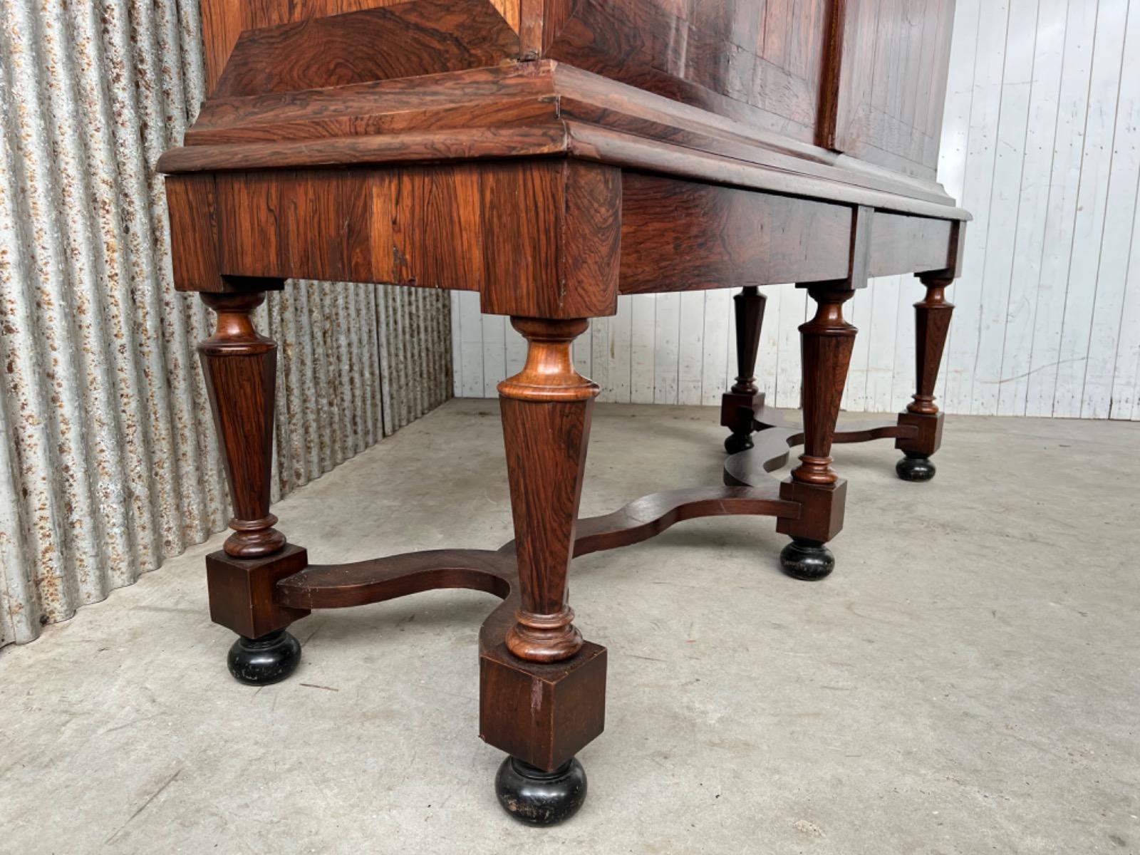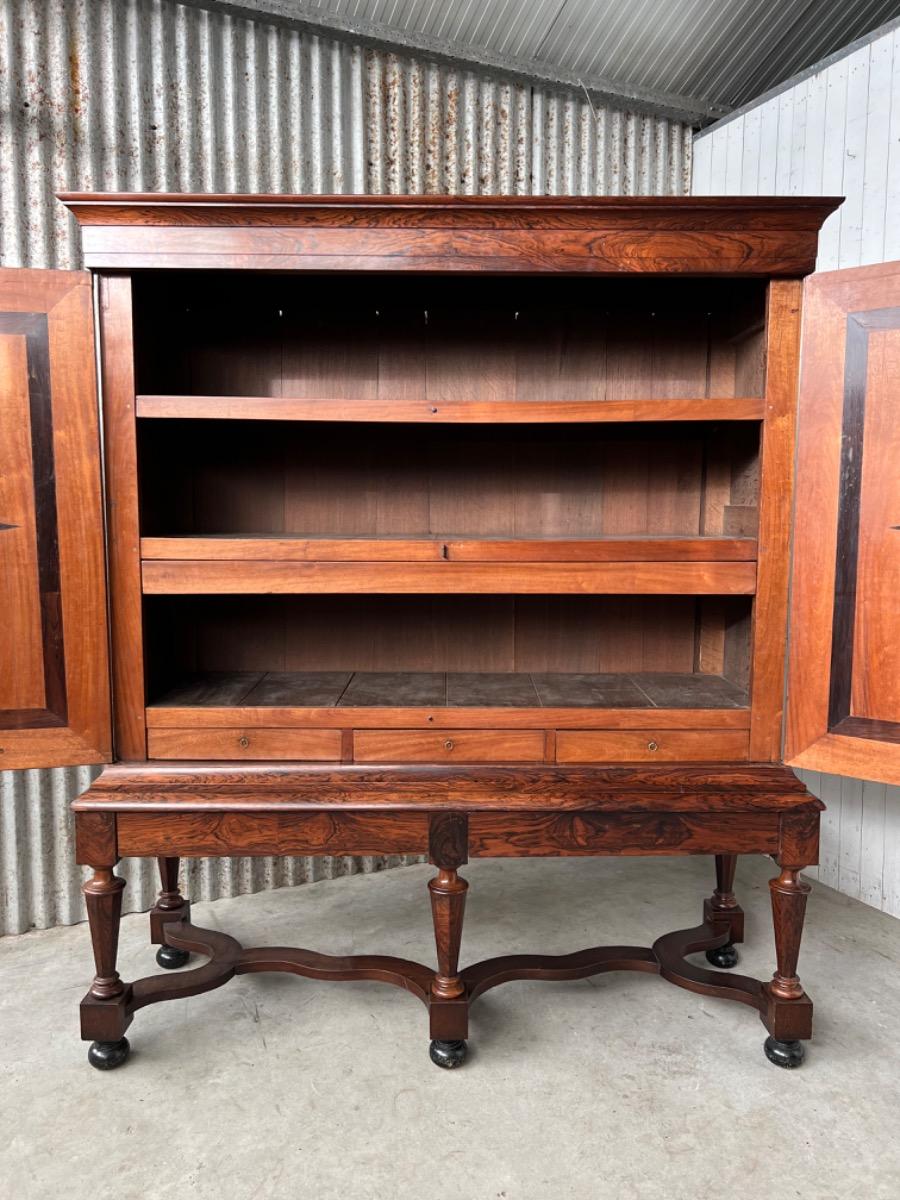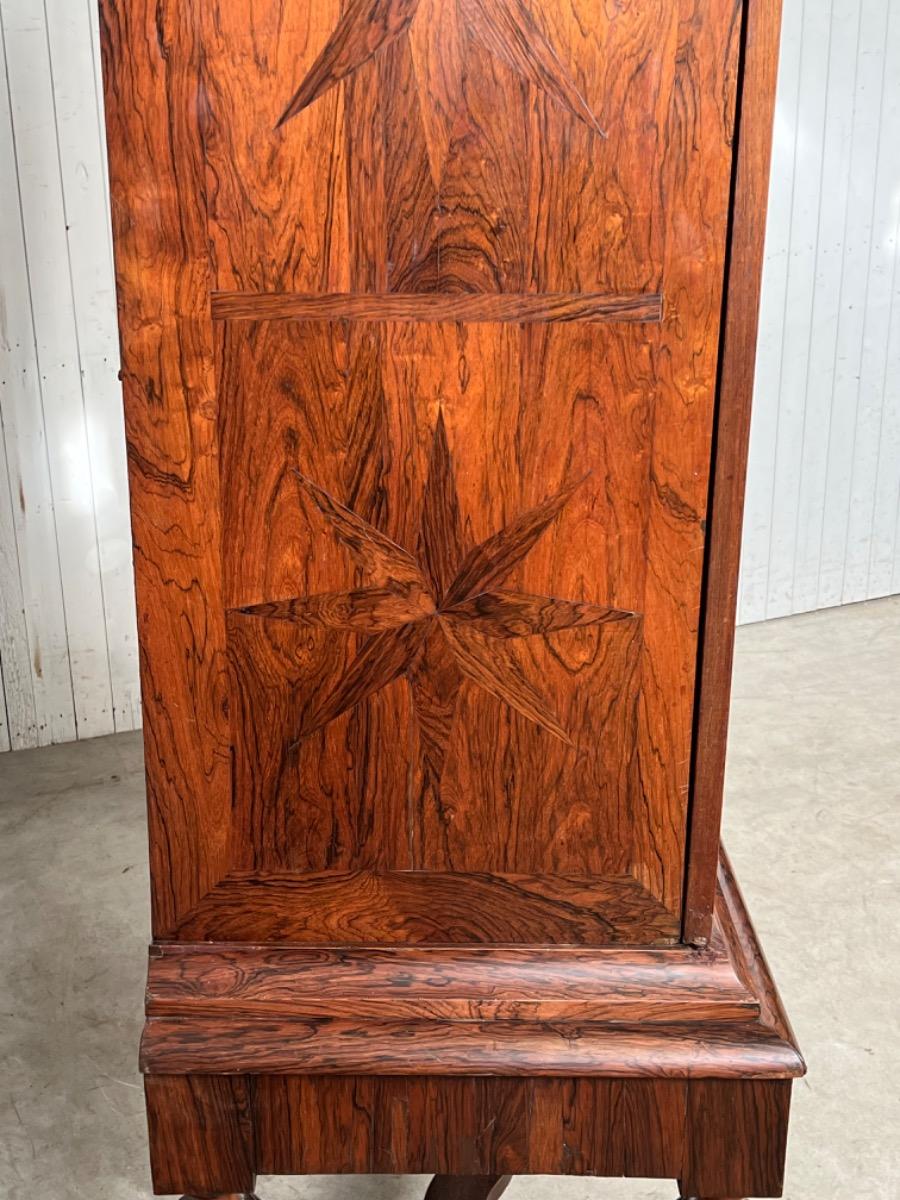 17e eeuws Zeeuws kruisvoet kabinet. Ingelegd met ebben bieswerk en sterren in zijden en deuren. Strakke kap met daaonder 2 vlakke deuren.