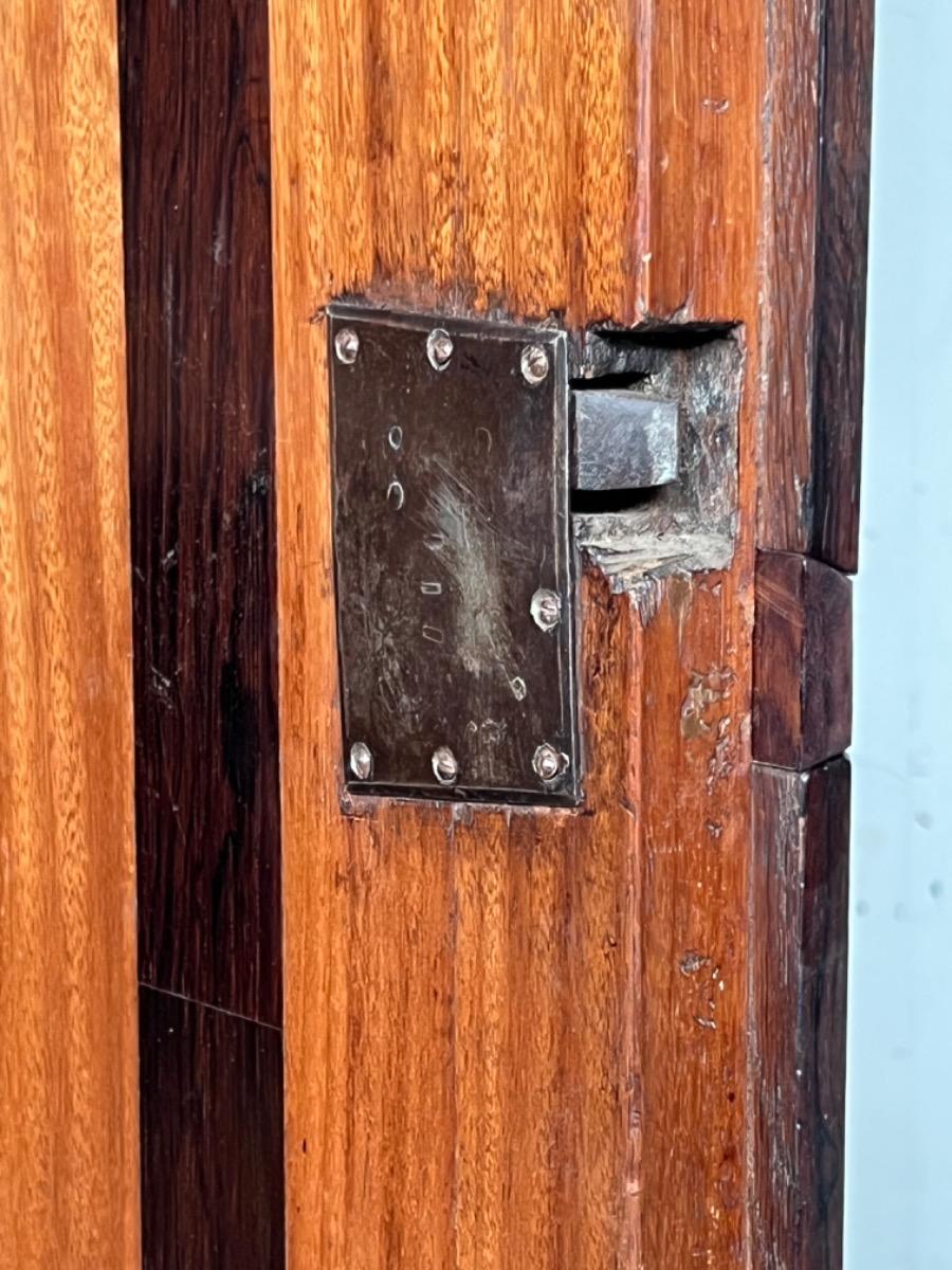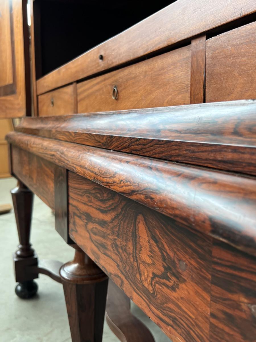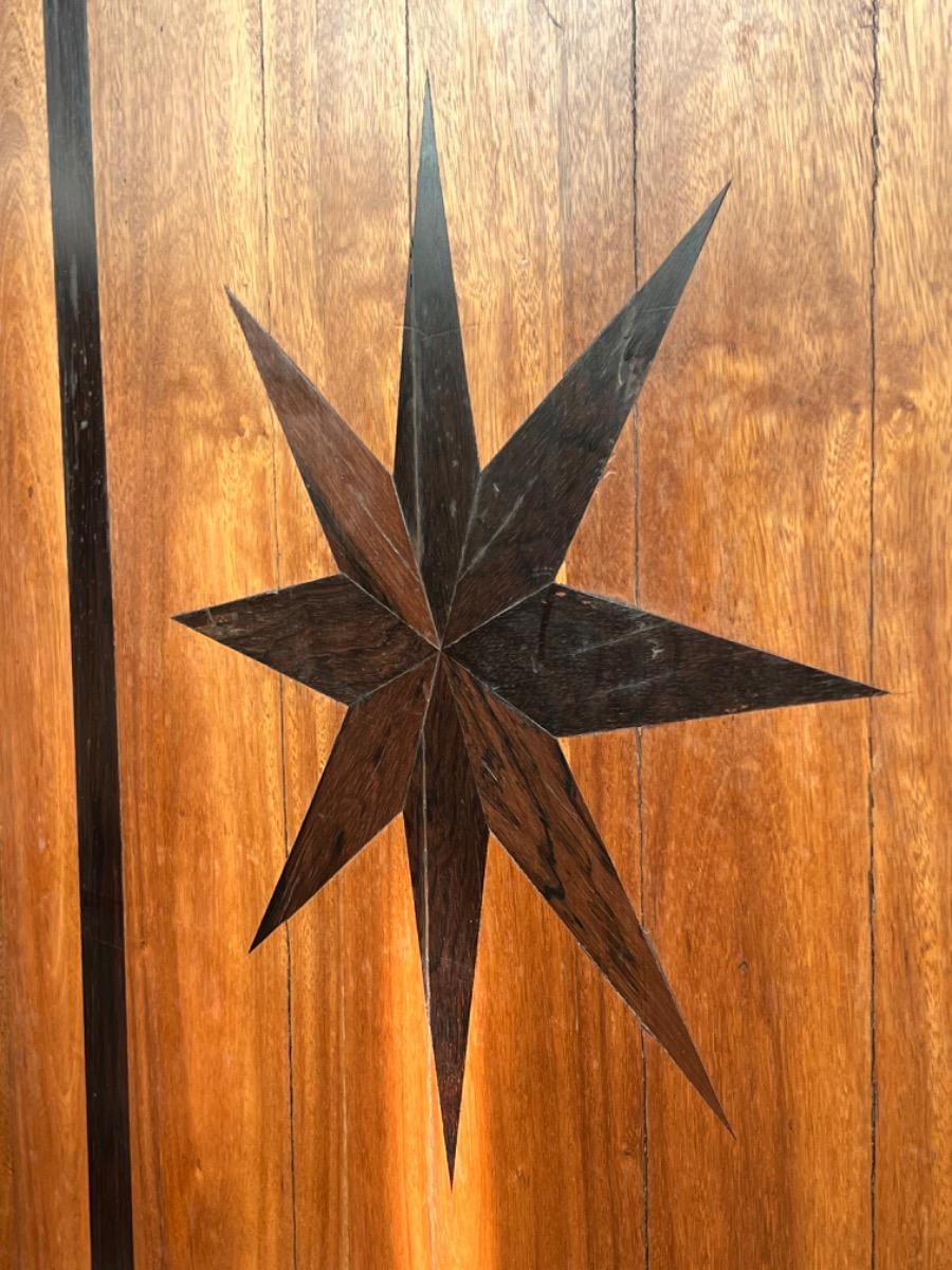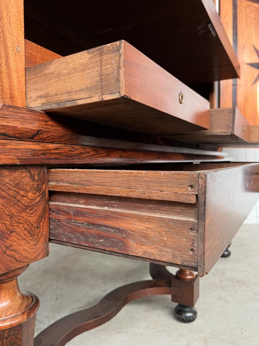 17e eeuws Zeeuws kruisvoet kabinet. Ingelegd met ebben bieswerk en sterren in zijden en deuren. Strakke kap met daaonder 2 vlakke deuren.