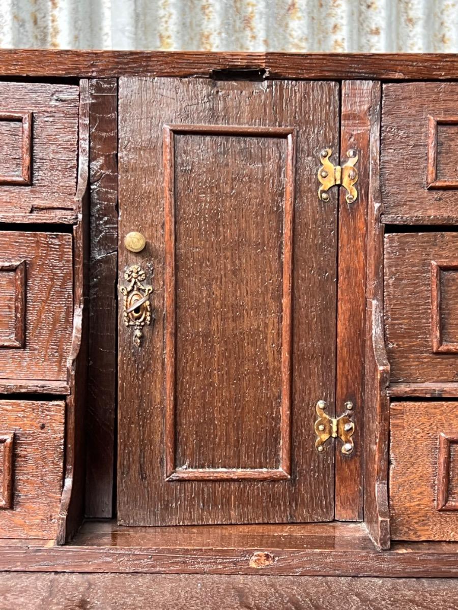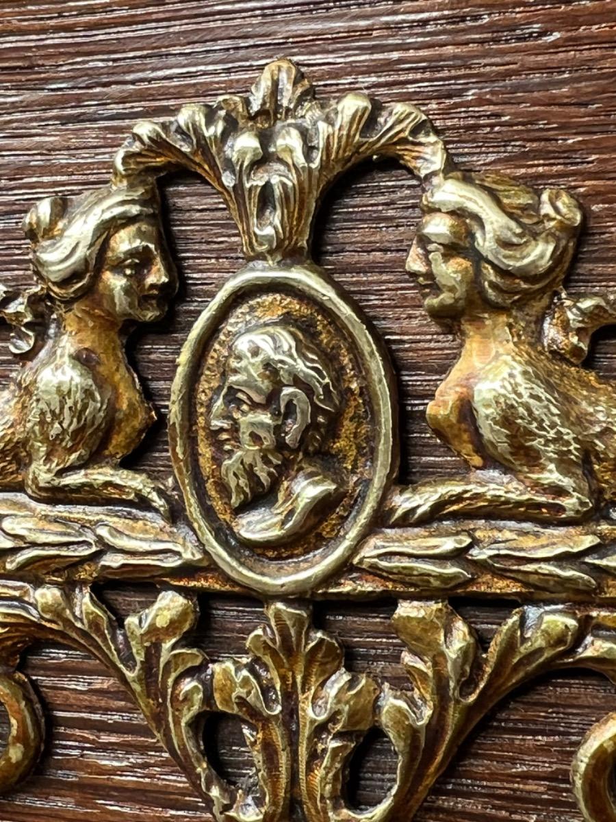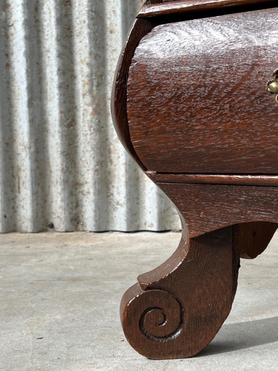 Onder de klep een 3 laads enkel gebogen onderkast met zeer fraai gedetailleerd beslag.