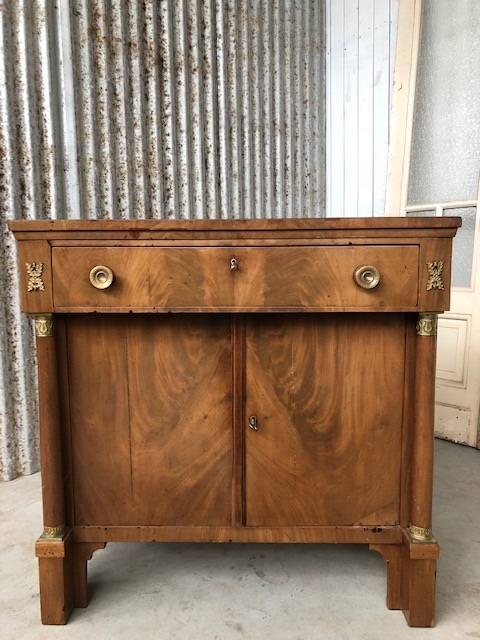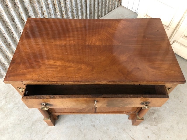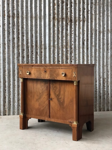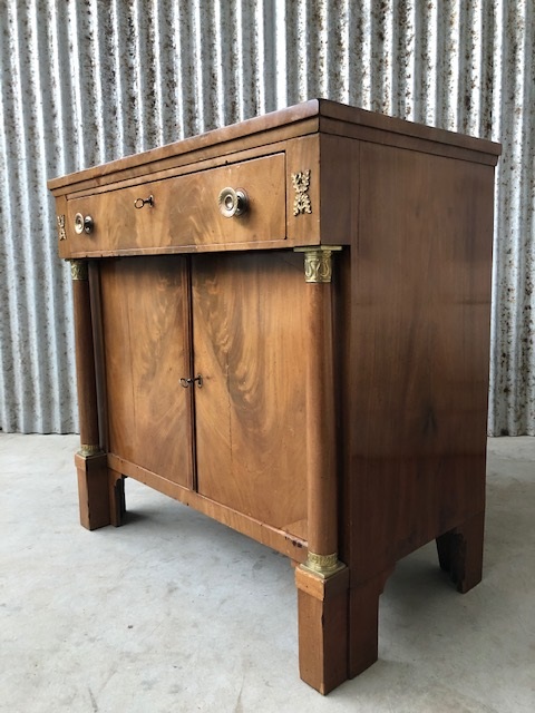 Mahonie Empire penant met volle pilaar, oorspronkelijke vuurvergulde messing kapitelen, en sloten.