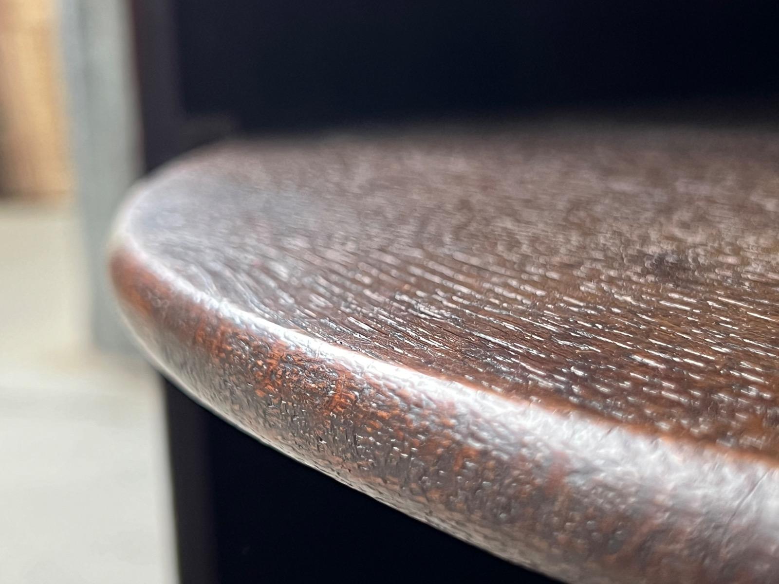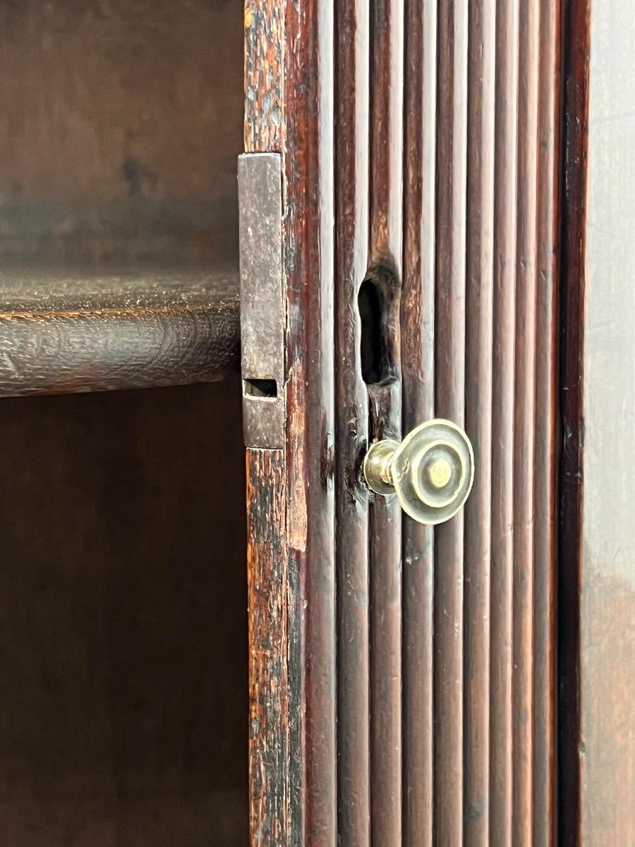 Achter de jalousie deur een midden plank van dikke eik, waarboven 1 lade.