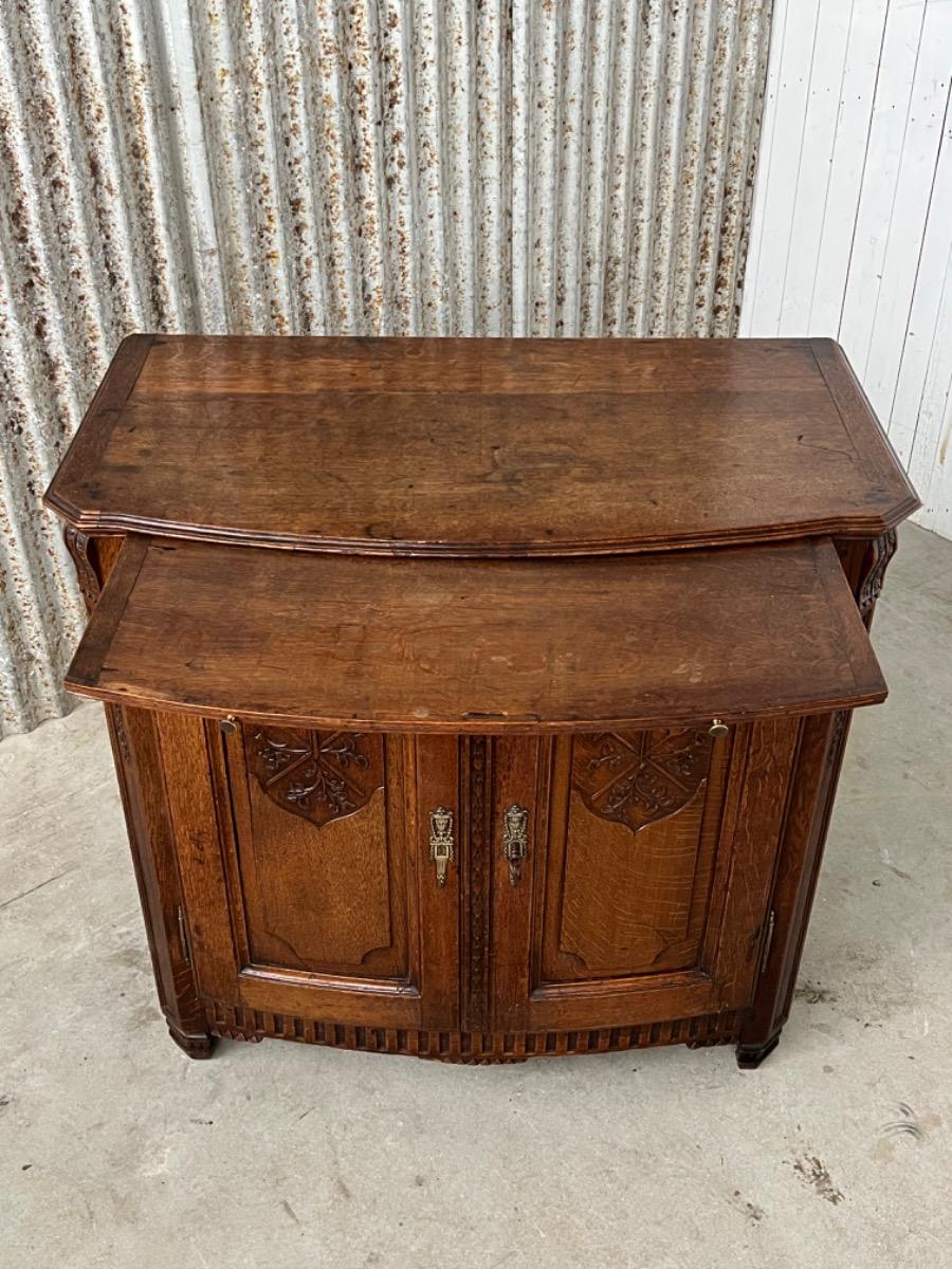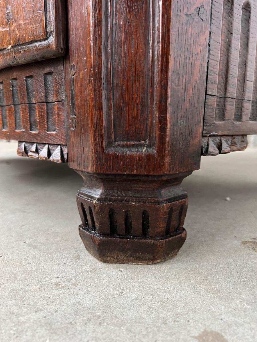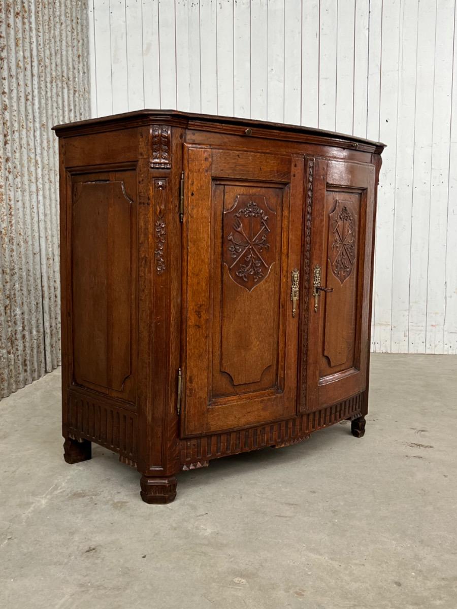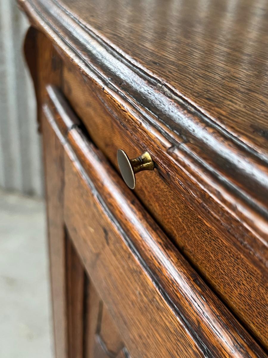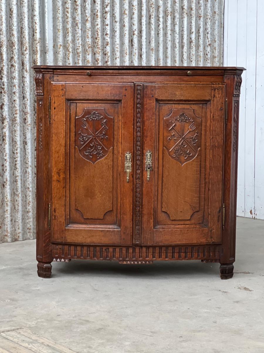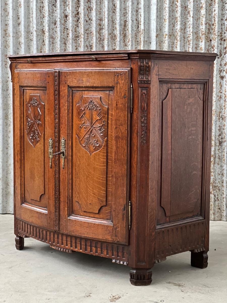 Vol eiken ‘penantkast’ met 2 paneel deuren voorzien van fraai fijn en gedetailleerd (uit) snijwerk. Zijden ook gepaneeld.