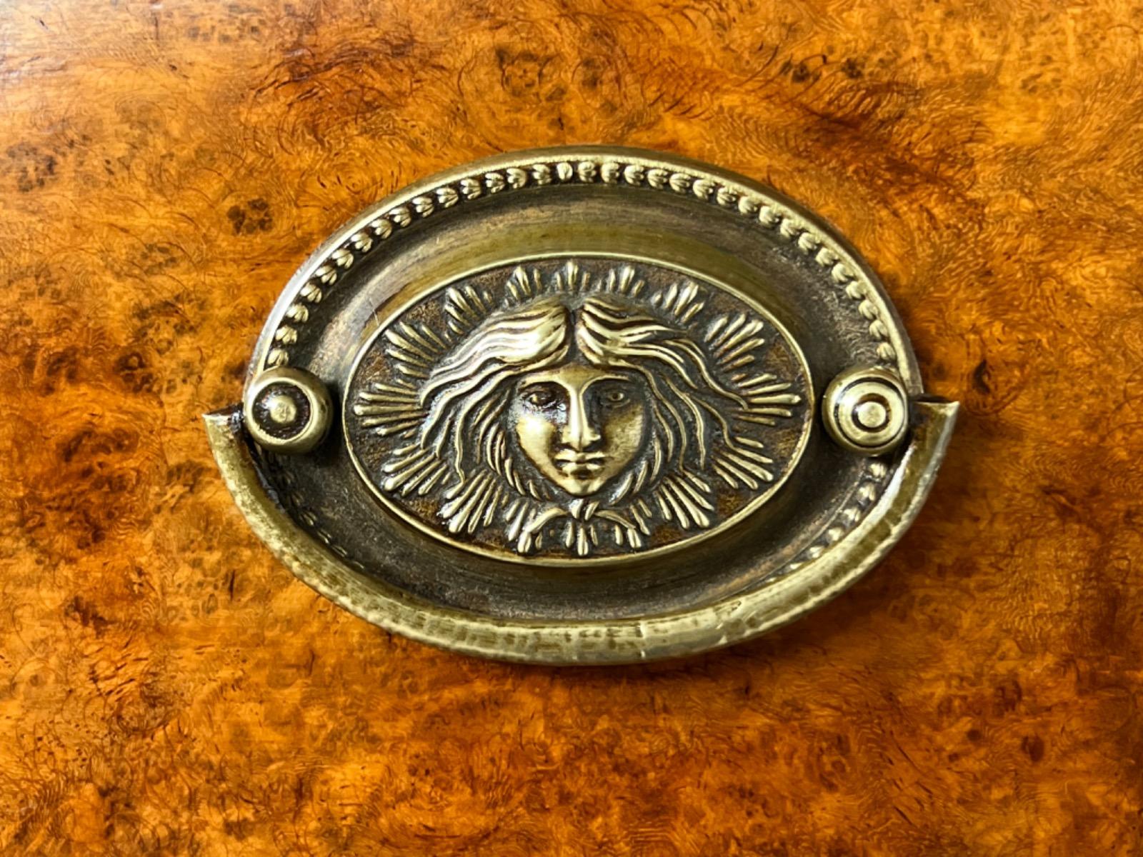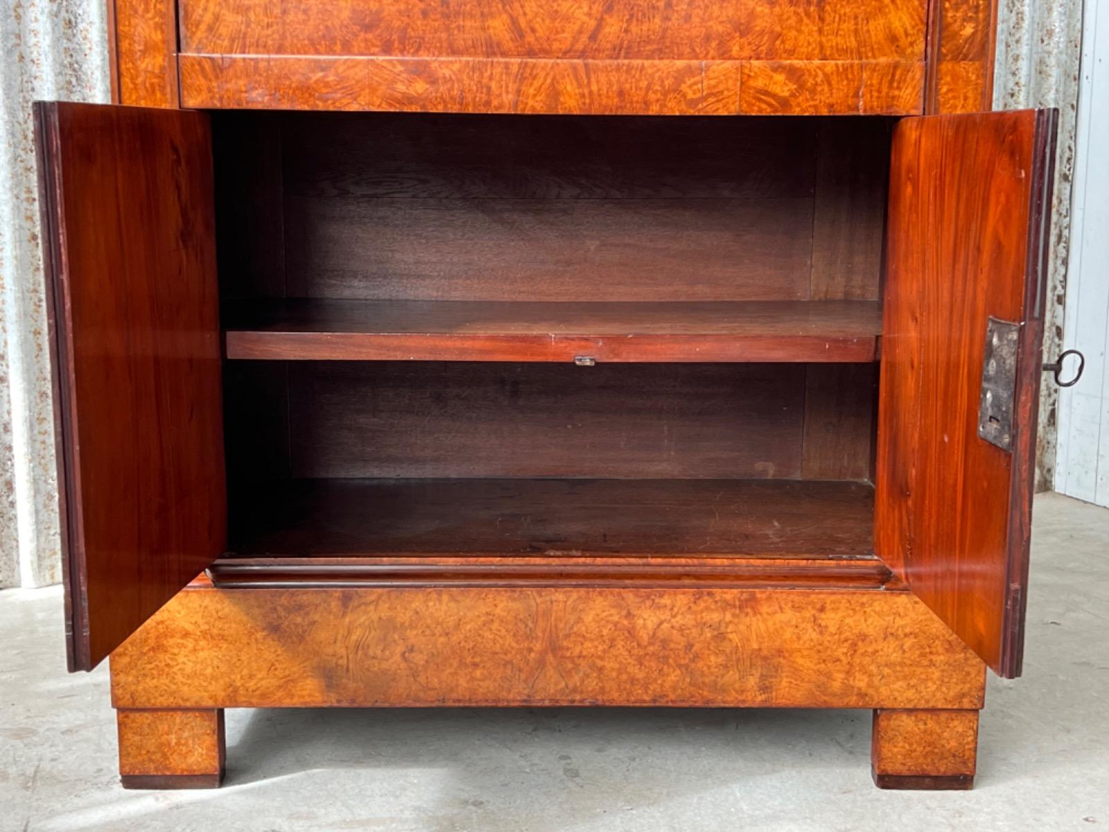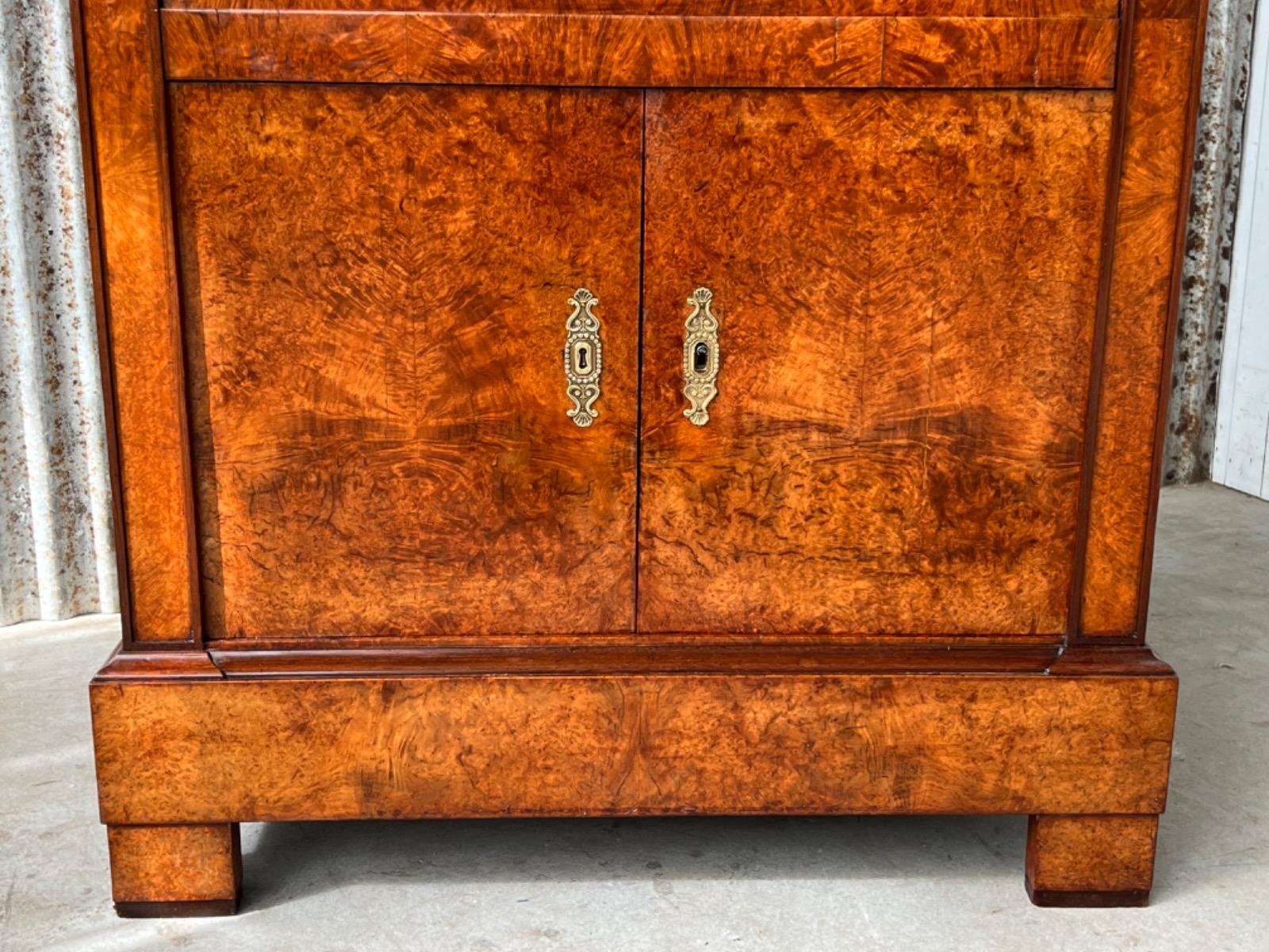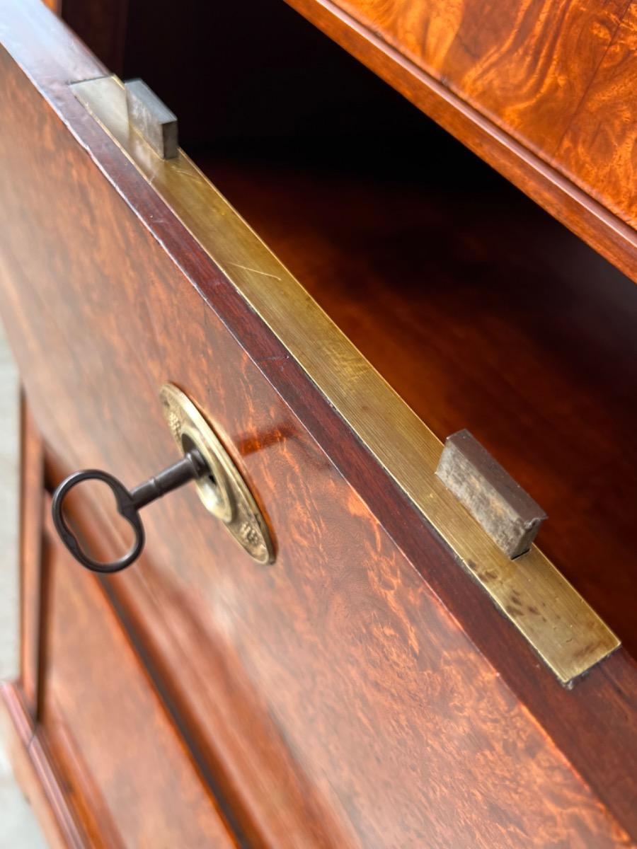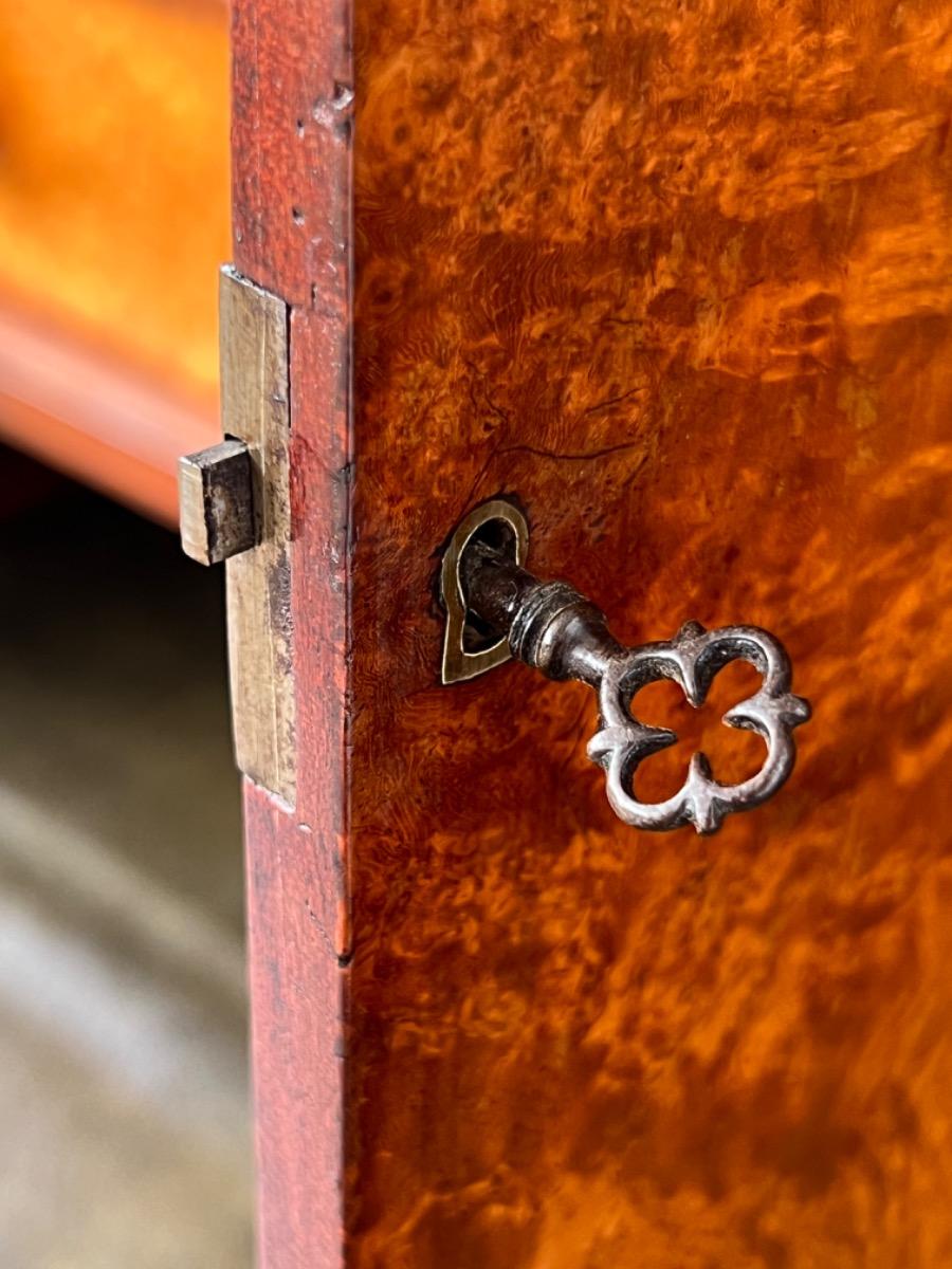 Strak model zeer fraai boek gefineerd. Kap lade met latoen koper ‘zonnen’ beslag.