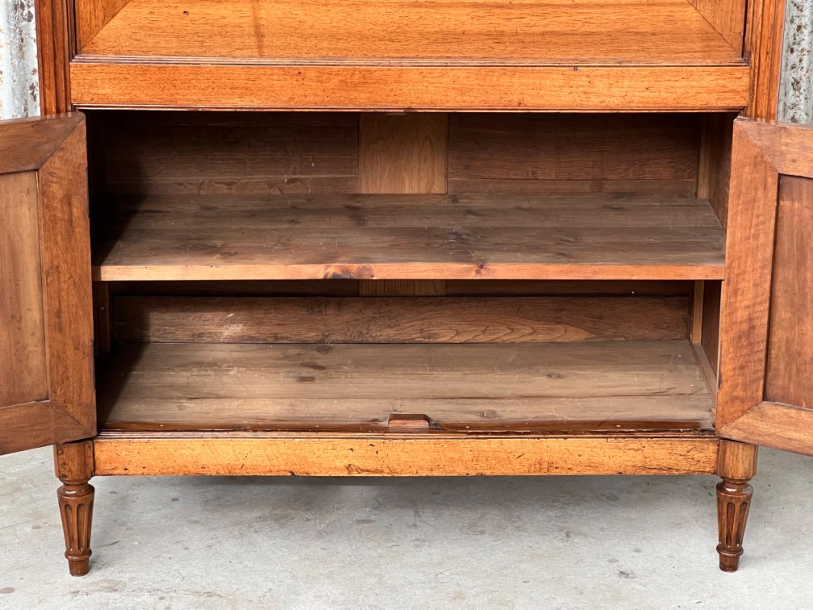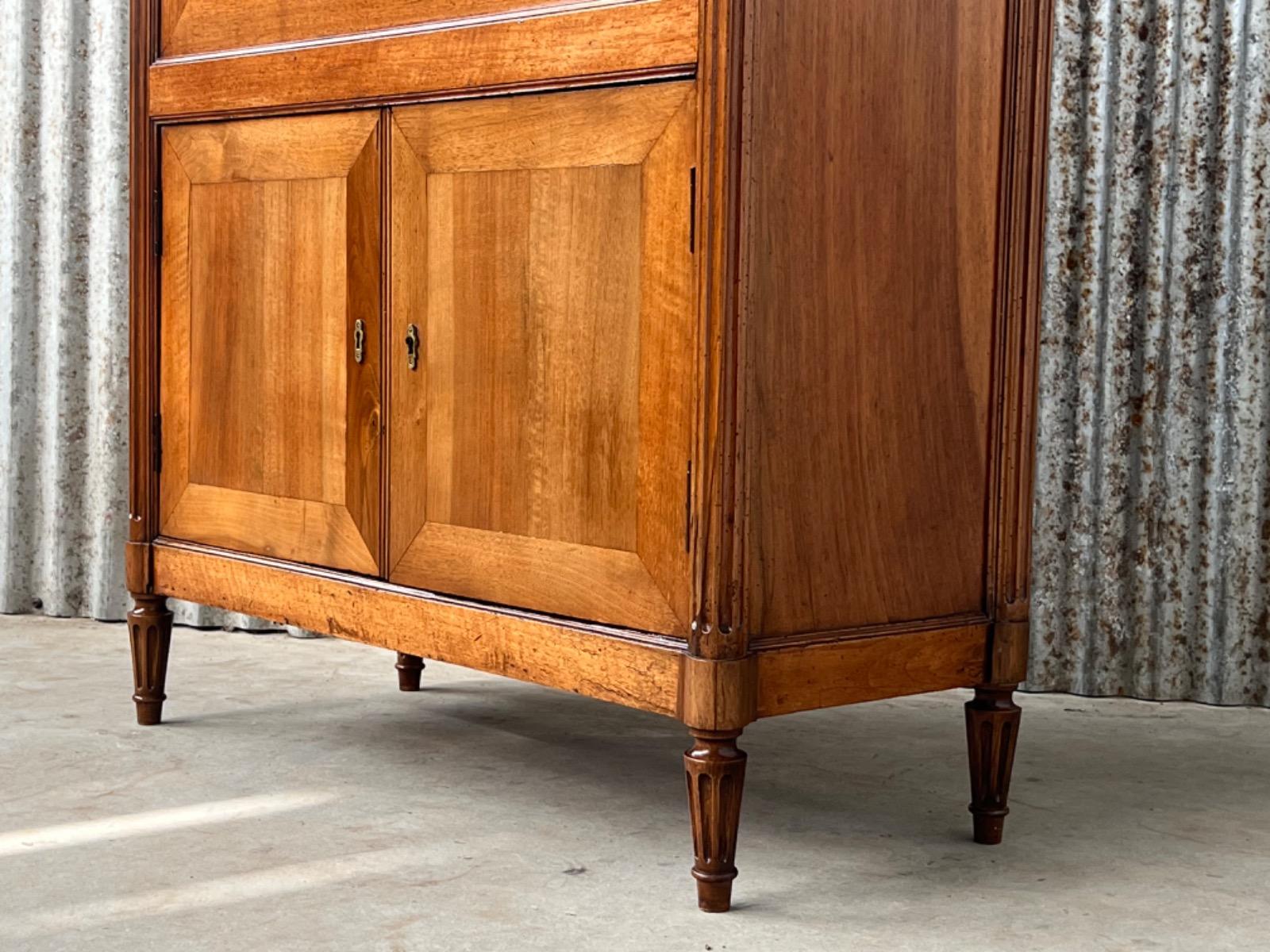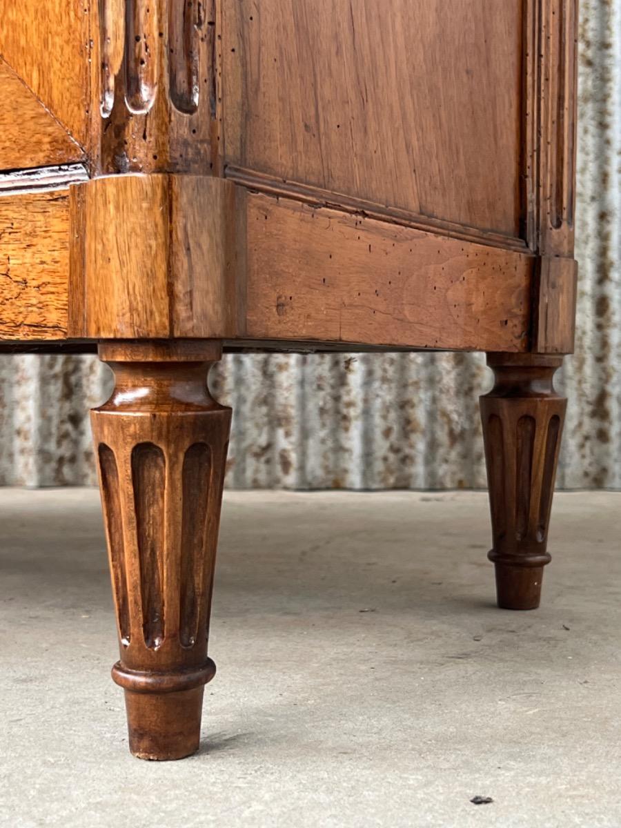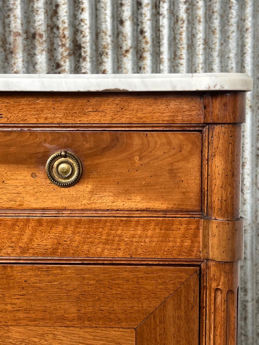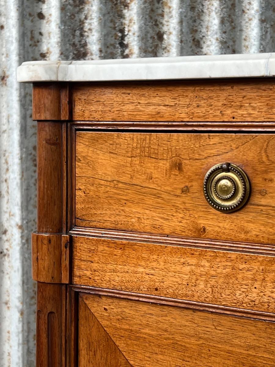 Louis XVI walnut secretaire à abattant By J.F Leleu with its original ‘Bianca Carrara’ marble top with rounded front corners.