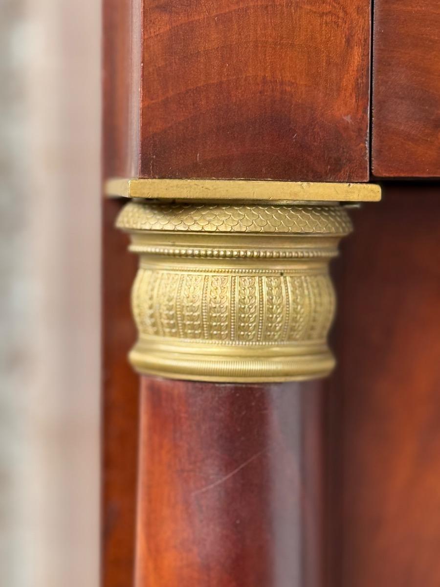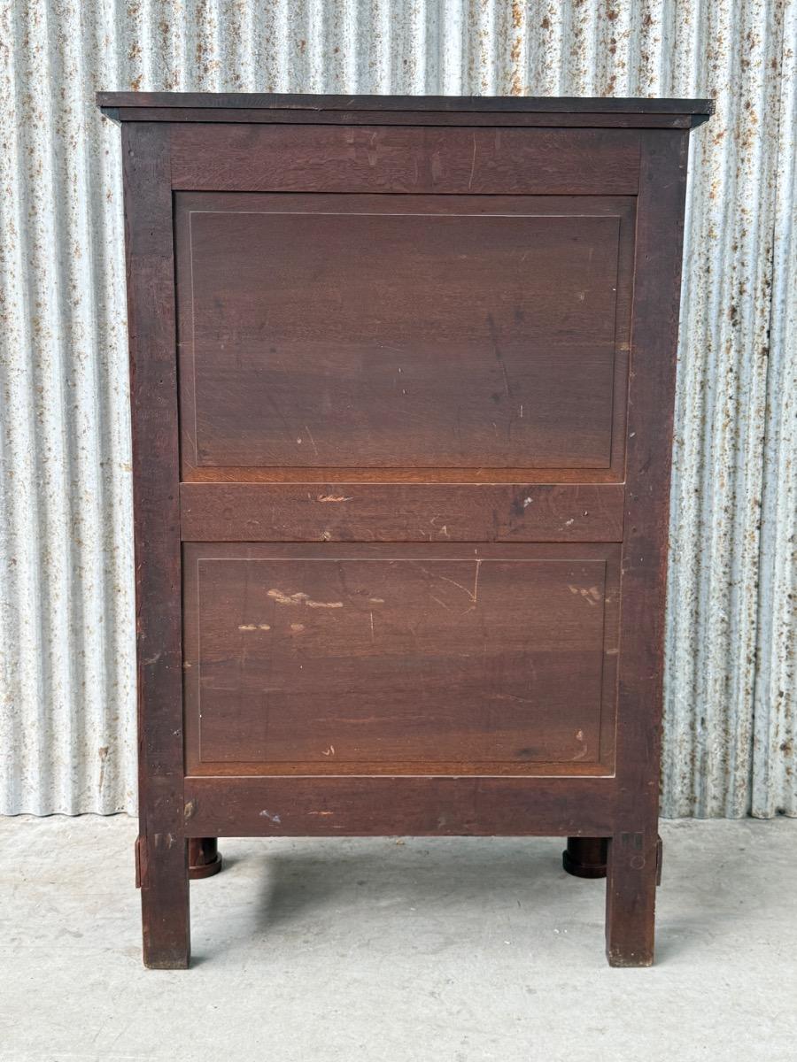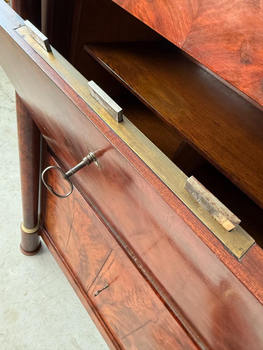 Het interieur vol met laden, oorspronkelijk vuur vergulde lade trekkertjes. De onderkast, achter de twee deuren een eiken plank.