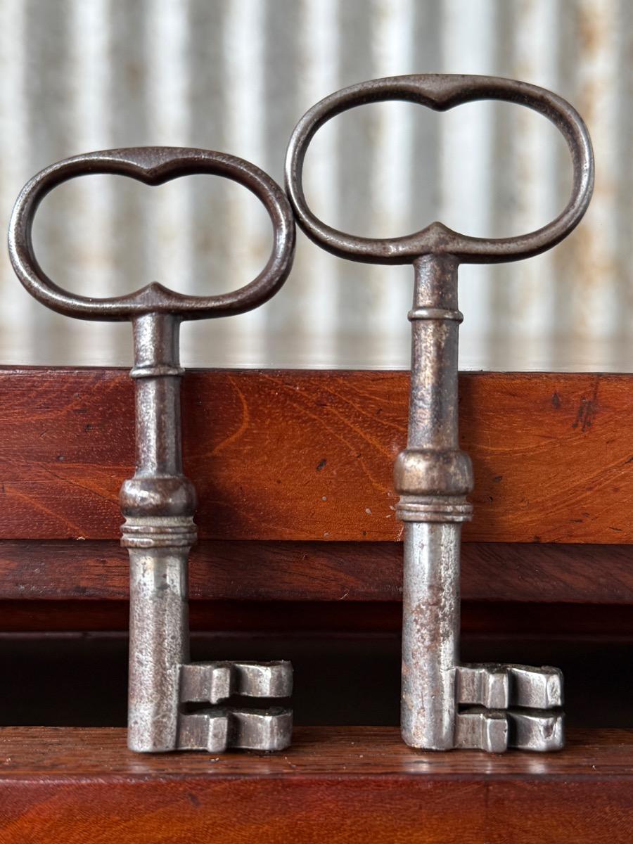Overstekende kap lade met rond deels verguld beslag. Flinke klep, ingelegd met groen kalfsleder, voorzien van oorspronkelijk slot èn werkende sleutel