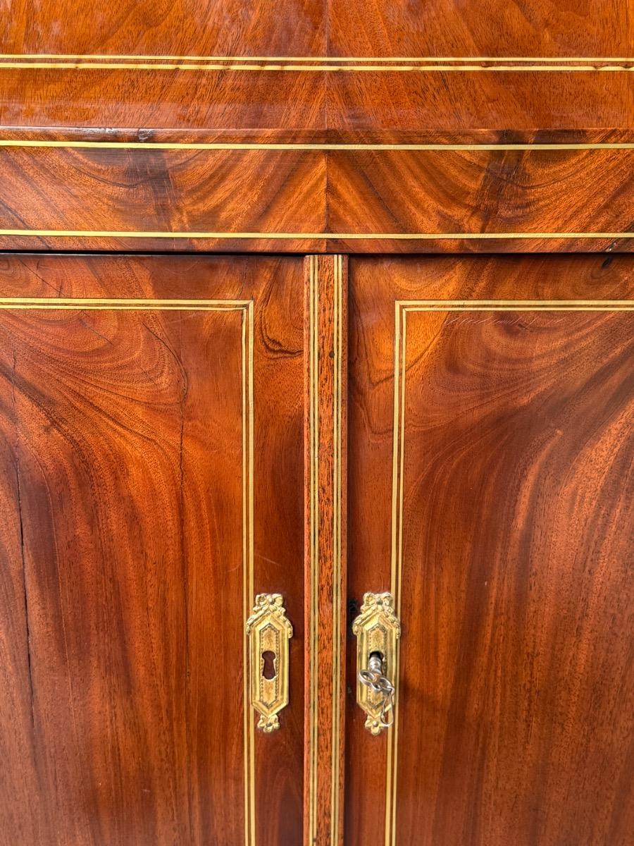 Sloten en sleutels werkend, allen oorspronkelijk. Geheel op tapse en messing ingelegde poten.