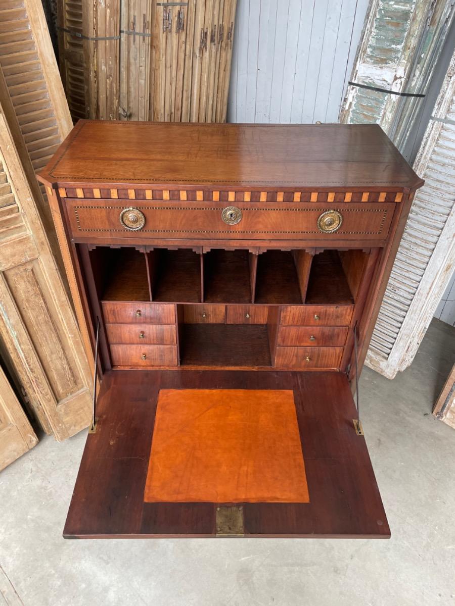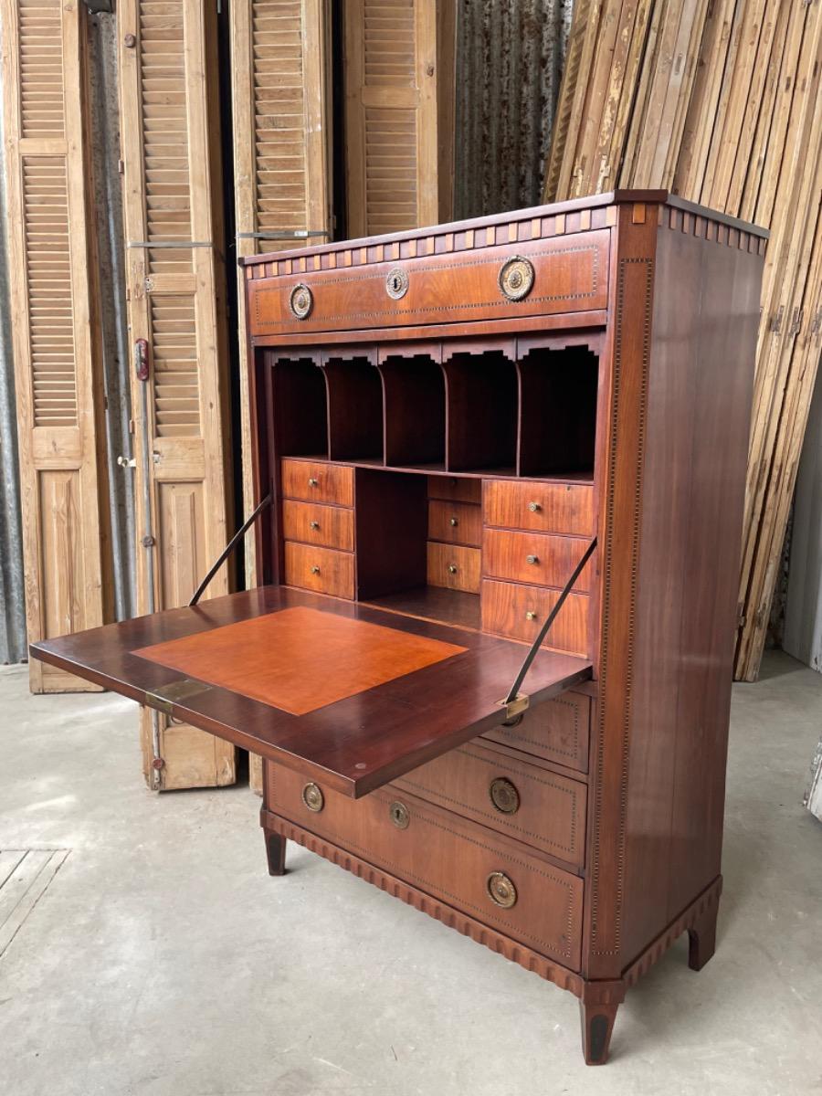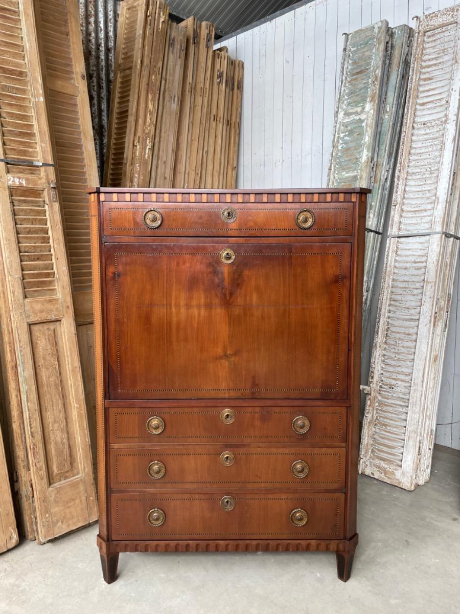 Hollands Louis XVI klep secretaire, 18e eeuw, band intarsia lijstwerk.