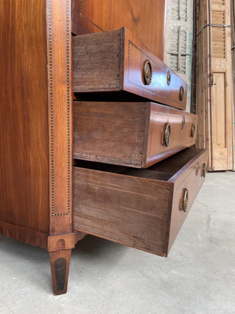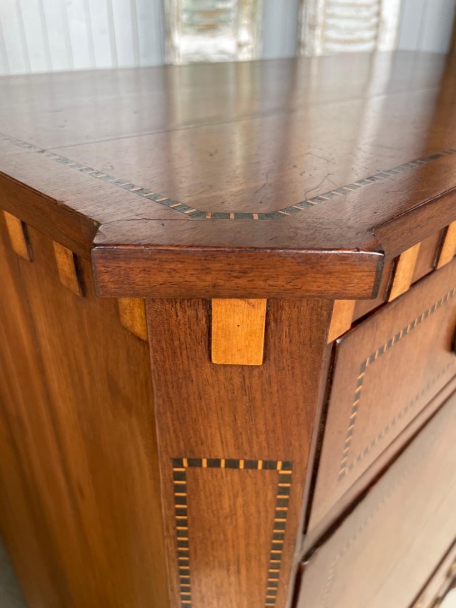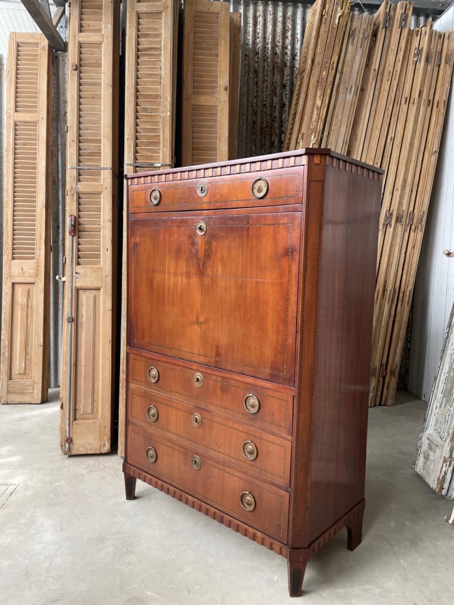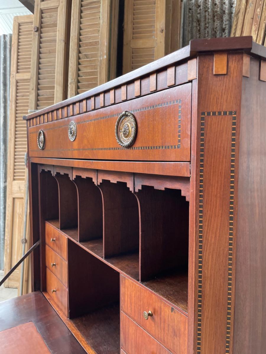 Hollands Louis XVI klep secretaire, 18e eeuw, band intarsia lijstwerk.