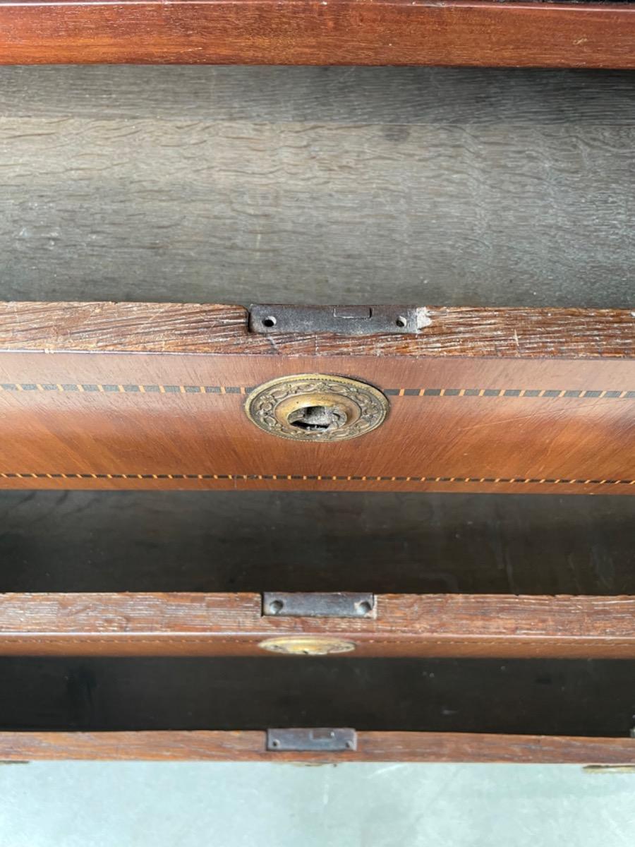 Mahonie, vruchtenhouten en ebbenhout inlegwerk