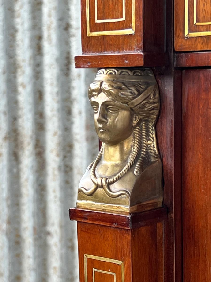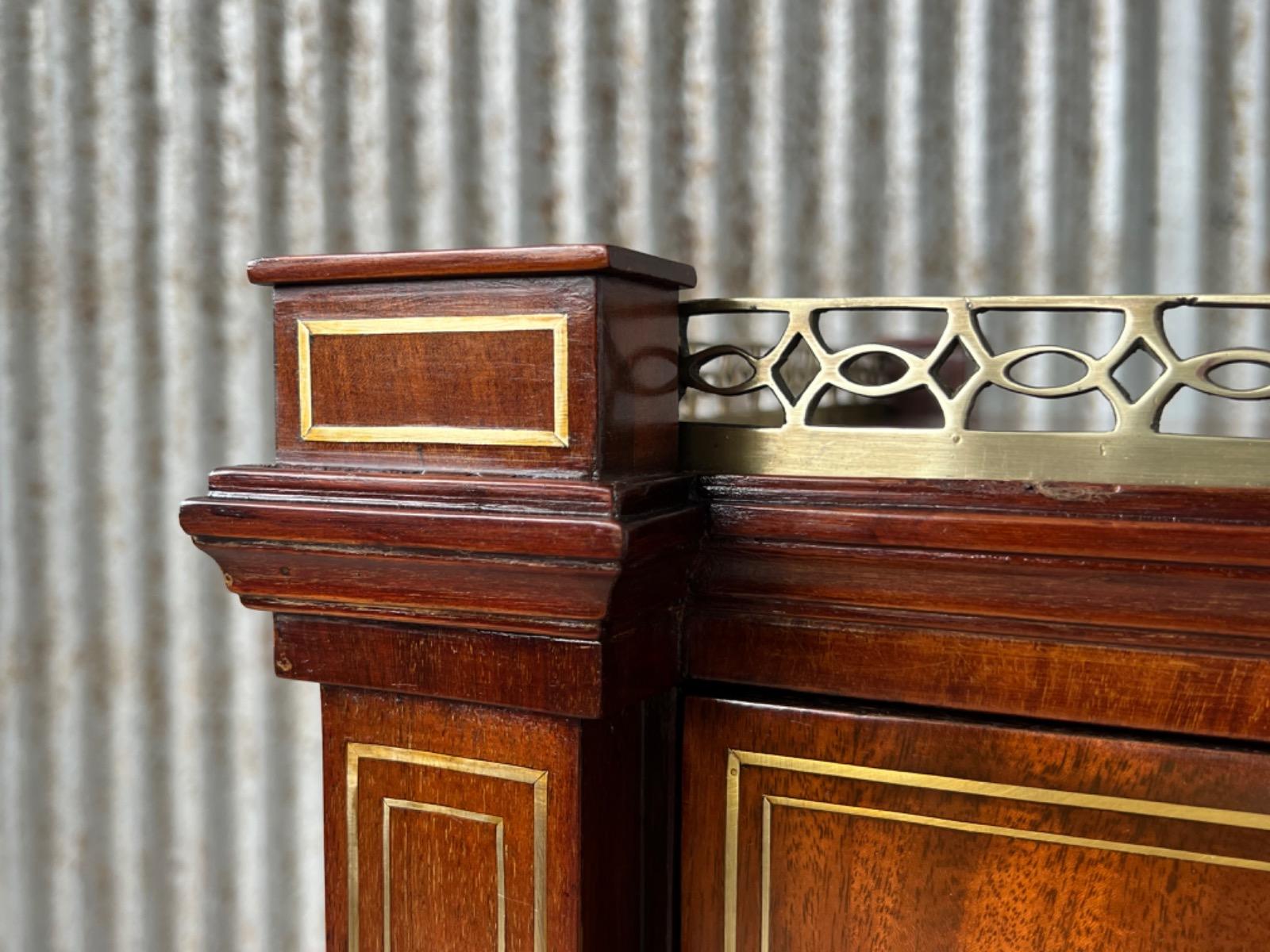 Messing beslag op de bovenlade, klep en deuren.