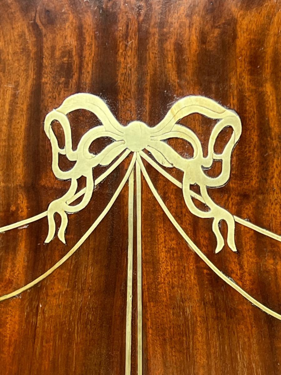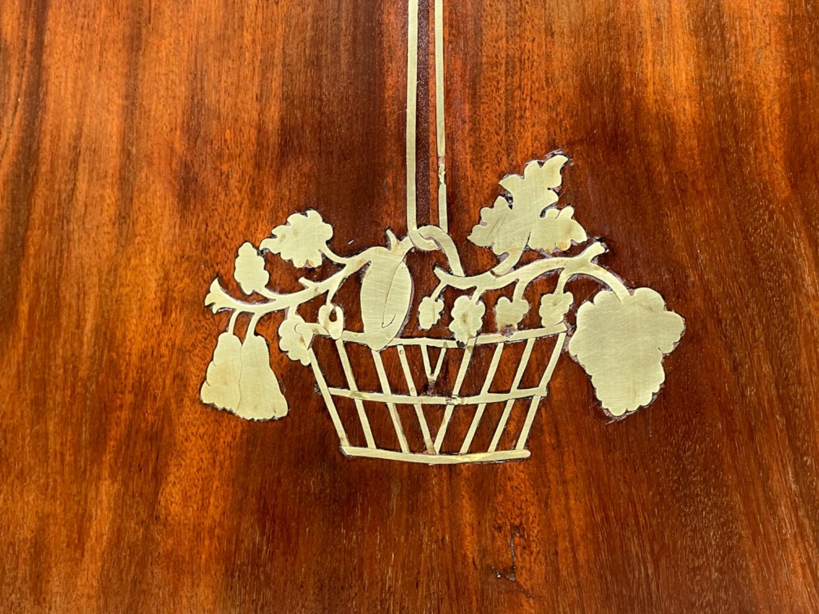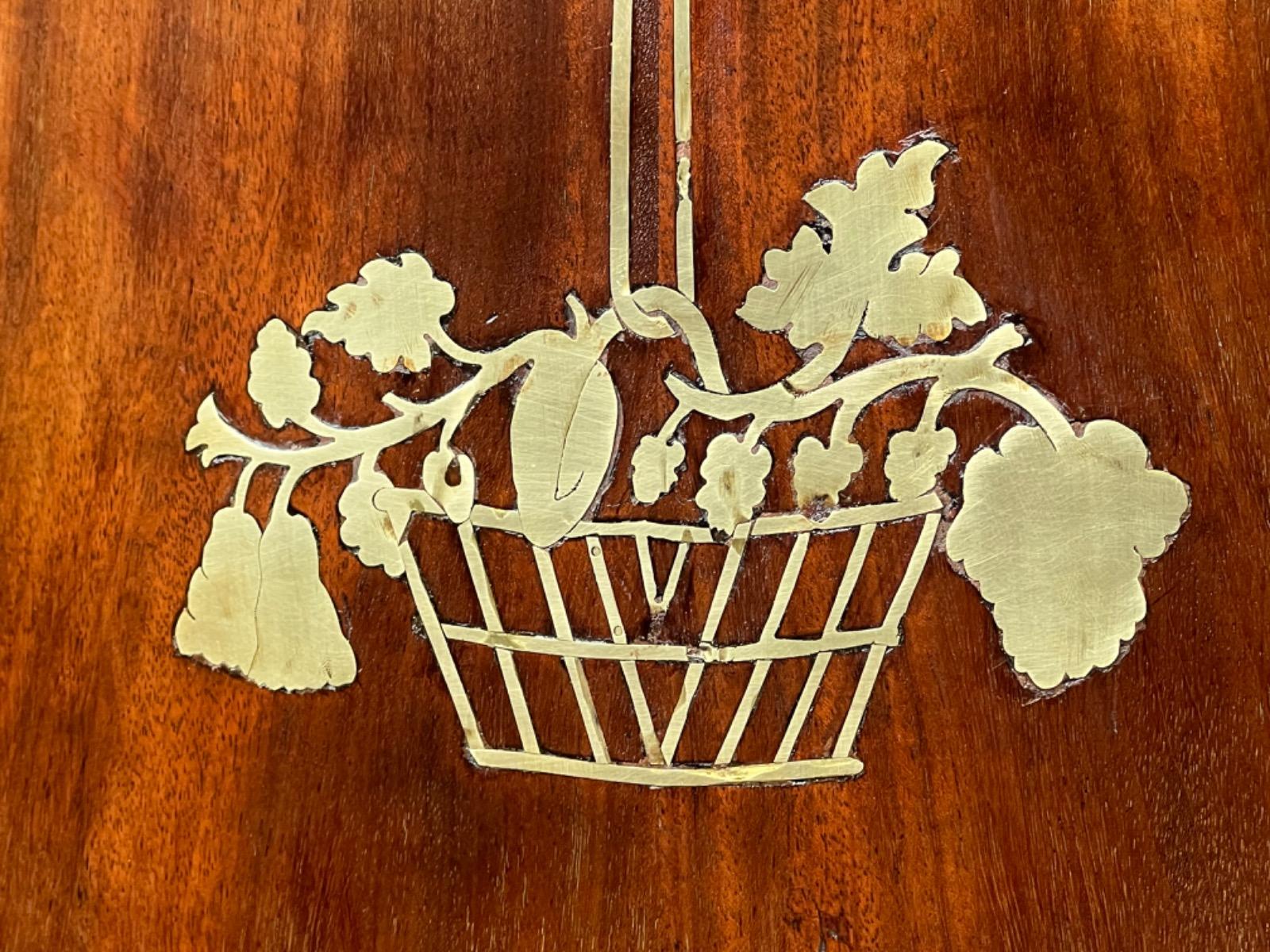 Blad, deuren, regels en stijlen met fraai gedetailleerd ingelegd messing biezen, strikken en manden.