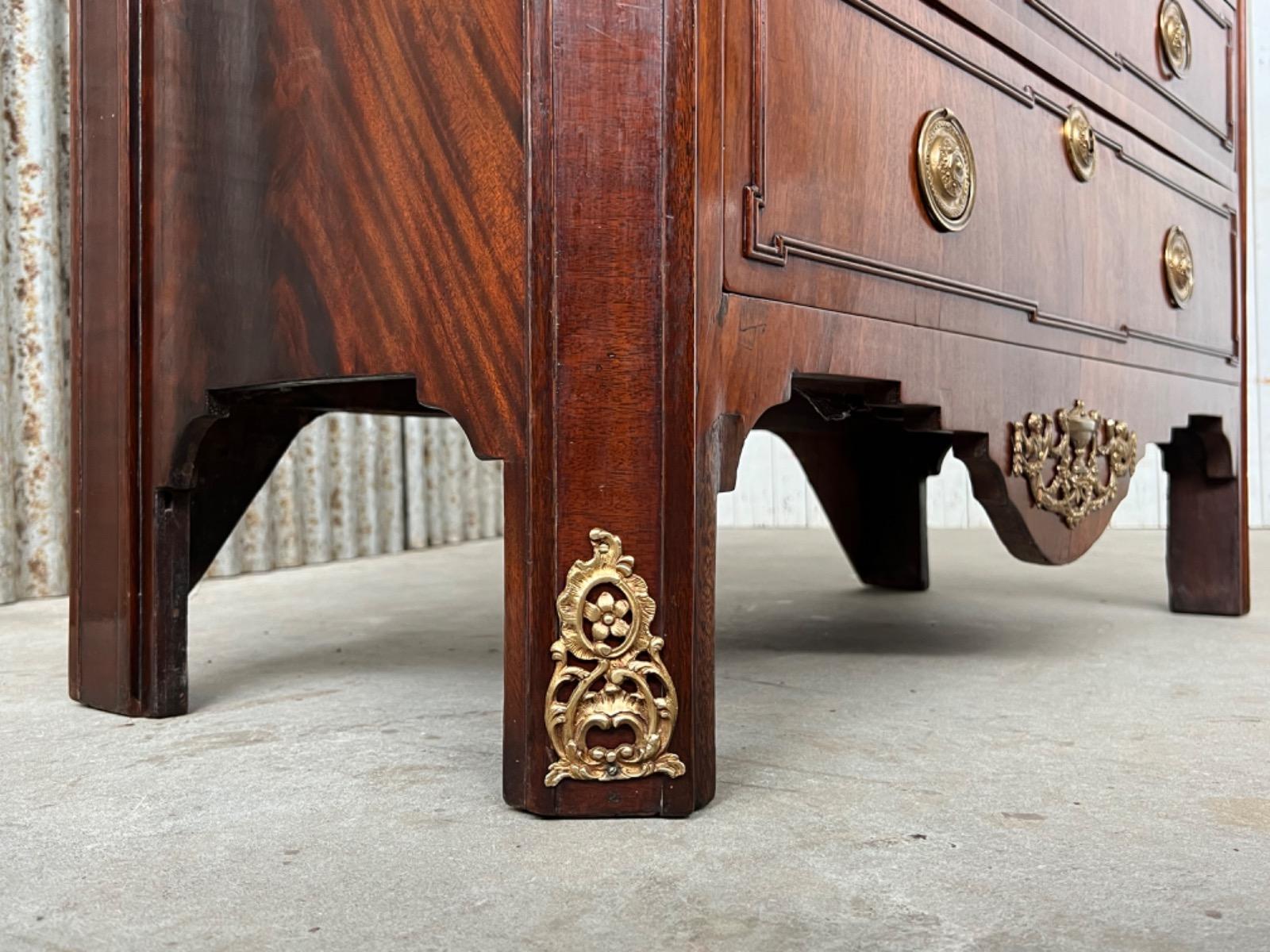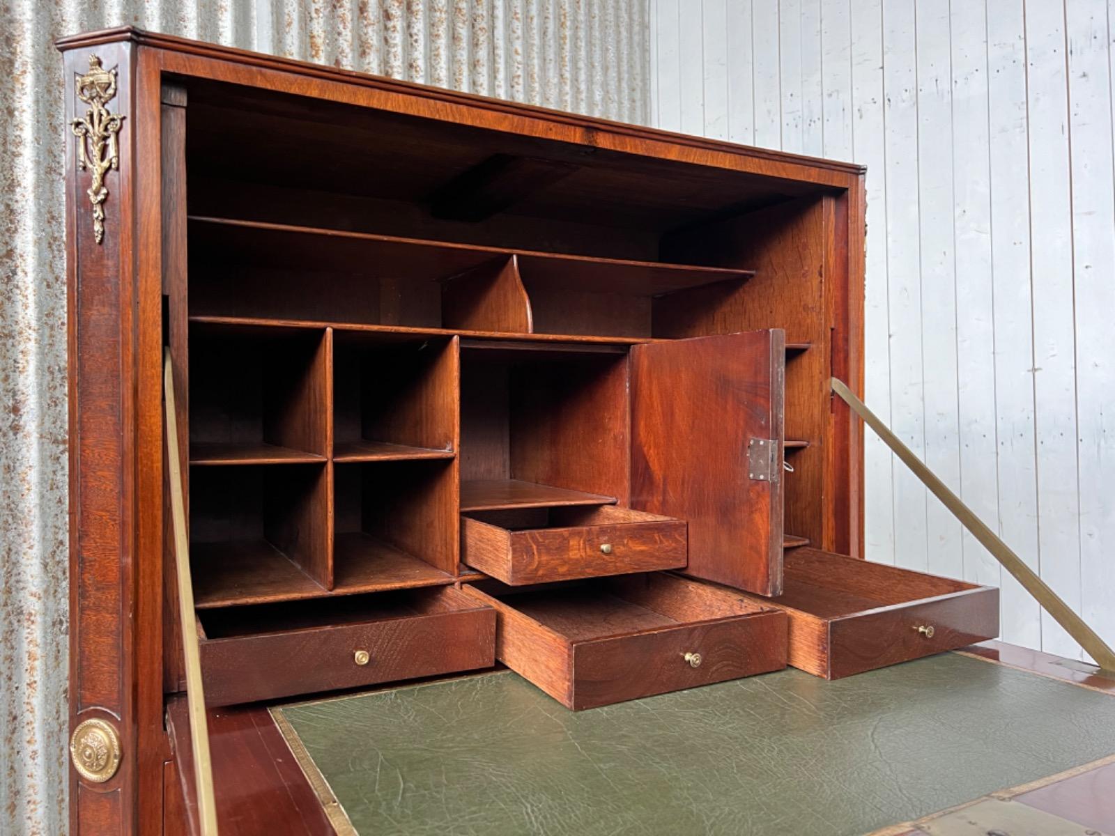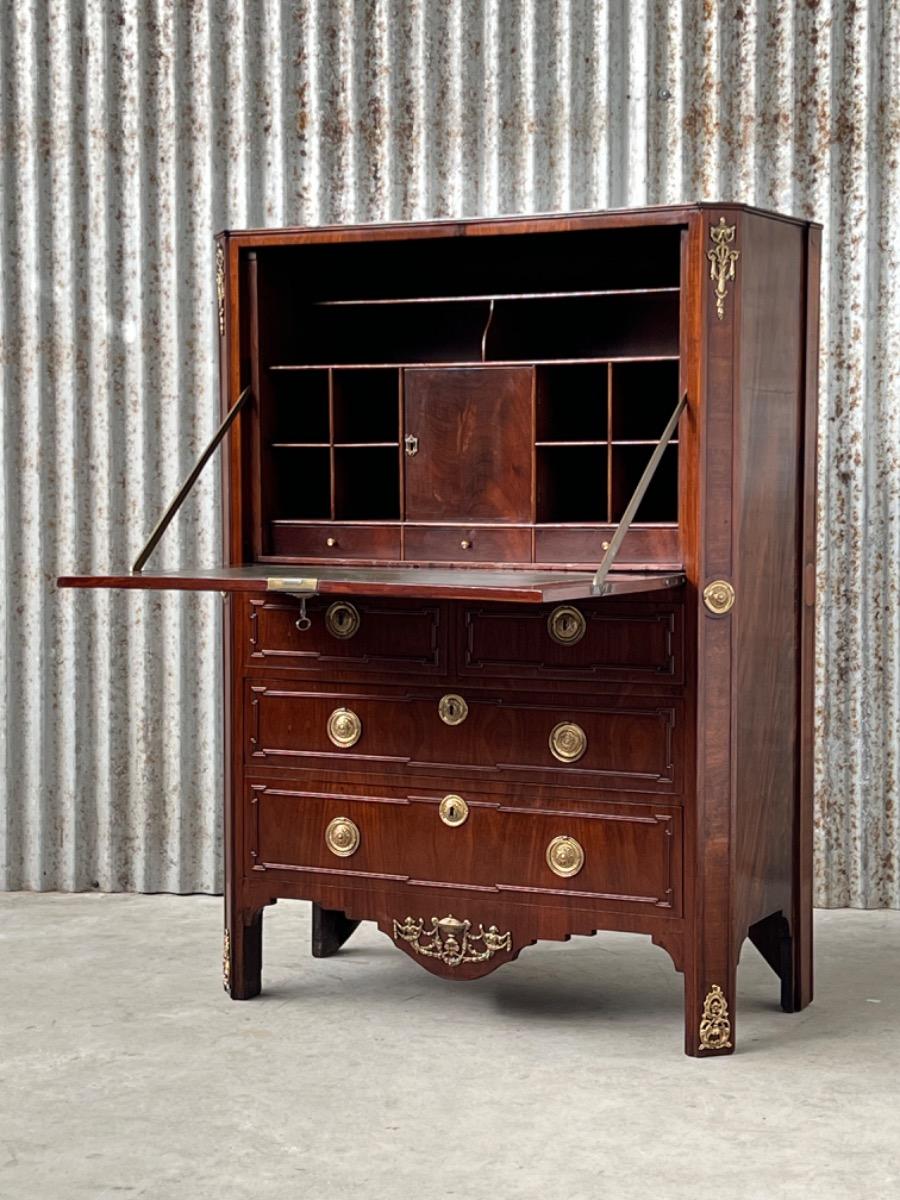 Hollands louis XVI klep secretaire, met oorspronkelijk vuur verguld brons beslag, eind 18e eeuw.