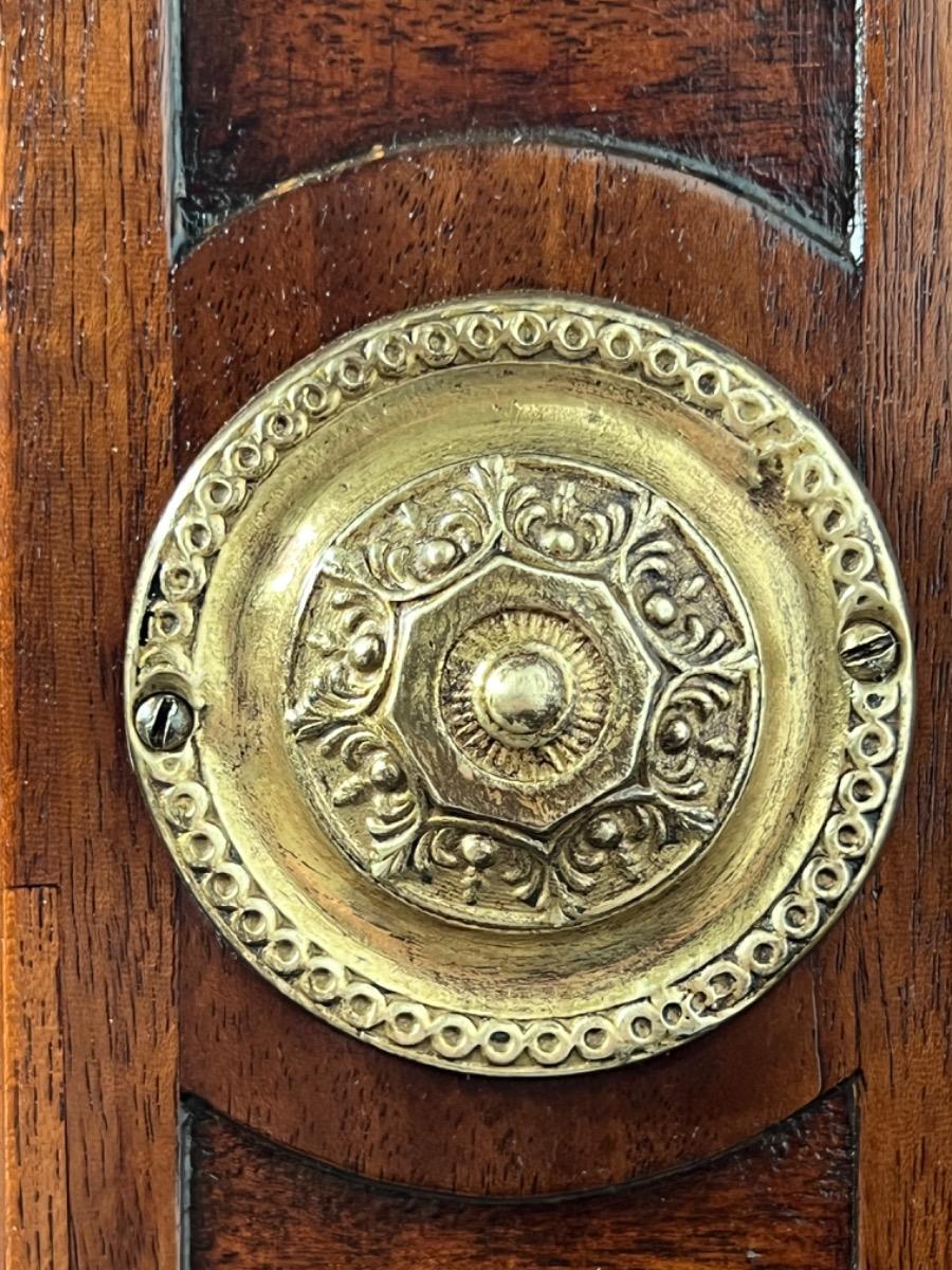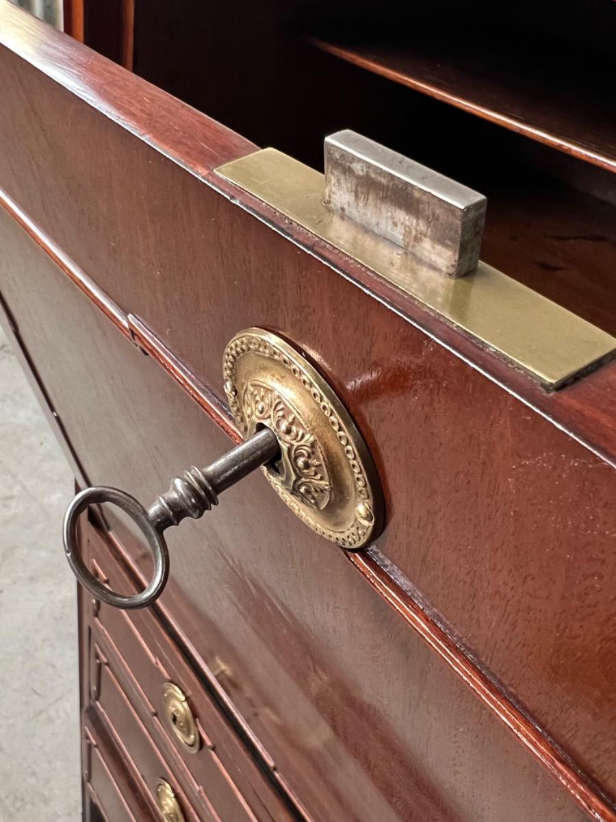 Interieur vol met laden met oorspronkelijke vuur vergulde knopjes. Centrale deurtje met werkende sleutel.