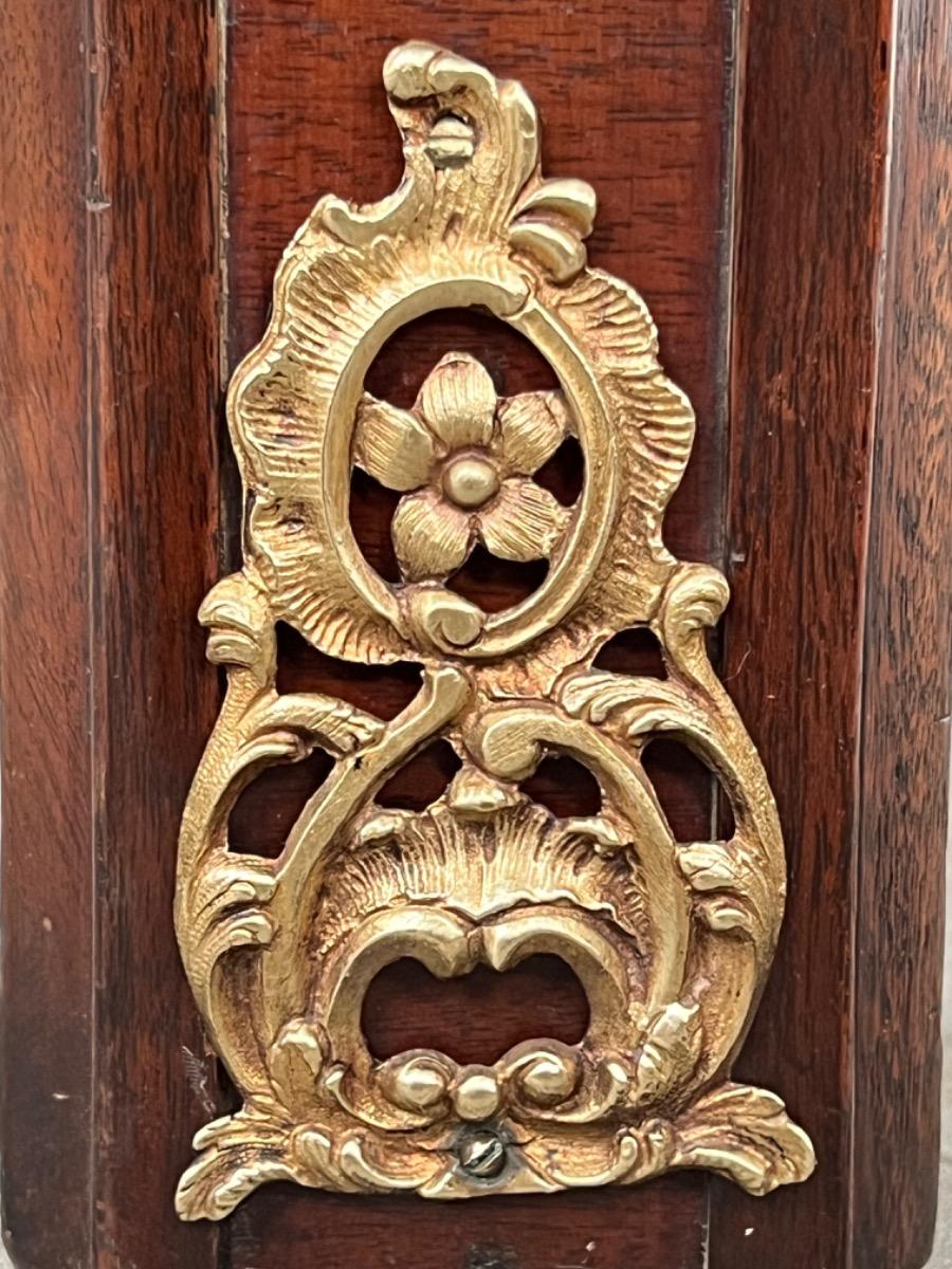 Verguld beslag compleet over volledige meubel. Sloten en sleutels werkend (oorspronkelijk).