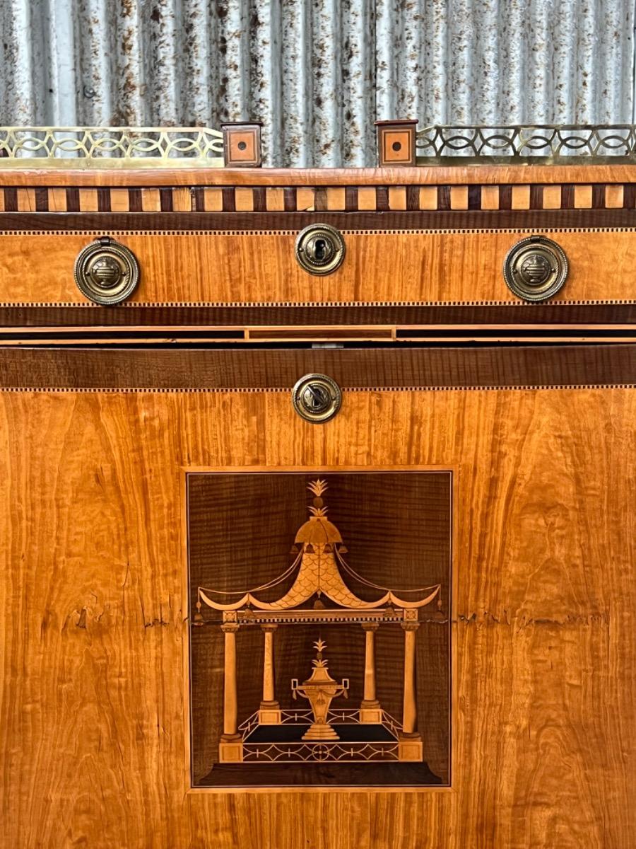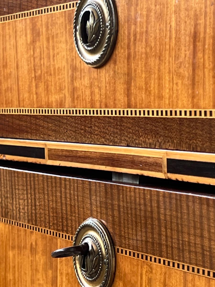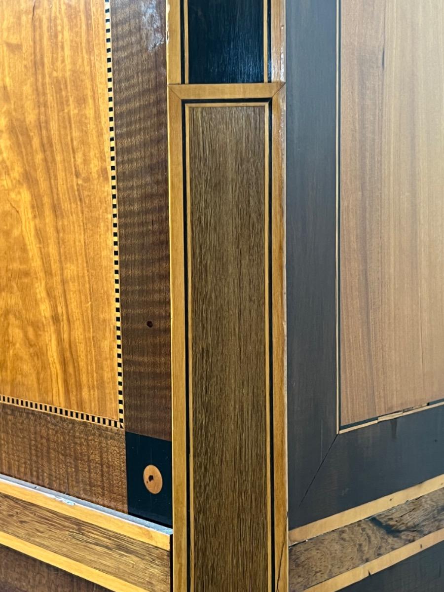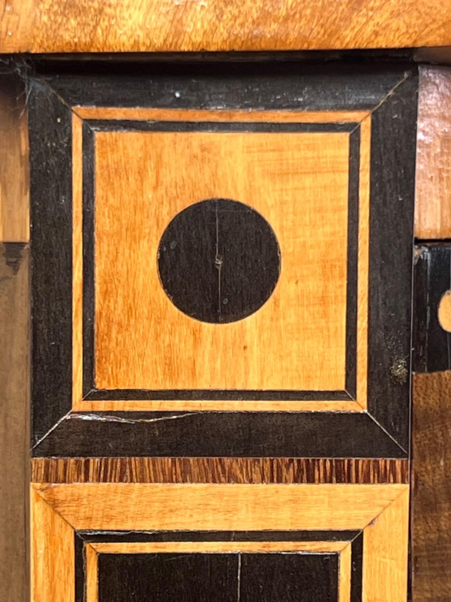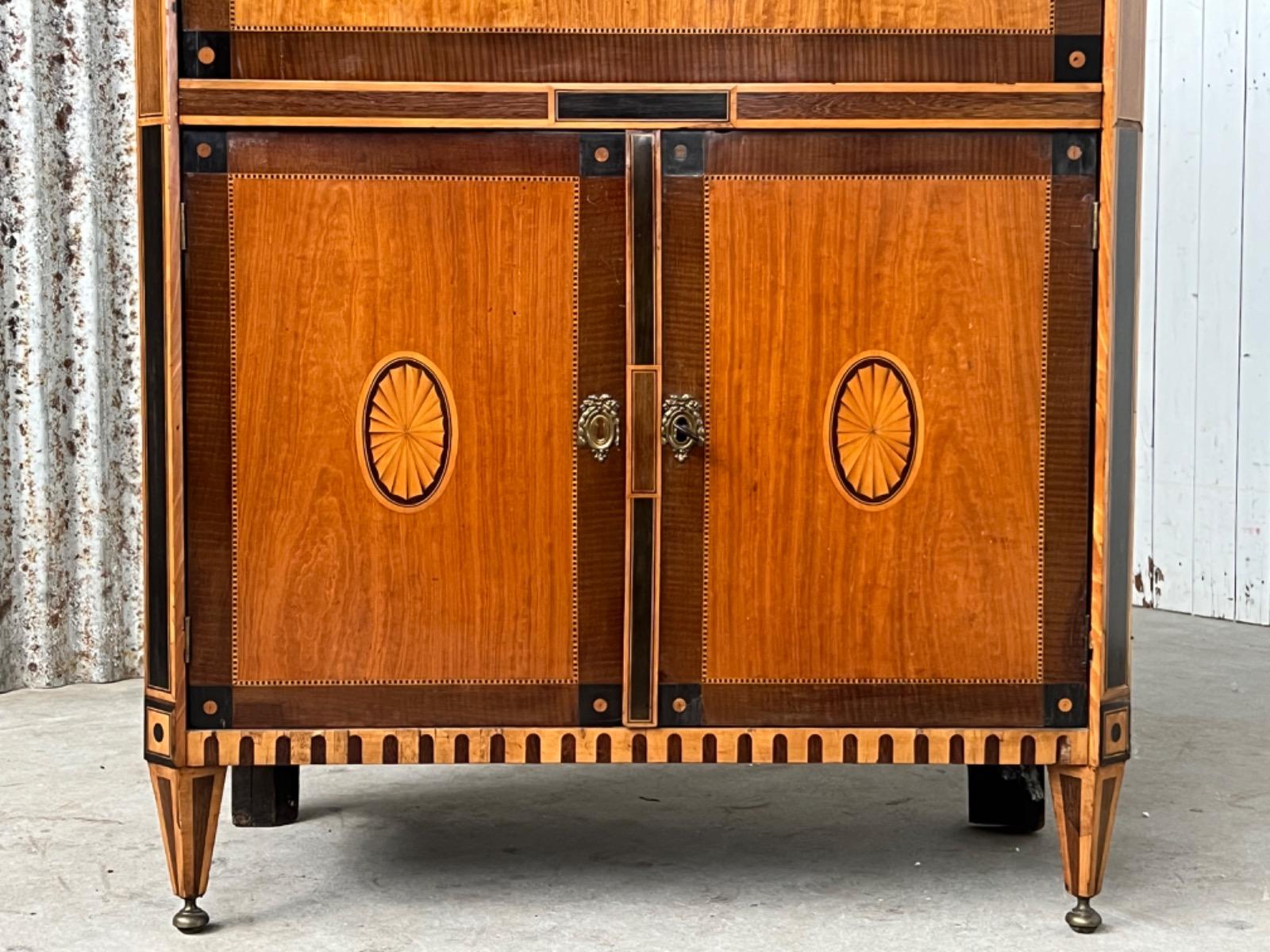 Interieur vol met laden met oorspronkelijke vuur vergulde knopjes. Centrale deurtje met werkende sleutel.