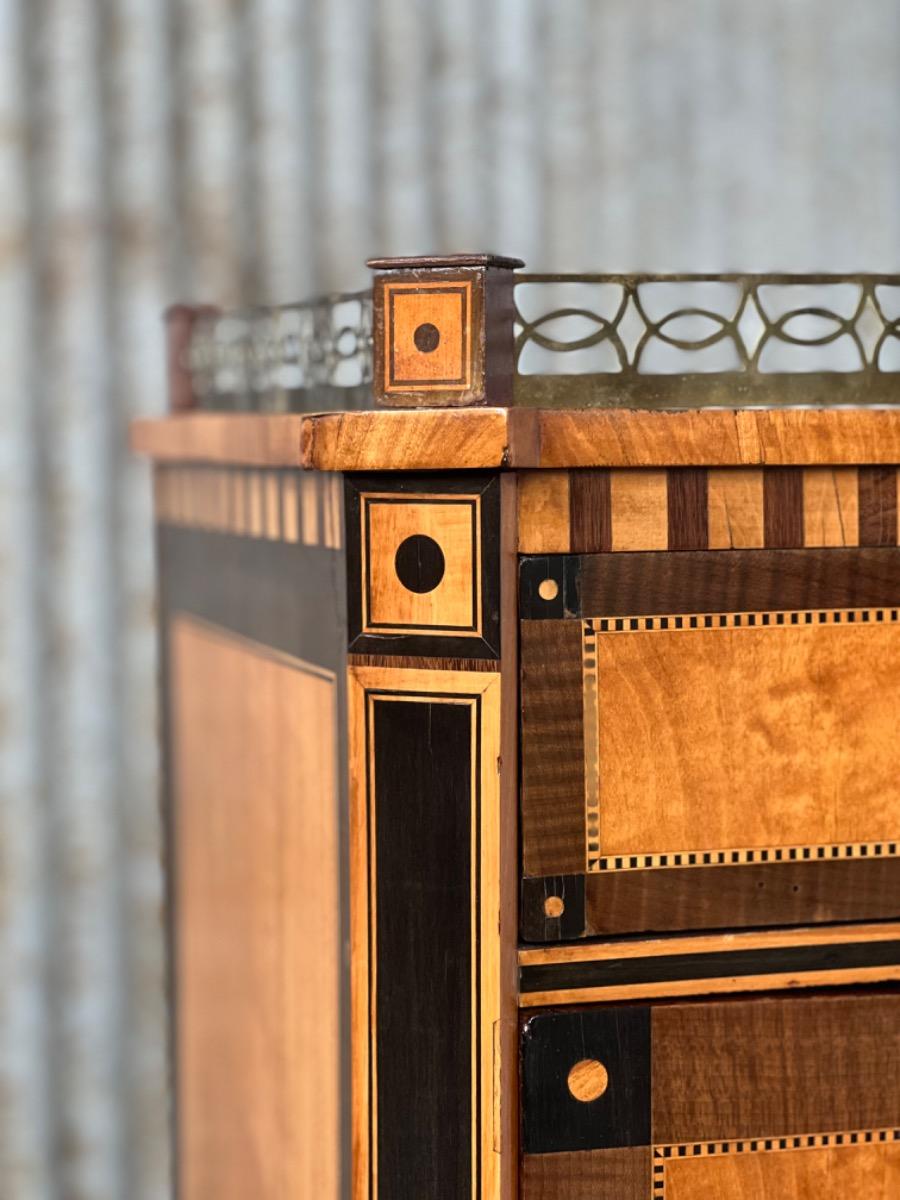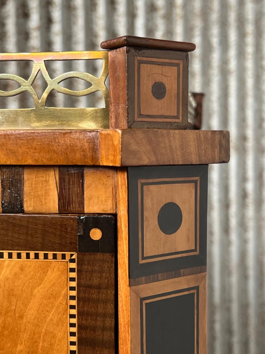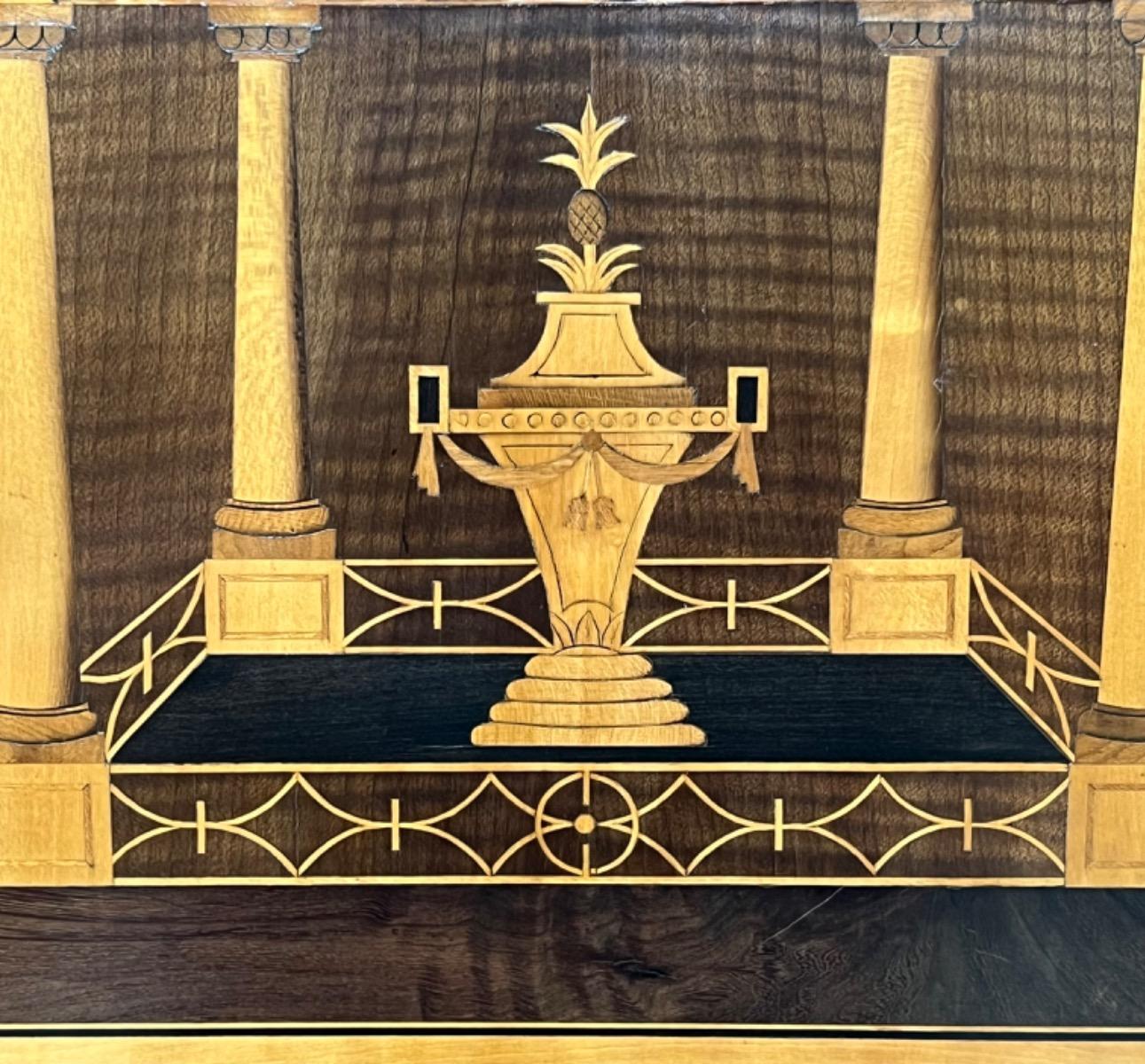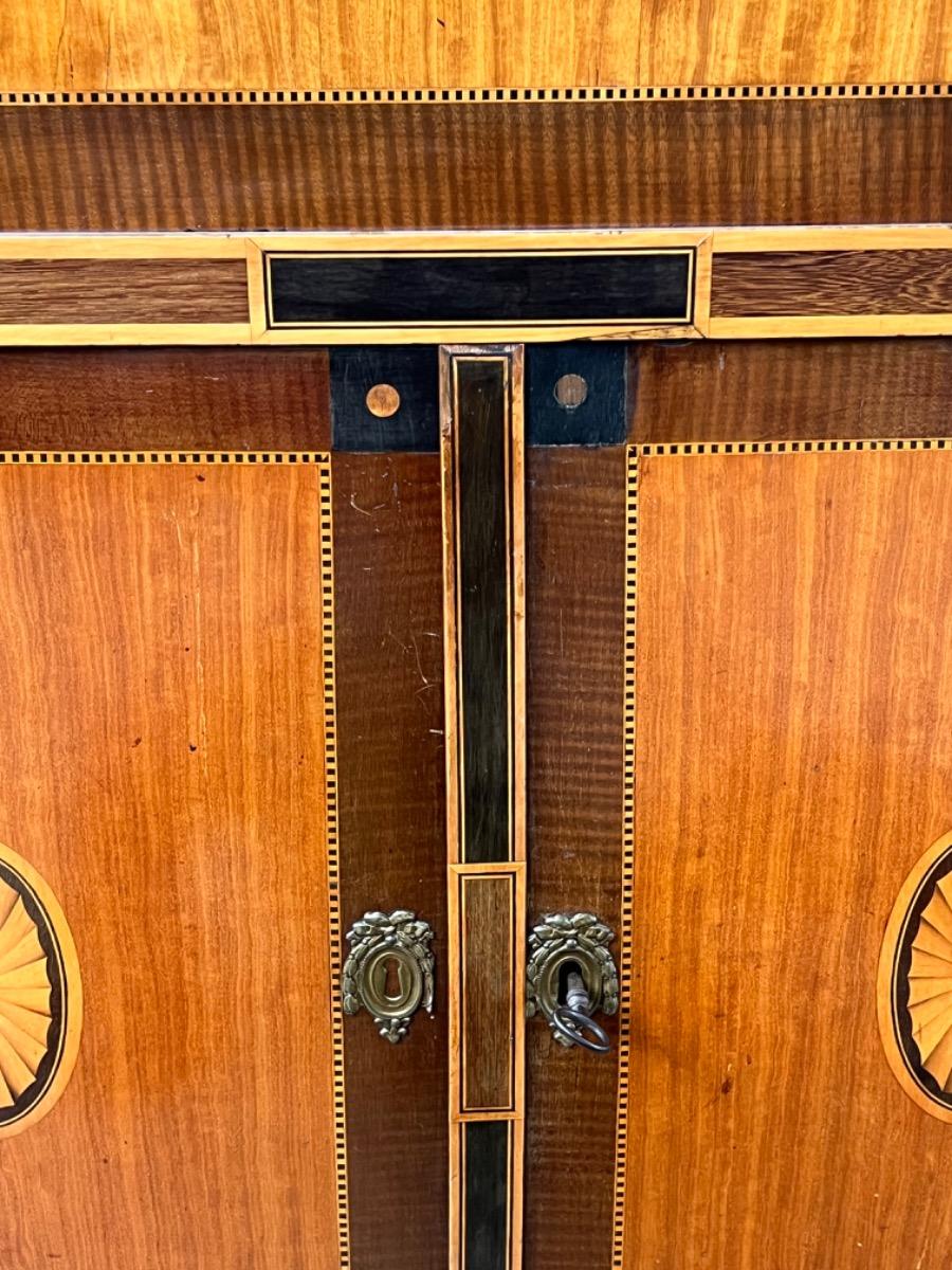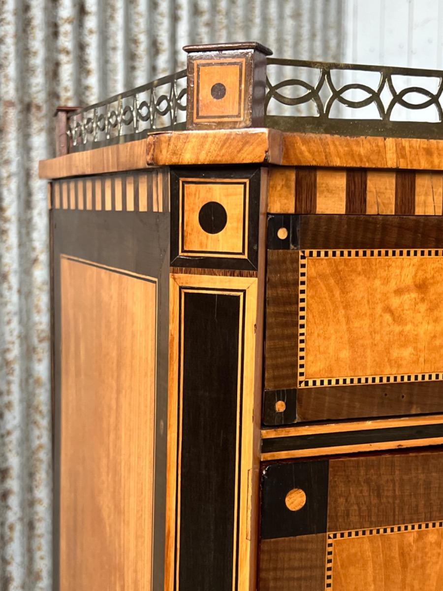 Interieur vol met laden met oorspronkelijke vuur vergulde knopjes. Centrale deurtje met werkende sleutel.
