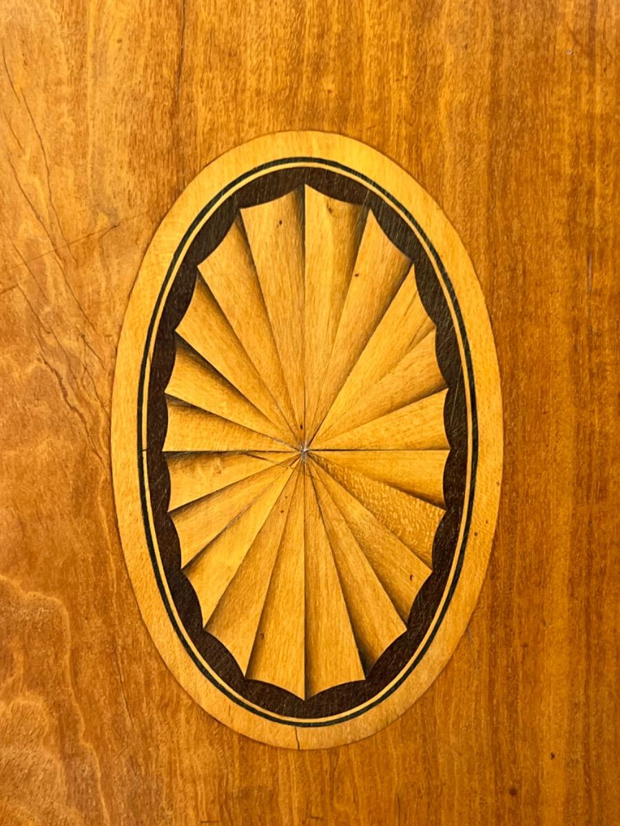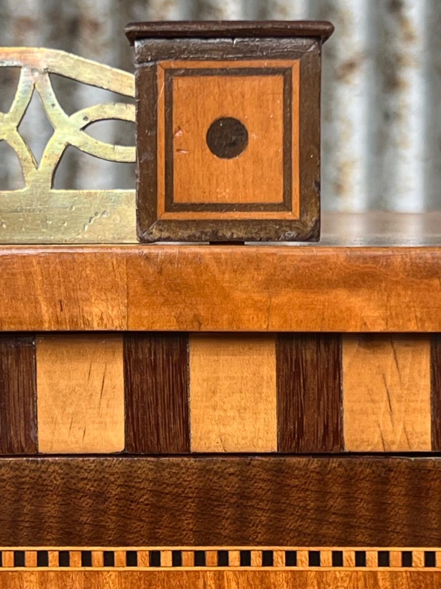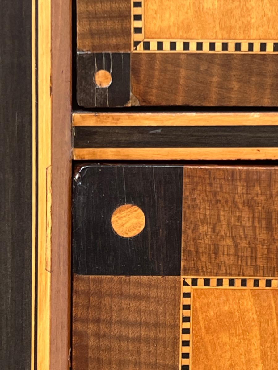 Overhoeks geplaatste stijlen met fraai gedetailleerd ingelegde ebben hout en hulst bies.