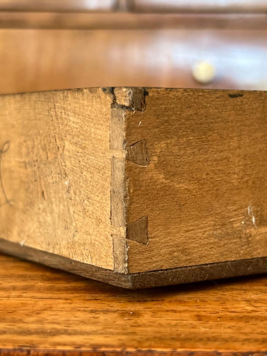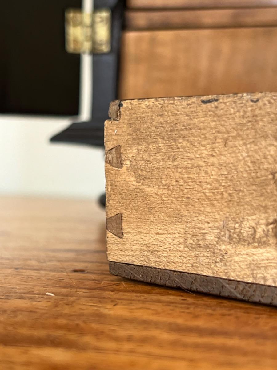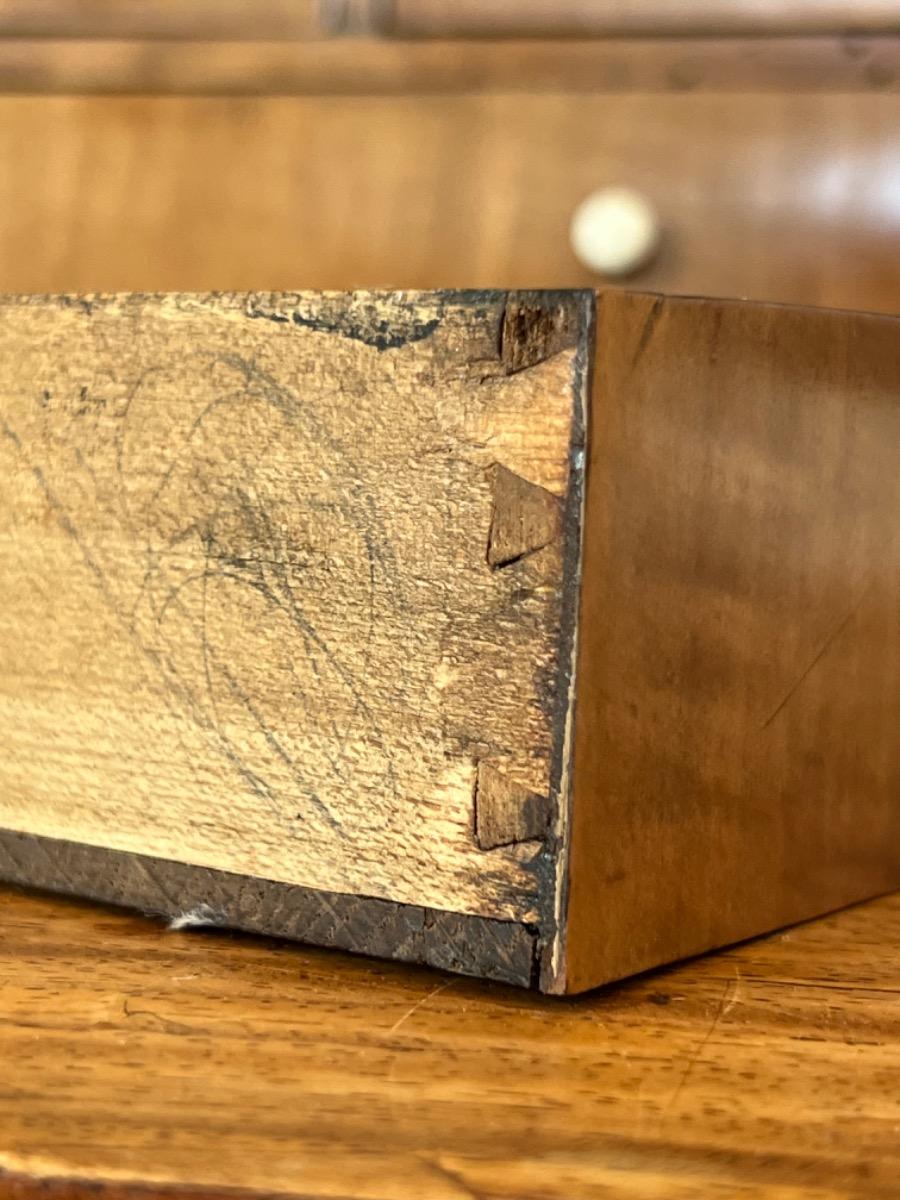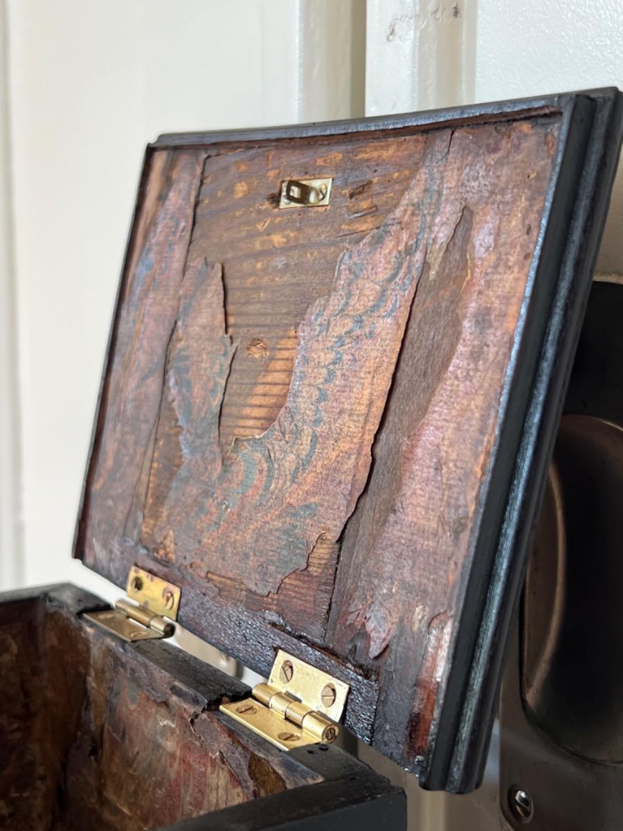 Oorspronkelijk gemarmerd papier in de laden en boven compartiment.