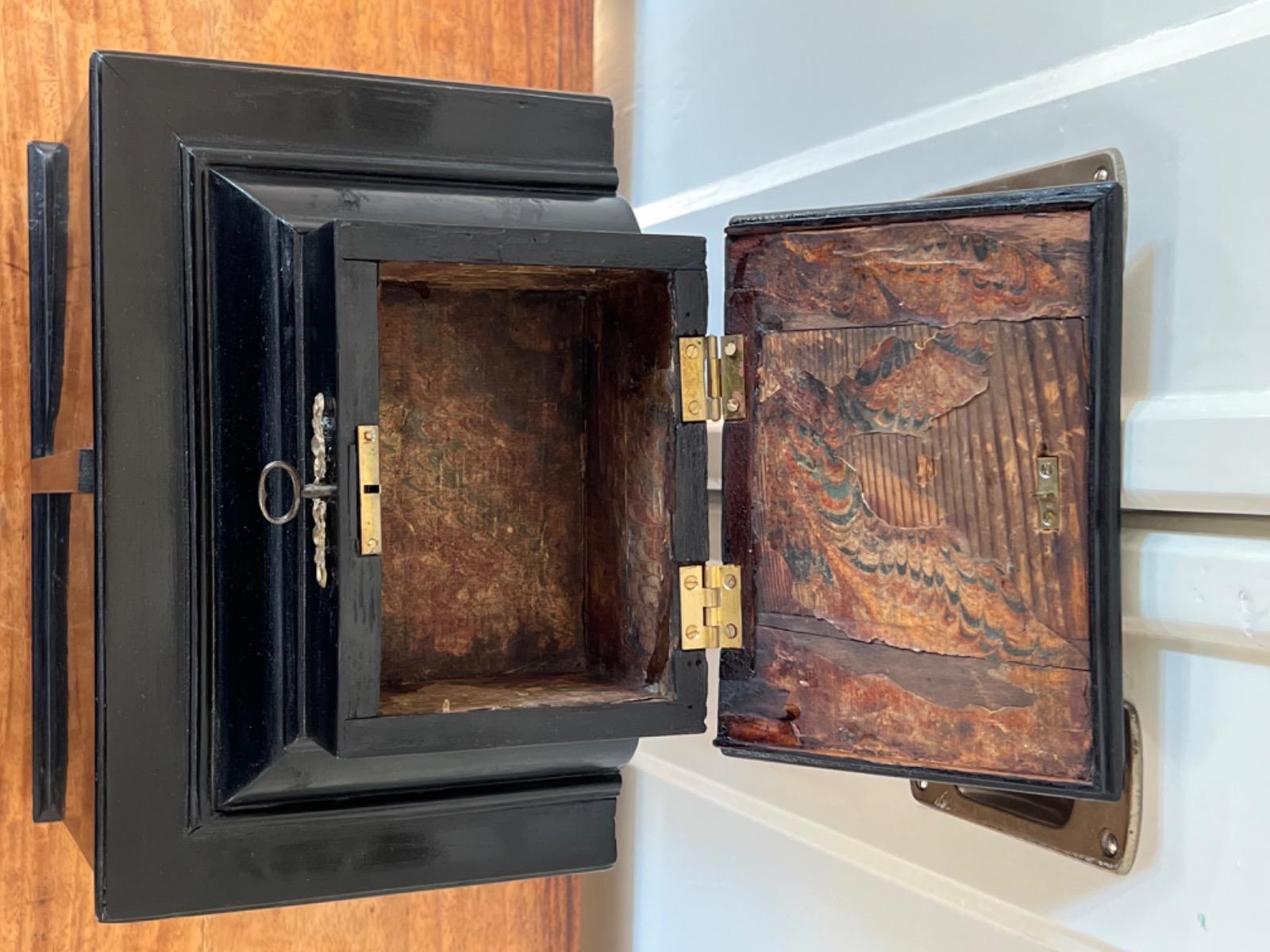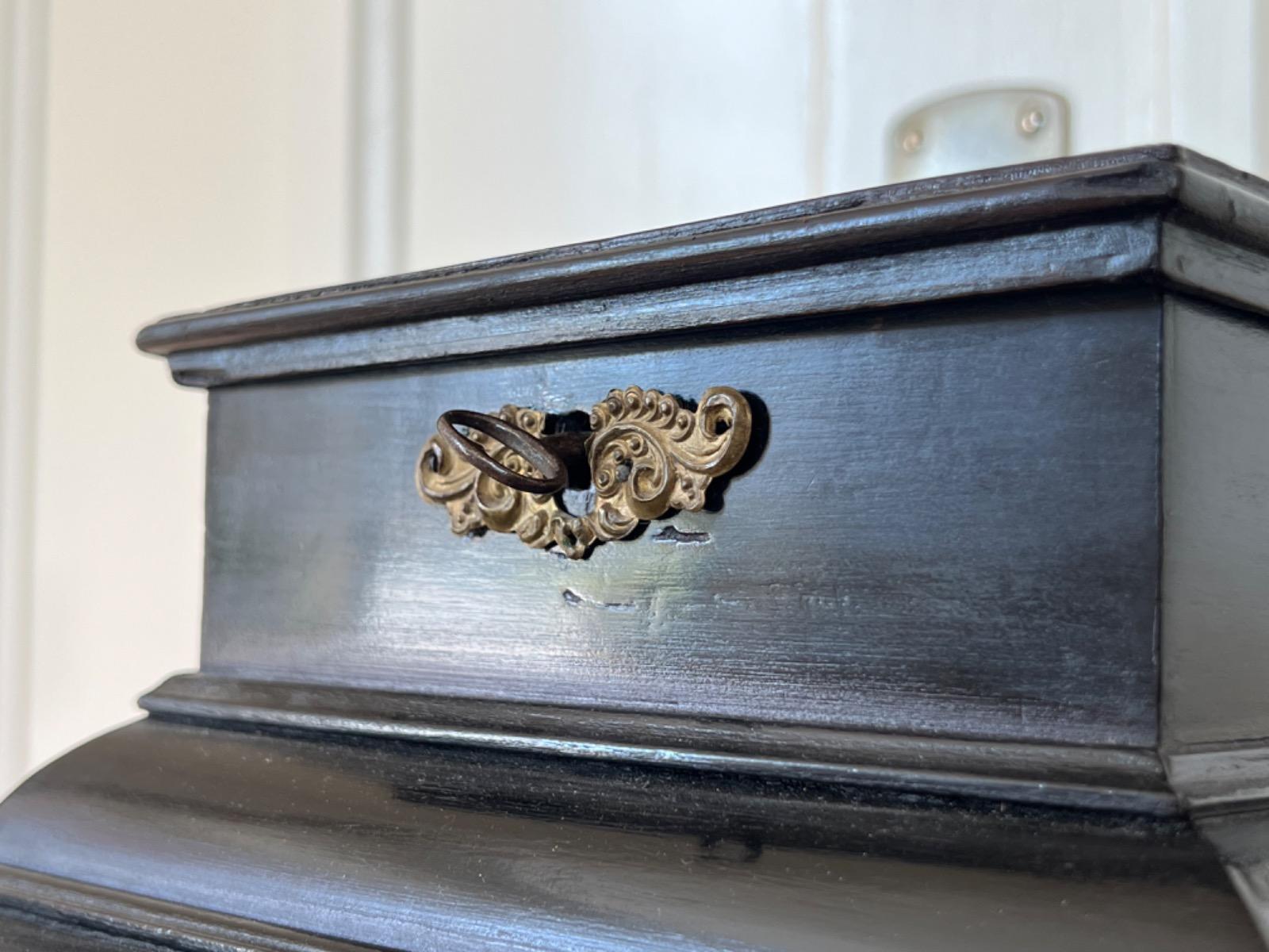 Boven op het meubel een afsluitbaar vak met slot en sleuteltje (werkend).