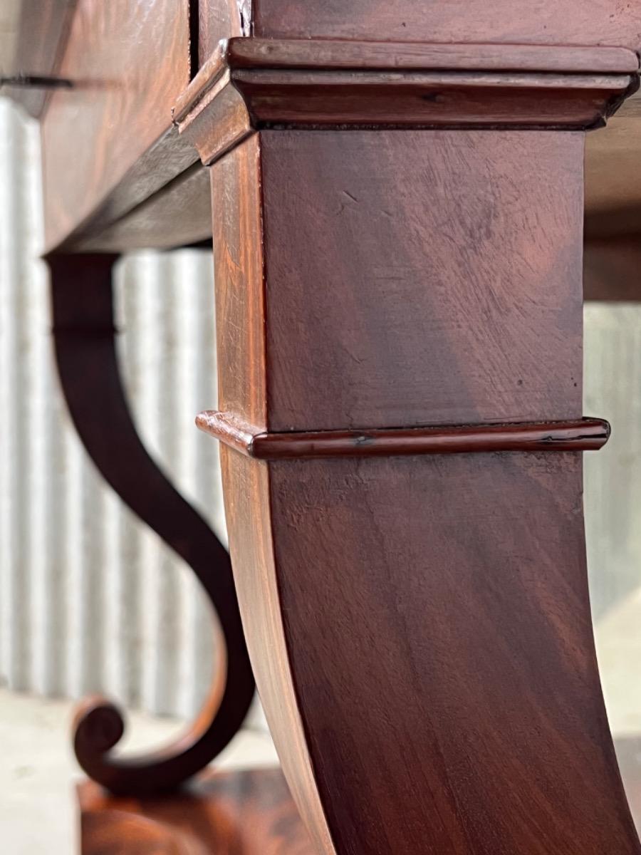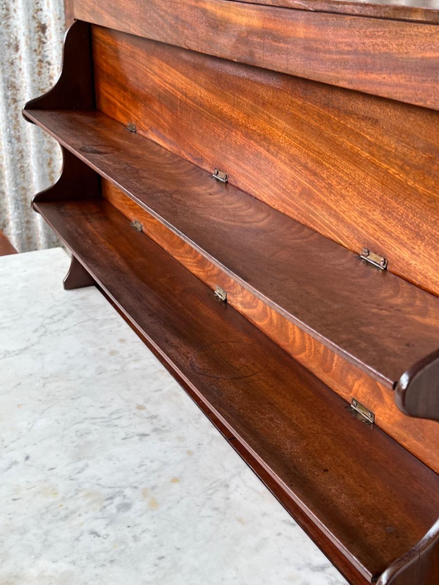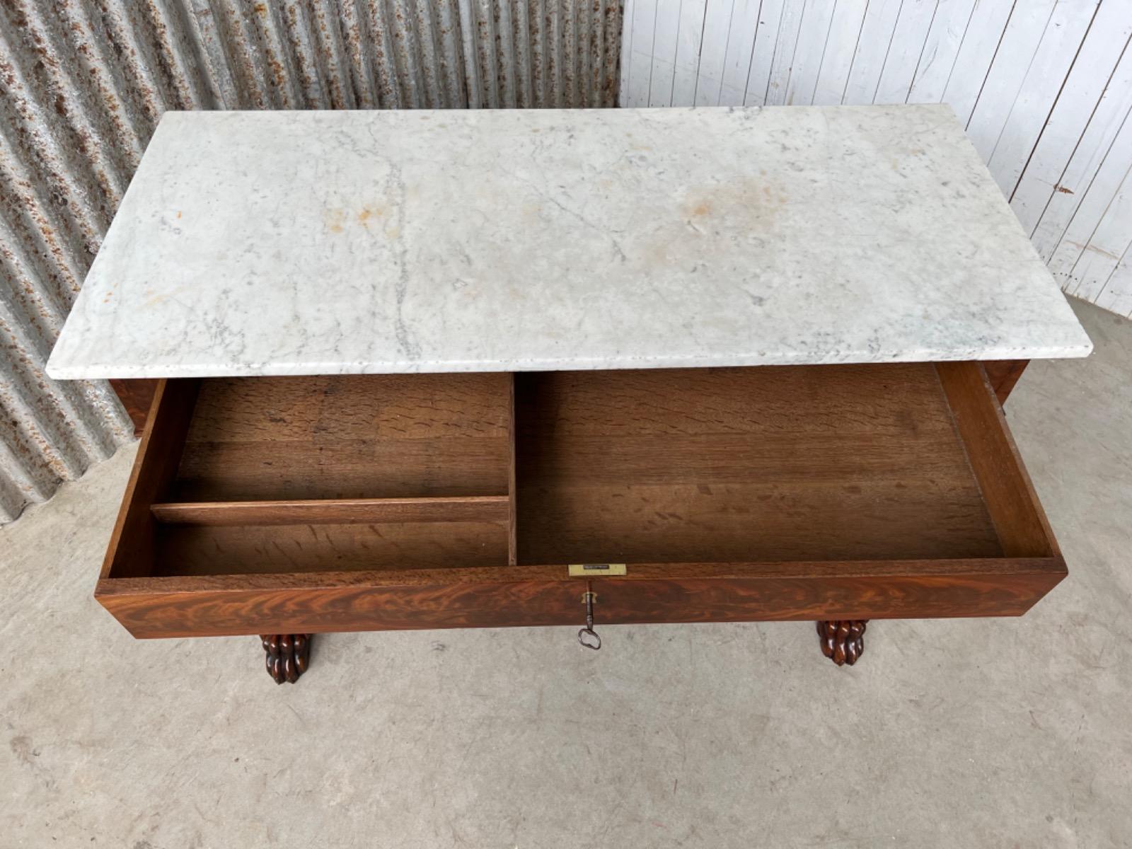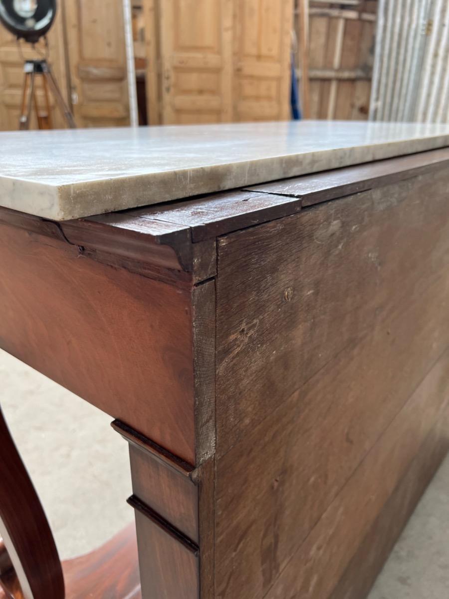 Mahonie consoletafel, trumeau met Bianca Carrara marmer en oorspronkelijk snijwerk.