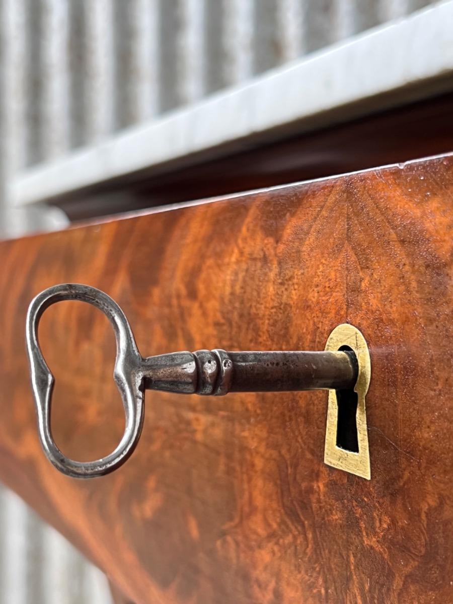 Fraai gespiegeld Cuba bloem mahonie op onderstel, basement en lade front.