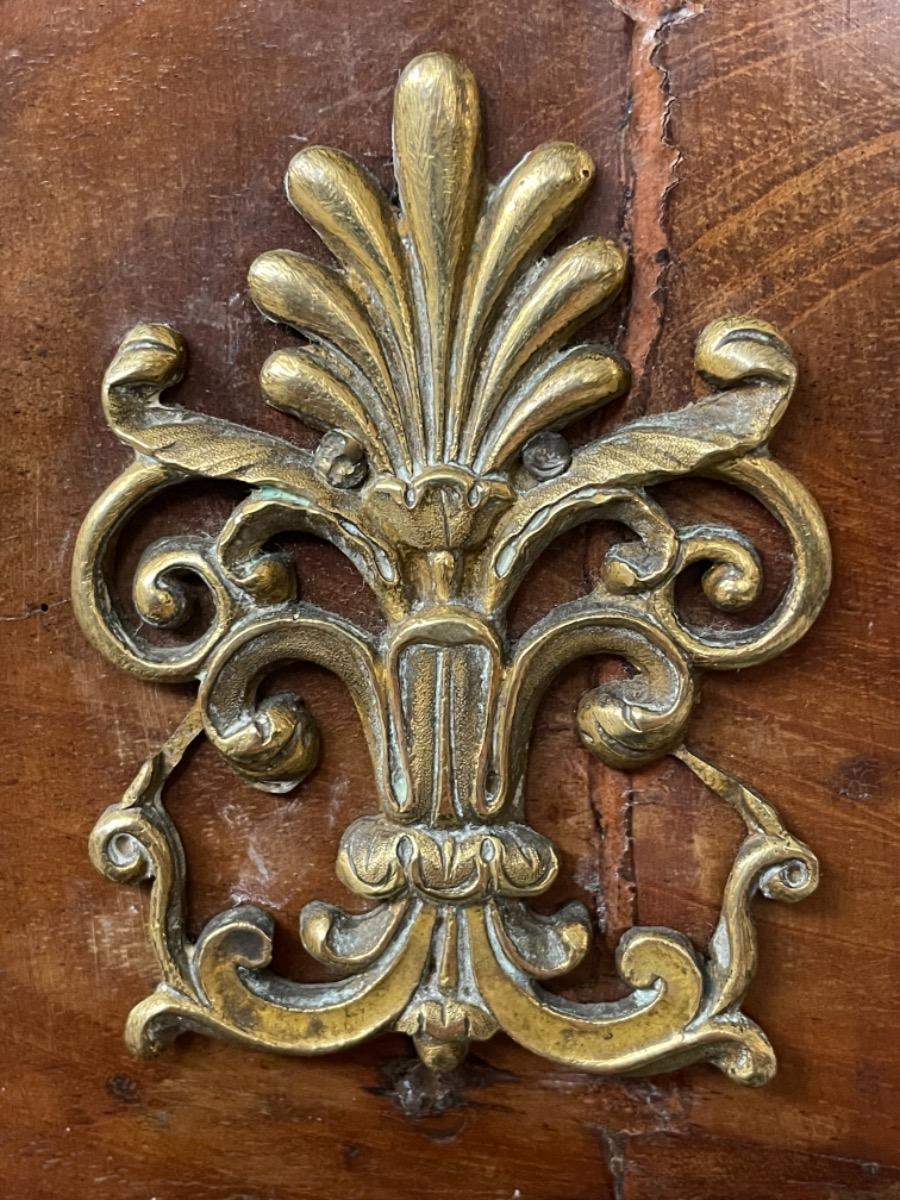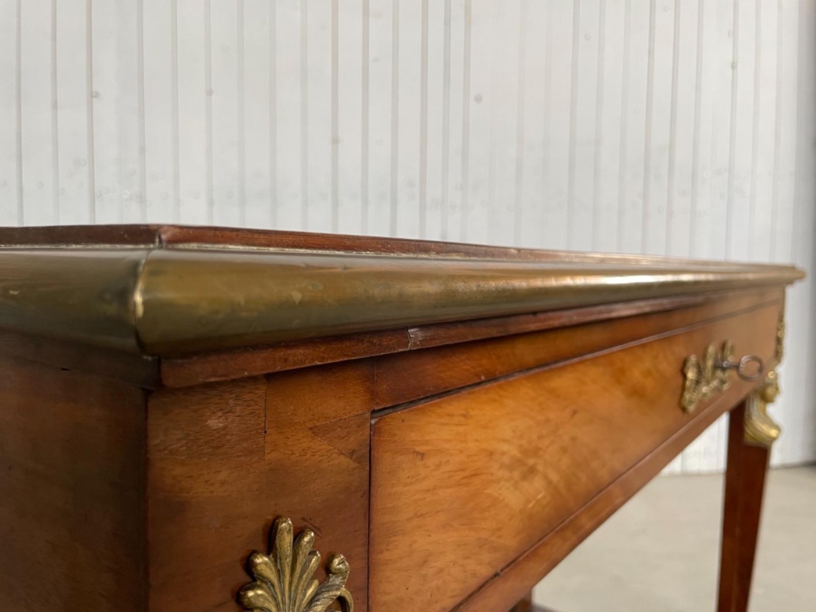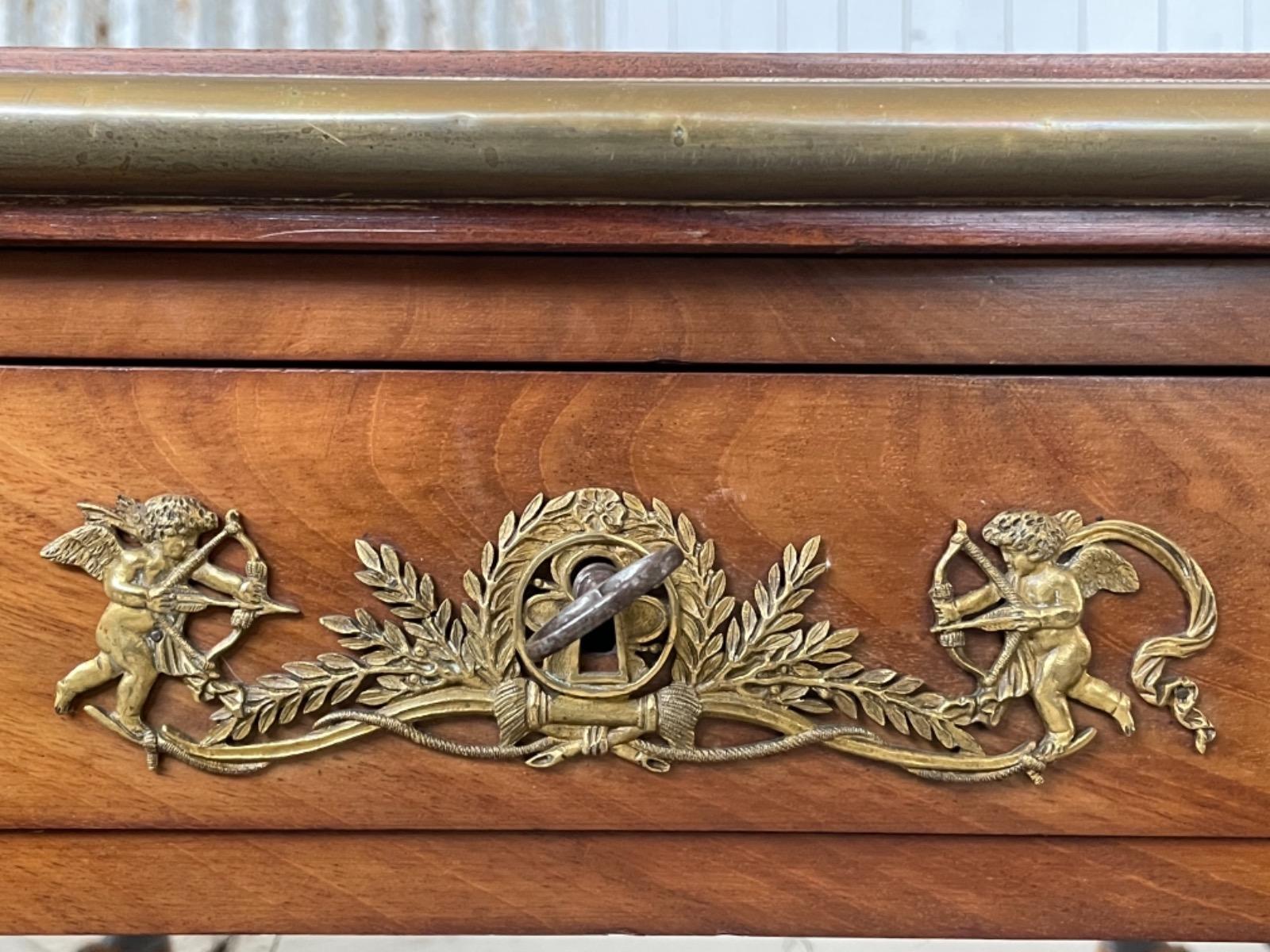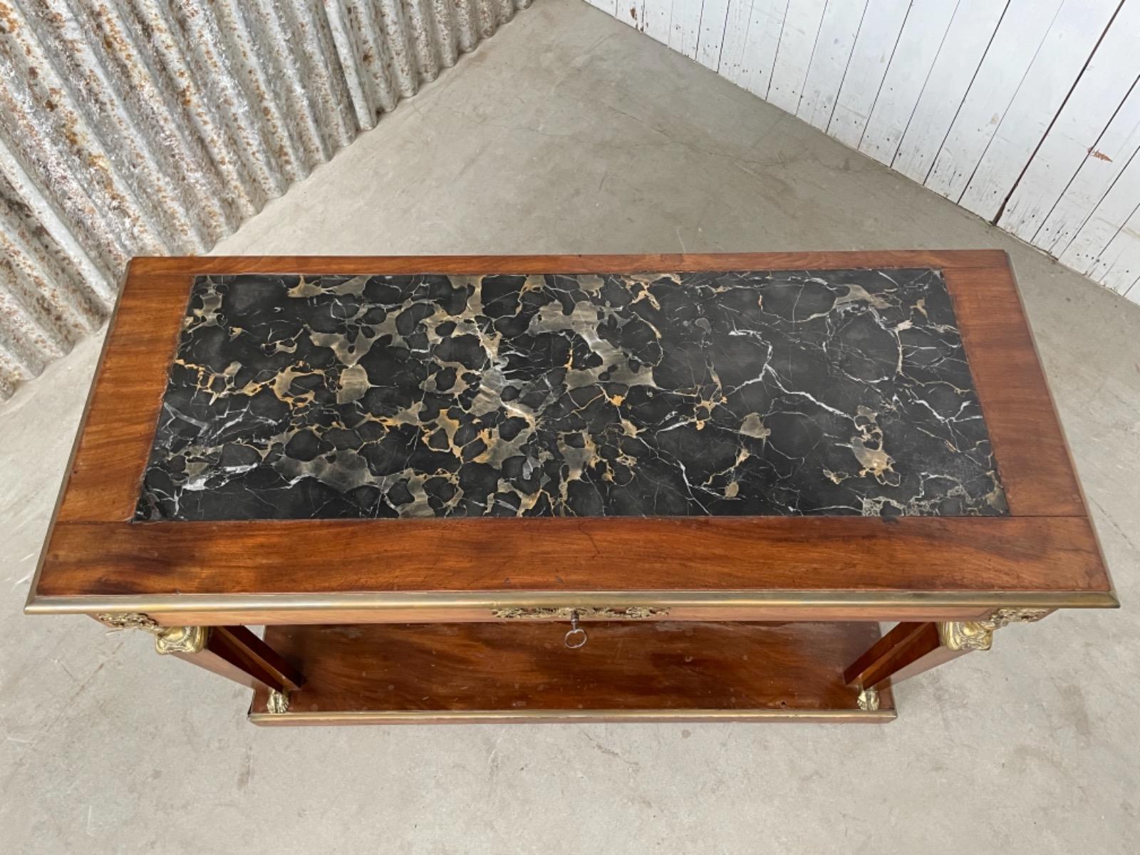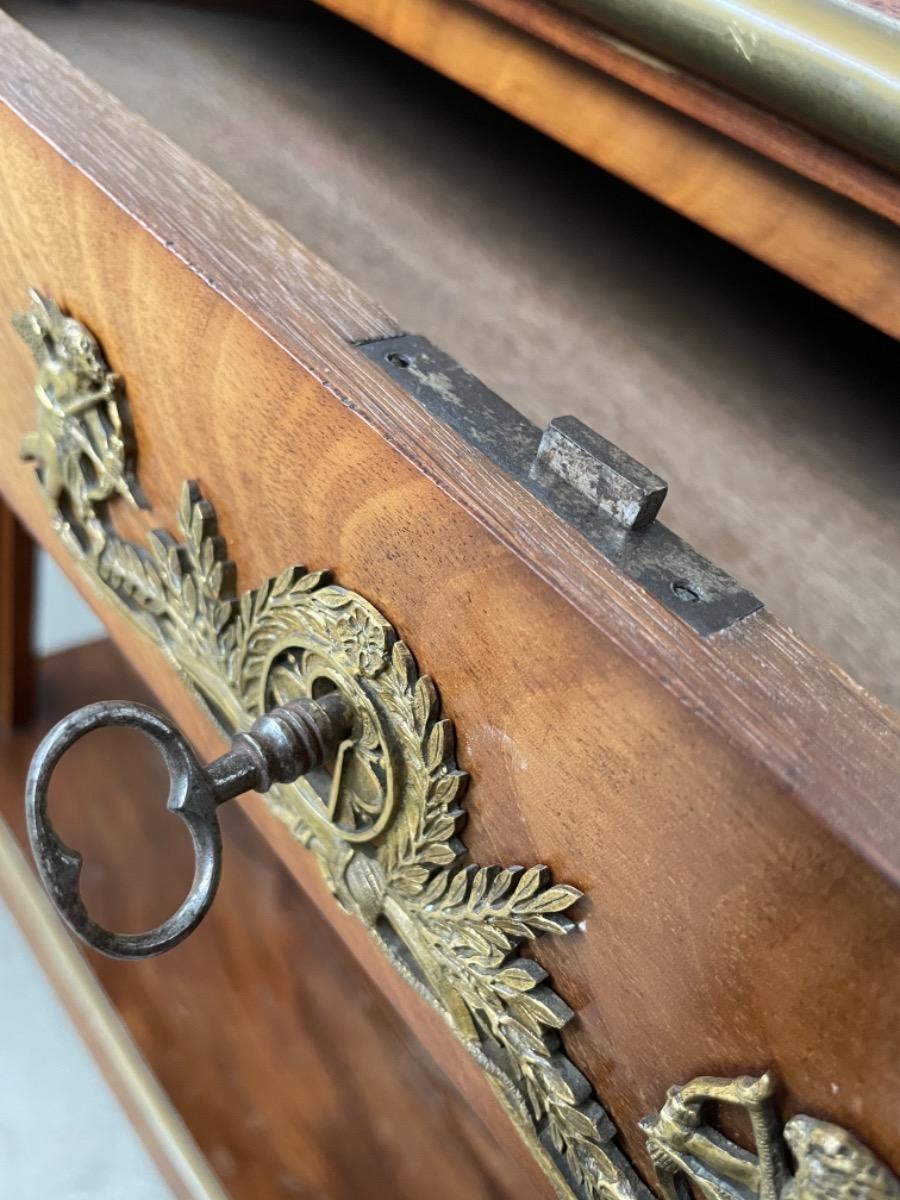 Mahonie spiegel trumeau empire, retour’d Egypt, Empire, Ca.1800 Rijkelijk versiert met verguld bronsbeslag. Ingelegd met marmer. Afm; H= 77 B= 112 D= 46