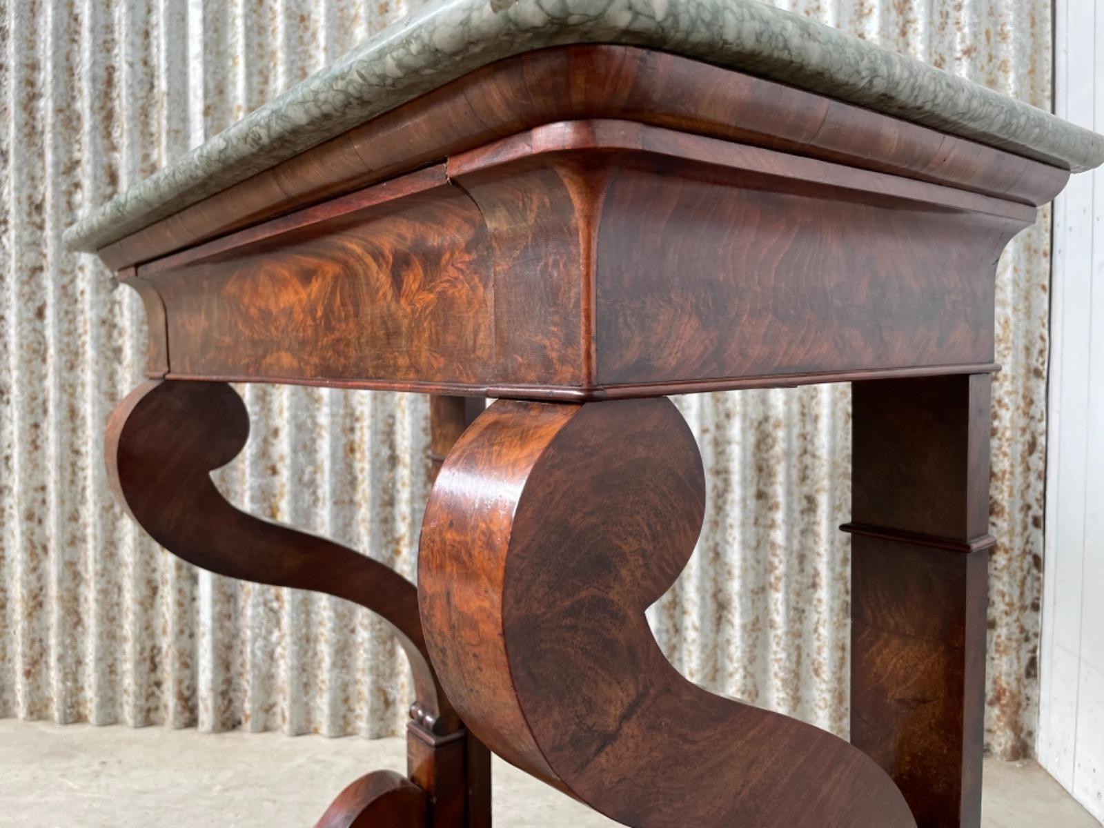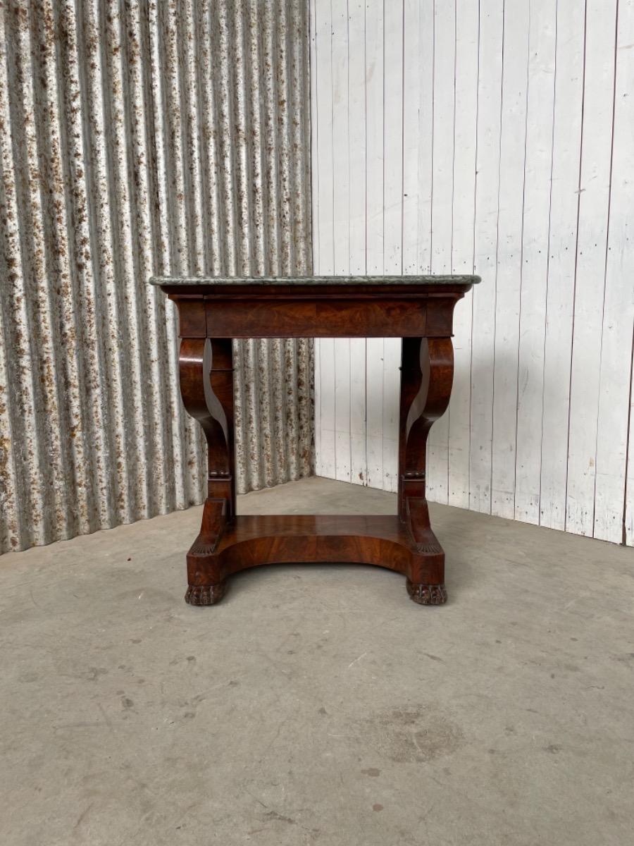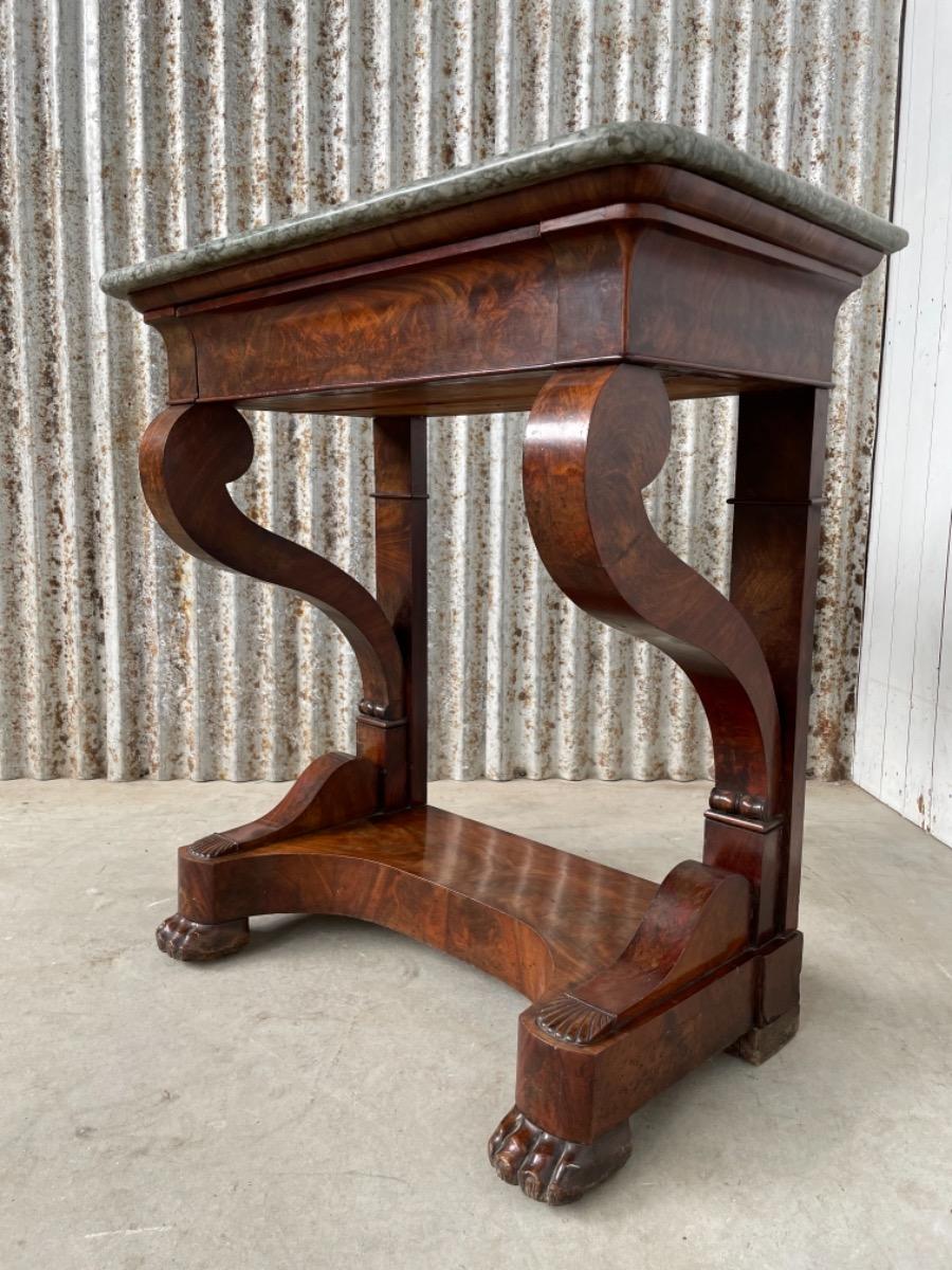 Mahonie trumeau met hardsteen / marmer.