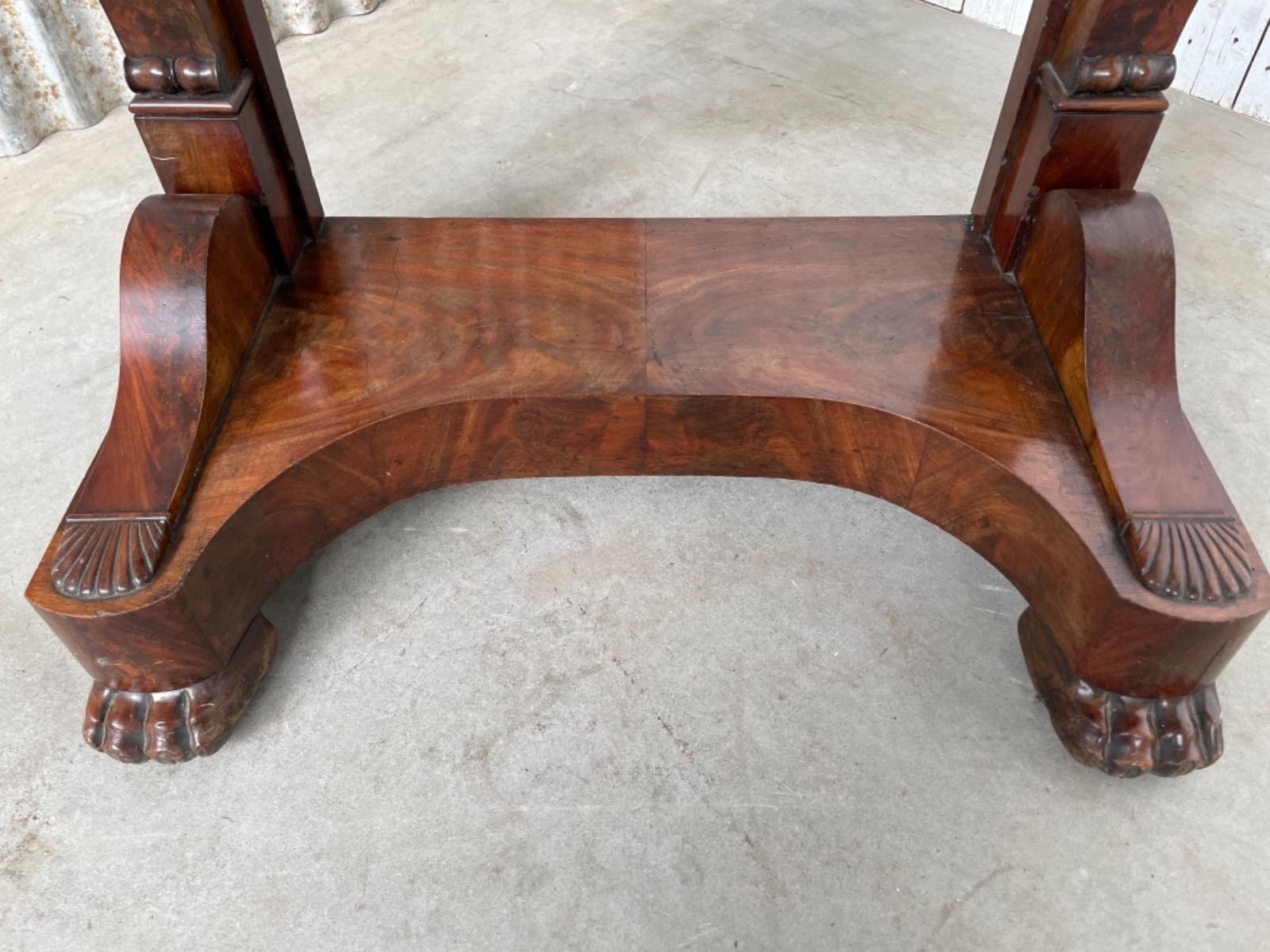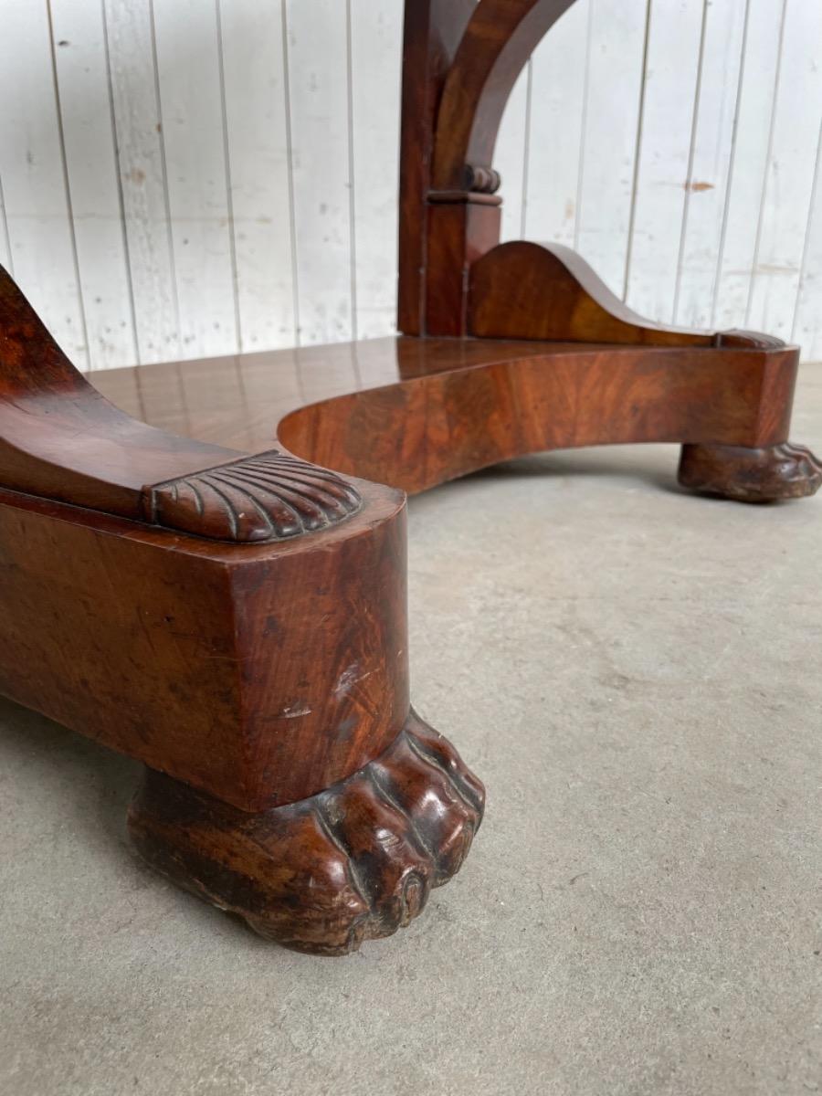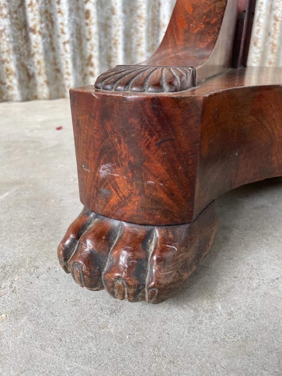 Fraai gespiegeld Cuba bloem mahonie op onderstel, gedragen door platte klauwpoten.